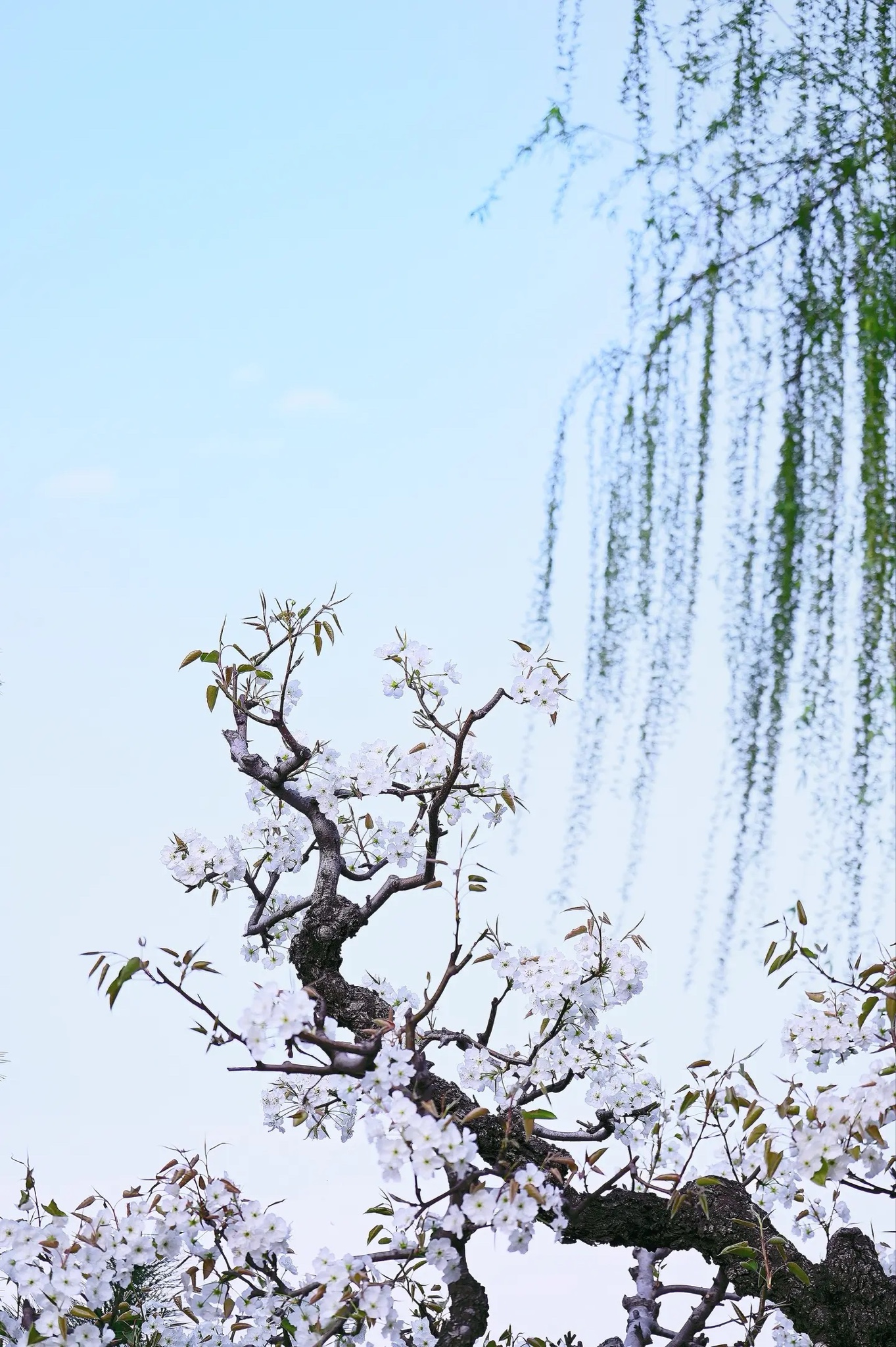 梨花初绽,素白如雪,缀满枝头。蓝天为幕,嫩叶初生,垂柳轻摇,树影婆娑。风过处,暗香浮沉,静谧得只闻花开声。园林一隅,春光不争不抢,却自成中国风的留白诗行。快门轻按,不是捕捉春天,是与它悄然相认。