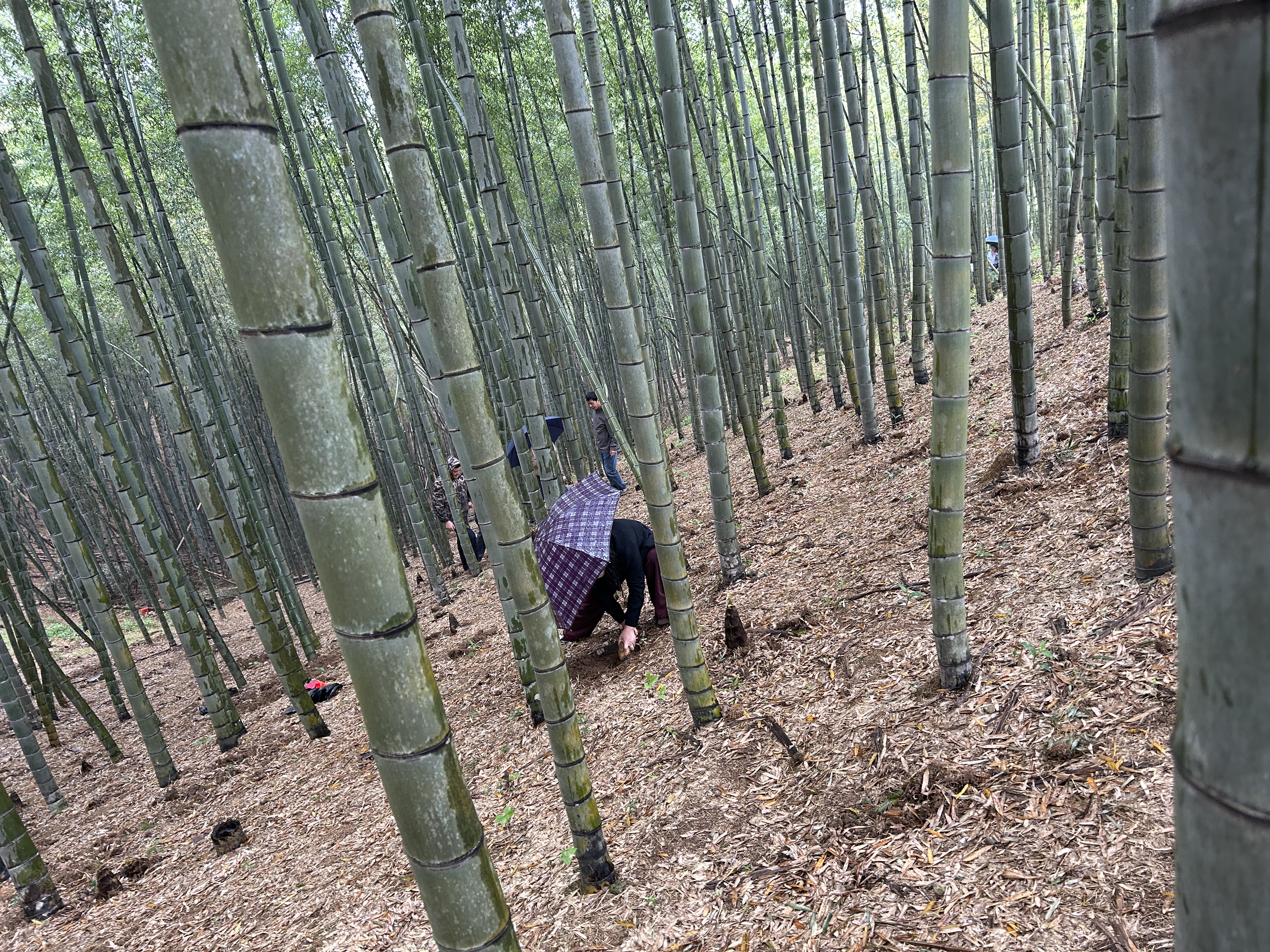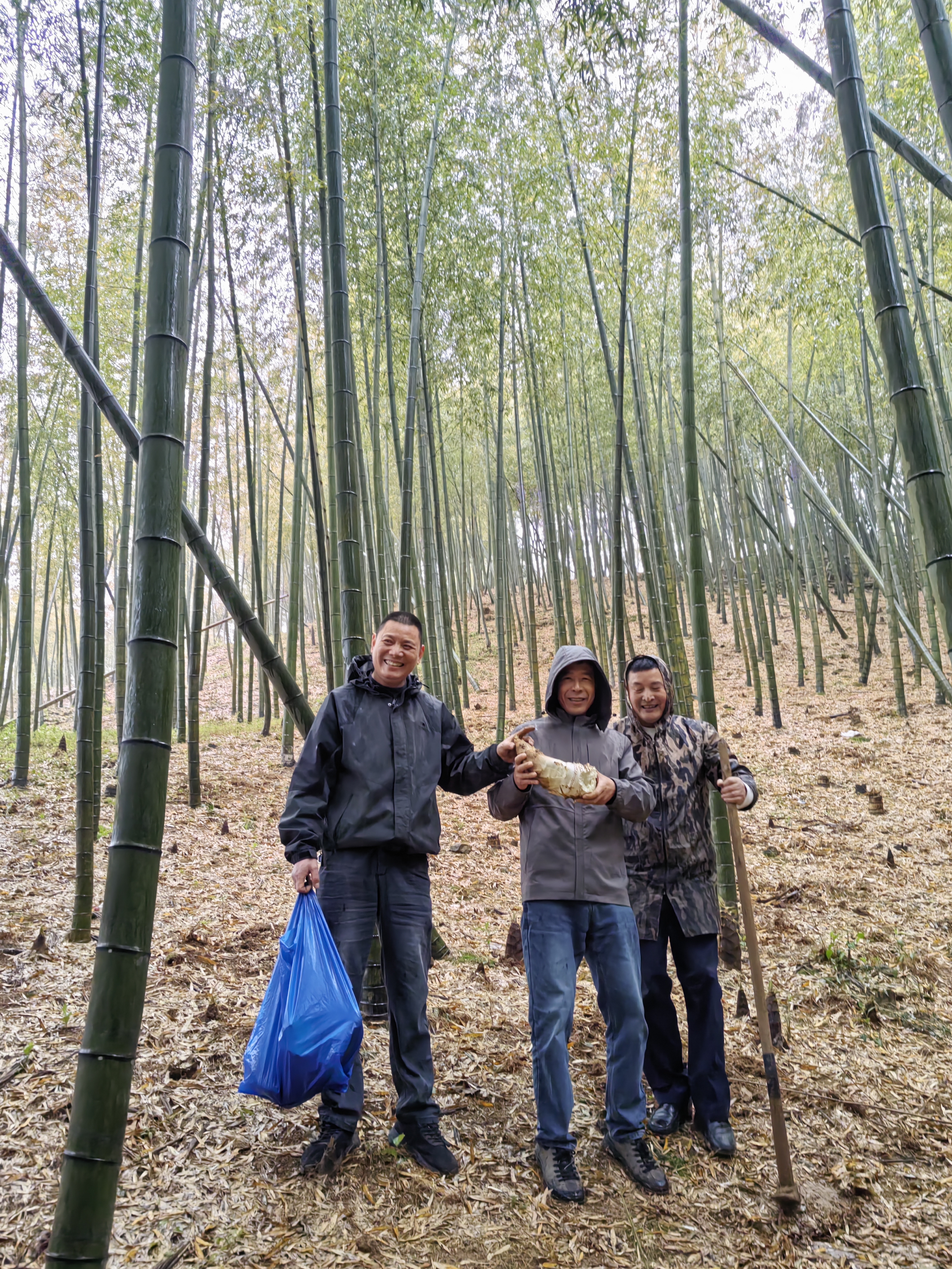 笋香·江南绝色美味 “蒌蒿满地芦芽短,正是笋香绝佳时。”从立春一直到四月下旬,江南便迎来了食笋的最佳时节。所谓“好竹连山觉笋香”,正是此时的写照。 中国食笋的历史十分久远。《诗经》中便有记载:“其蔌维何,维笋及蒲。”晋代戴凯之所著的《竹谱》一书,更是介绍了七十多个竹子品种及不同竹笋的风味。 其实,对竹笋的鲜美之意,也是历代文人的至爱。诗圣杜甫曾写下“青青竹笋迎船出,白白江鱼入馔来”的诗句,表达对竹笋风味的钟爱。清代郑板桥亦言:“江南竹笋赶鲋鱼,烂煮春风三月初。”由此可见,“无笋不欢”早有历史佐证。 抱着“家中常有八珍尝,哪及山间野笋香”的执念,清明节后,应友人君福相邀,顾不得当天大雨倾盆,我欣然前往浙东小九寨沟的毛笋基地挖笋。 当天早上,一行八人抵达目的地,便忙拿起友人准备的锄头与砍刀,开始边走边找。听君福说,毛笋中的极品叫作“黄泥拱”,其外观特征为“黄尖、红芽、白根”,笋须、笋壳及笋尖均呈黄色,表层还带有黄泥土渍。民间有“黄泥拱上市,鱼肉都靠边”的说法。然而,“黄泥拱”深埋在肥沃的黄土层下,笋头将出未出,不像普通春笋那样——雷声一响、春雨一下,便满山遍野地生长。它更像是藏在土地怀里的一块宝玉,需观察地表泥土被顶起形成的小土包或有裂缝之处,找到它大半要靠运气。 同行的申工不愧是“捕笋”高手,一身迷彩打扮,身手矫健。虽然已转业到地方工作,却一直保留着军人作风。凭着那股执着劲儿,不到一刻工夫,他便找到了笋肉雪白的“黄泥拱”。此时,我们也收获了不少品质鲜嫩的毛笋,垒起来一称,竟有八九十斤。 食材既已备齐,离品尝美味仅一步之遥。听老人说,竹笋是百搭菜:去壳后,可以单独水煮,也可与瘦猪肉搭配小炒,还能烤着吃。但最佳的食用方式是荤素搭配。古人李渔曾说竹笋:“以之伴荤,则牛羊鸡鸭等物皆宜……肉之肥者能甘,甘味入笋,则不见其甘而但觉其鲜之至也。”这说的便是说它有“傍林鲜”的妙处。 带着劳动的果实,我们沿用传统做法,开始做猪肉烤黄泥拱笋。先将去皮的笋切块,放入高压锅,大火烧至出大气,再转小火闷烧三十分钟左右,冷却备用。然后在铁锅中放少量食用油,将切块五花肉炸至两面金黄出油,再与煮熟的笋一同放入高压锅,加入酱油、糖、料酒和少量水,大火烧开收汁即可。 最简便的食用方法则是做咸菜笋。只需将笋切丝,用高压锅烧至出大气约五分钟,冷却后加入切小段的咸菜肉丝,烧熟即可食用。 而最能长久保存、也是宁波地区最畅销的笋制品,当属油焖笋。油焖笋是江南传统名菜,属鲜咸口味的家常菜,一年四季皆可食用。做法是:将笋去皮切块,放入高压锅大火烧至出大气,再转小火闷烧三十分钟左右,冷却后放入大铁锅,加入食用油、酱油、糖(可同时放入)以及约没过笋三分之二的开水,大火烧至收汁即成,而后装瓶装罐常温储存。据考证,奉化地域的油焖笋特色鲜明,其制作技艺已被列入奉化区级非物质文化遗产,还远销加拿大多伦多。 当然,笋的做法还有很多,比如笋干菜、凉拌咸笋等等,不一而足。 简而言之,笋香味果然名不虚传。相信随着现代科学技术与传统烹饪技术的日益改进,竹笋的本质价值将被深度开发,其独特的“香”味也将在传统已有基础上推陈出新,这份江南美味定会越传越久,越传越广。