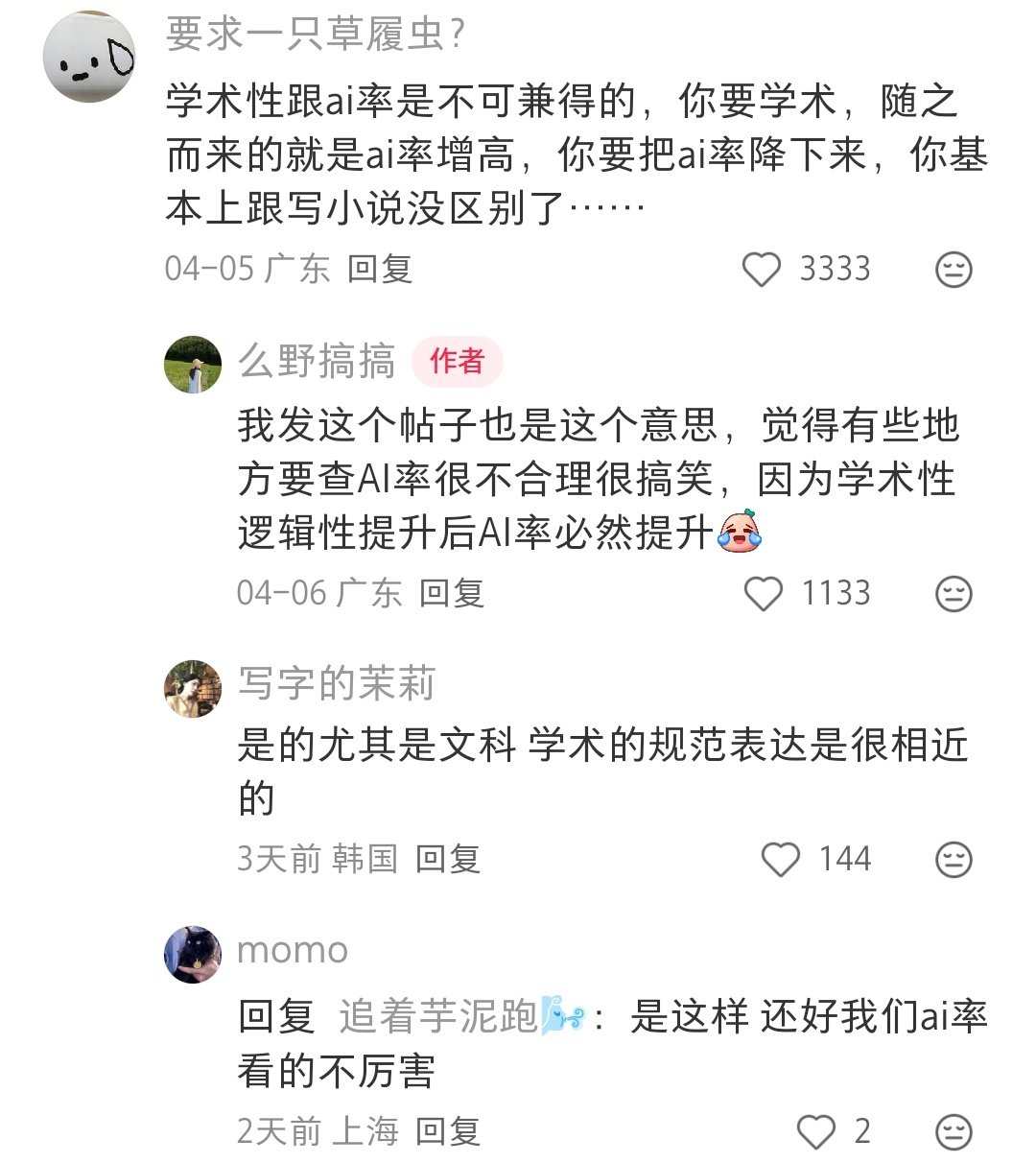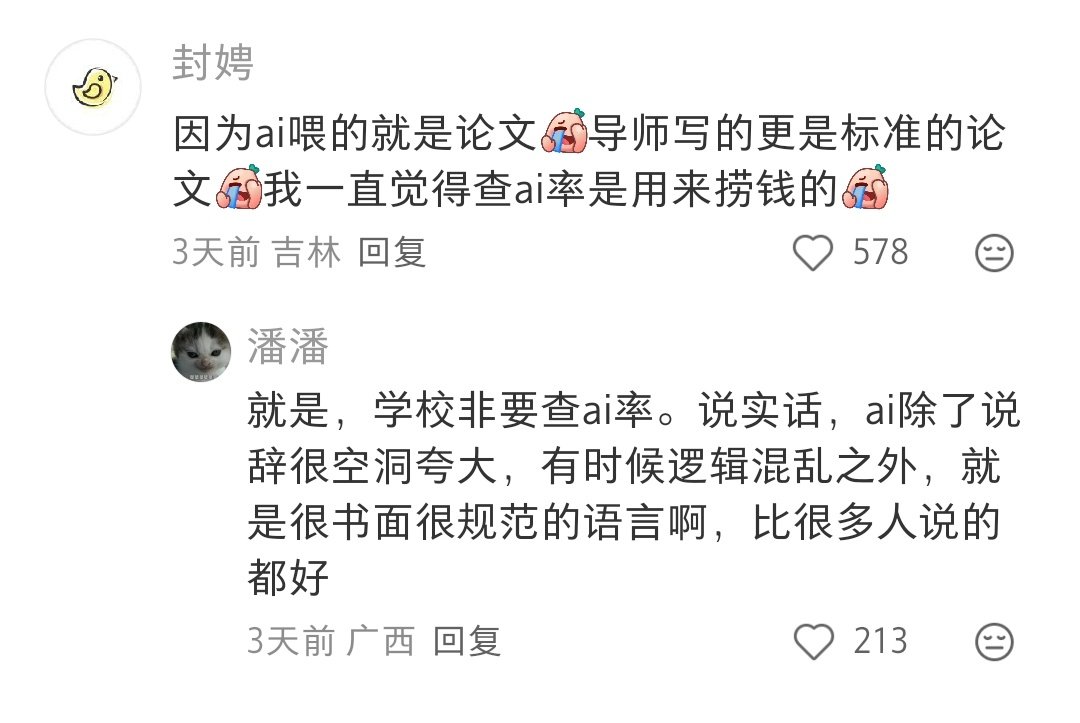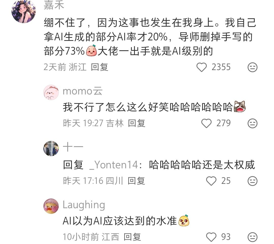 现在感觉都魔怔了,特别是到处鉴ai的,总刷到写小说的被各种鉴ai,正确使用标点符号是ai,写作水平好一点也是ai,啥都是ai[泪奔]