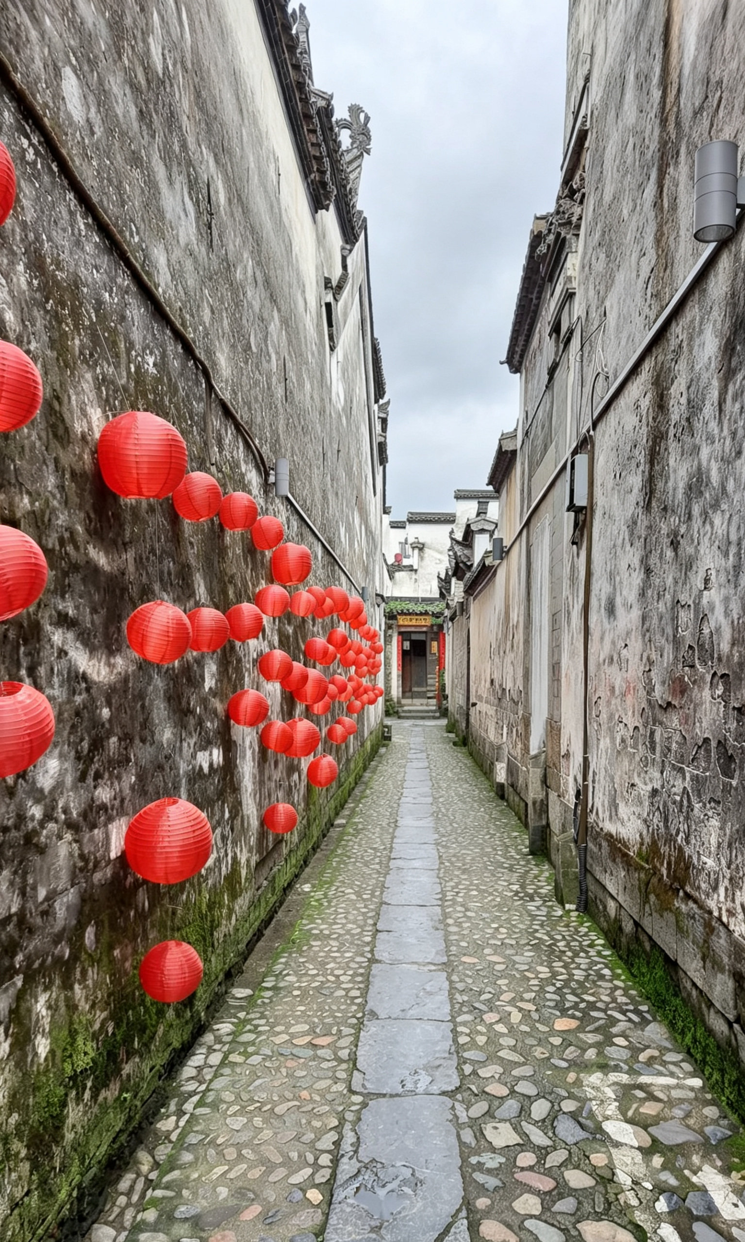 古巷行吟 雨润青石板,苔痕漫旧墙。古巷如一卷泛黄的诗笺,藏着岁月的沉香。石墙垒就的老屋,黛瓦翘檐,在烟雨中静立千年;鹅卵石铺就的长巷,蜿蜒着时光的足迹,每一步都踏响往昔的回响。 红灯笼悬于斑驳墙垣,晕开一抹暖红,似旧时光里未凉的灯火;马头墙错落有致,飞檐翘角间,尽是徽派风骨与江南温婉。竹影摇风,青苔缀壁,古巷不语,却将千年的烟火与诗意,都揉进这悠长的岁月里,待来人慢品,细赏。