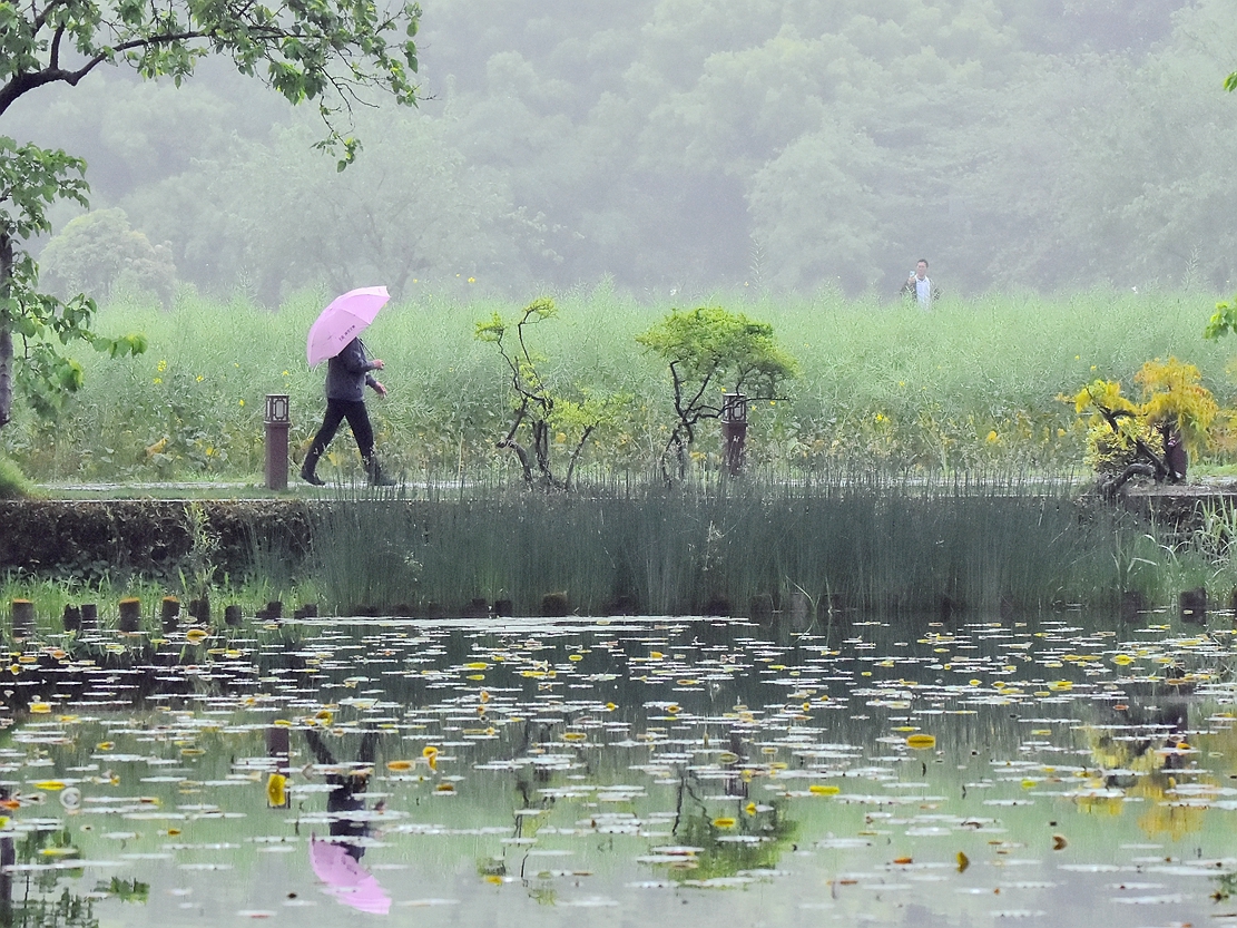 春雨绵绵郊外游——晨游八卦田,春雨绵绵,田野有些朦胧,颇有画意。油菜花开始结籽了,蜻蜓、黄眉鹀在躲雨,活泼的鹪莺在雨中游玩。湖中的新荷叶露出了水面,千姿百态,好美,荷叶上有不少水珠,可谓:大珠小珠落玉盘。一些游客撑着伞,漫步于田埂,欣赏雨中别样的郊外风光。摄于4月14日。