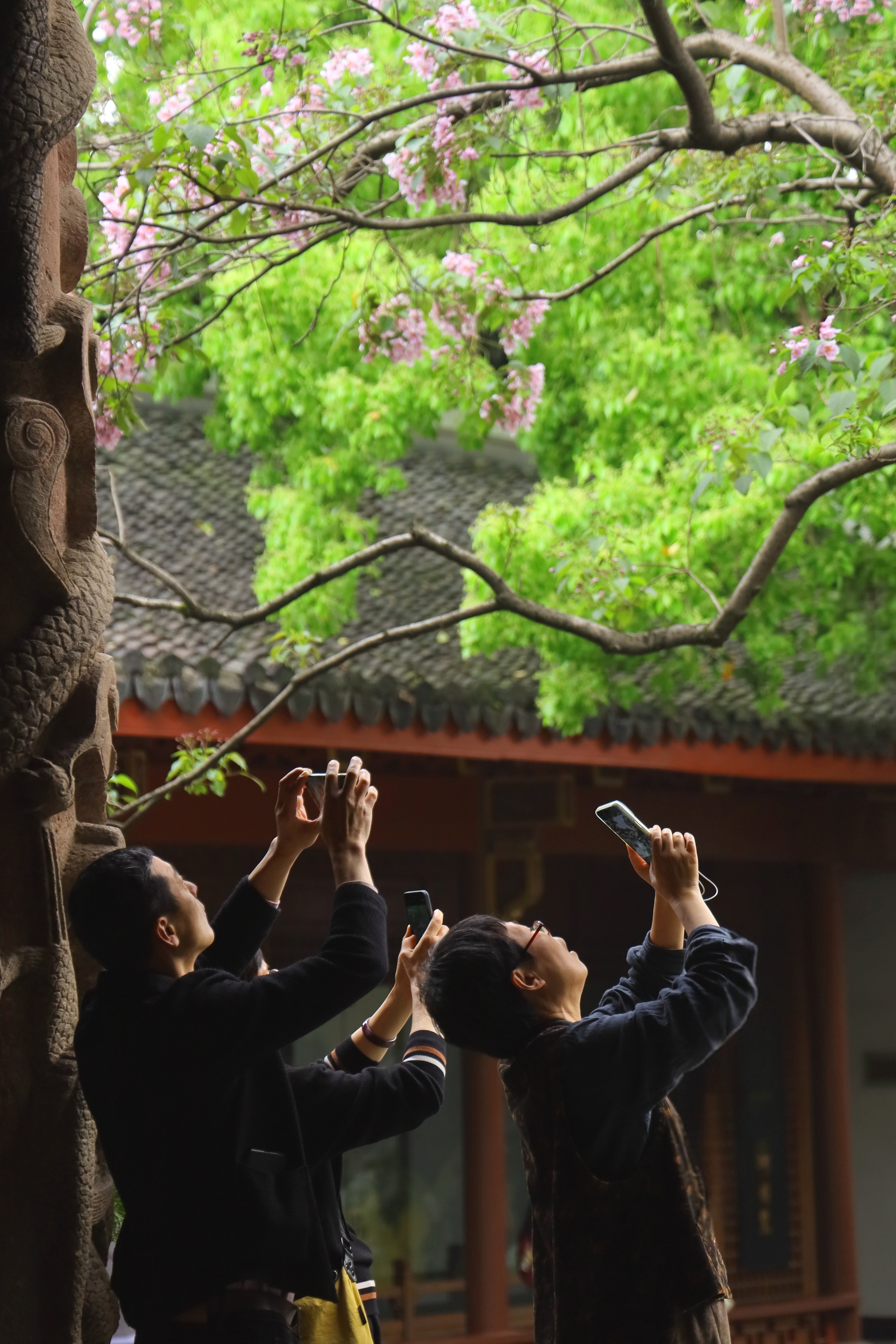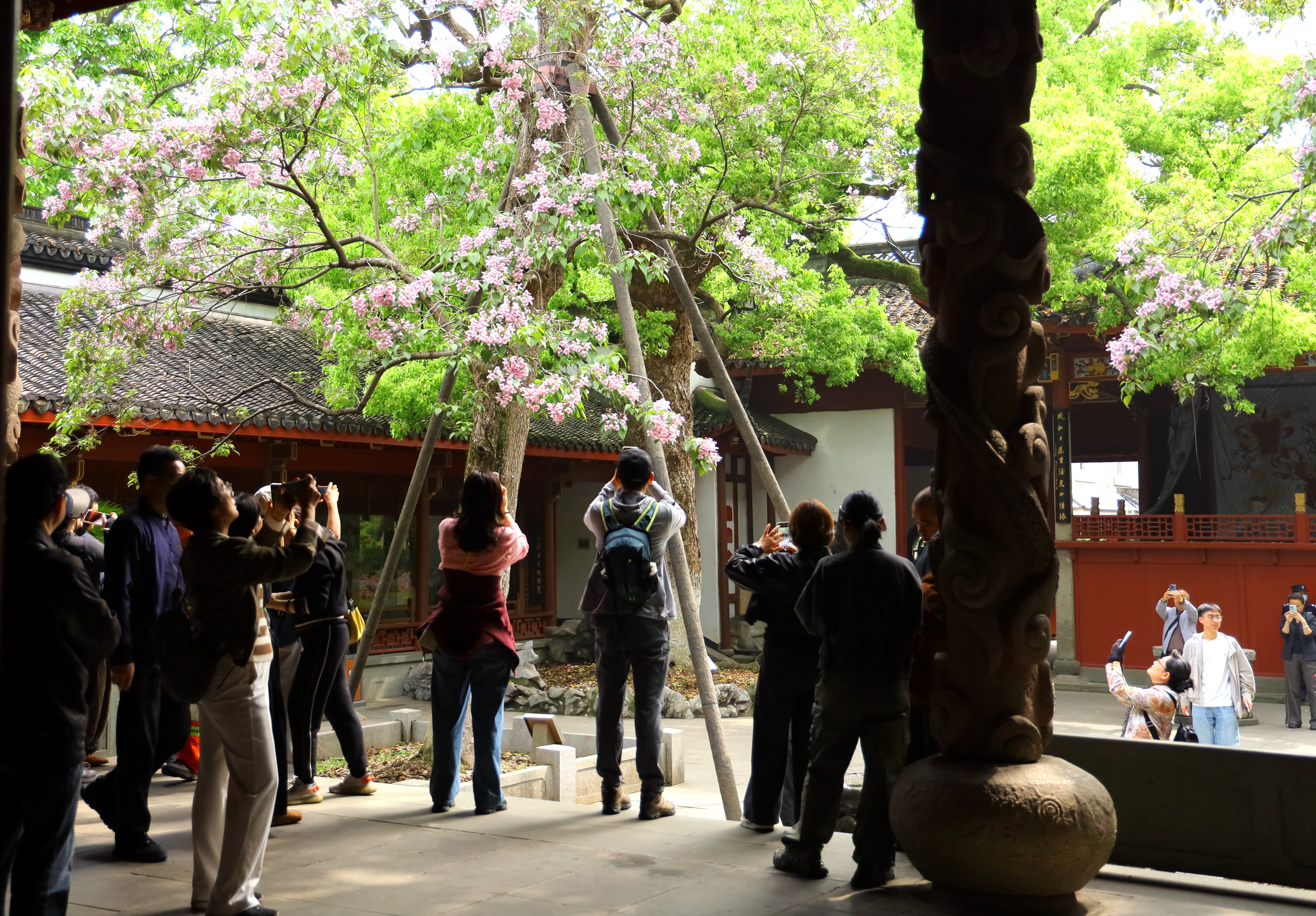 530年的“比翼双飞” 这对树值得你抬头望 吴山东岳庙的楸树 被誉为最美古树