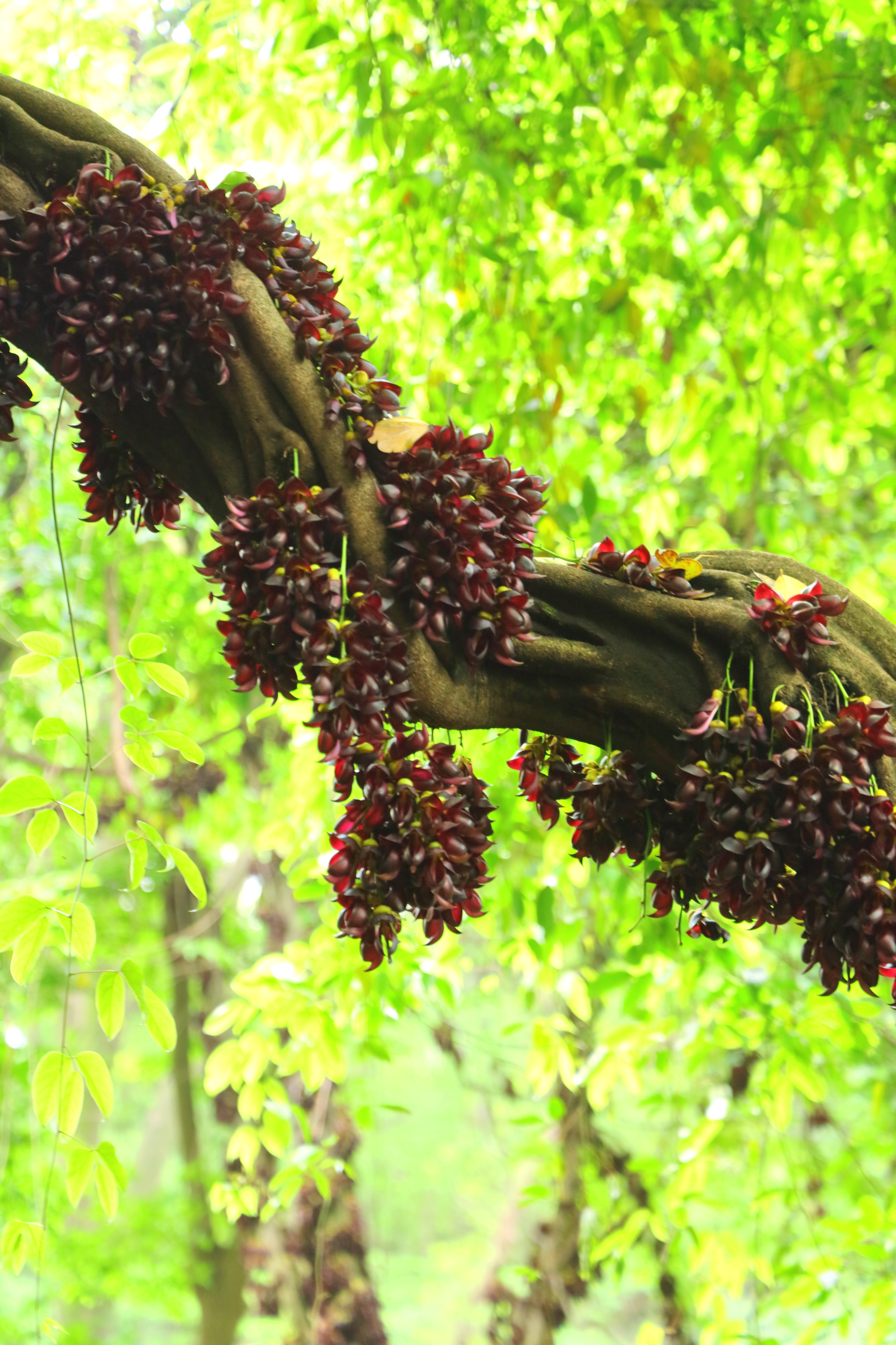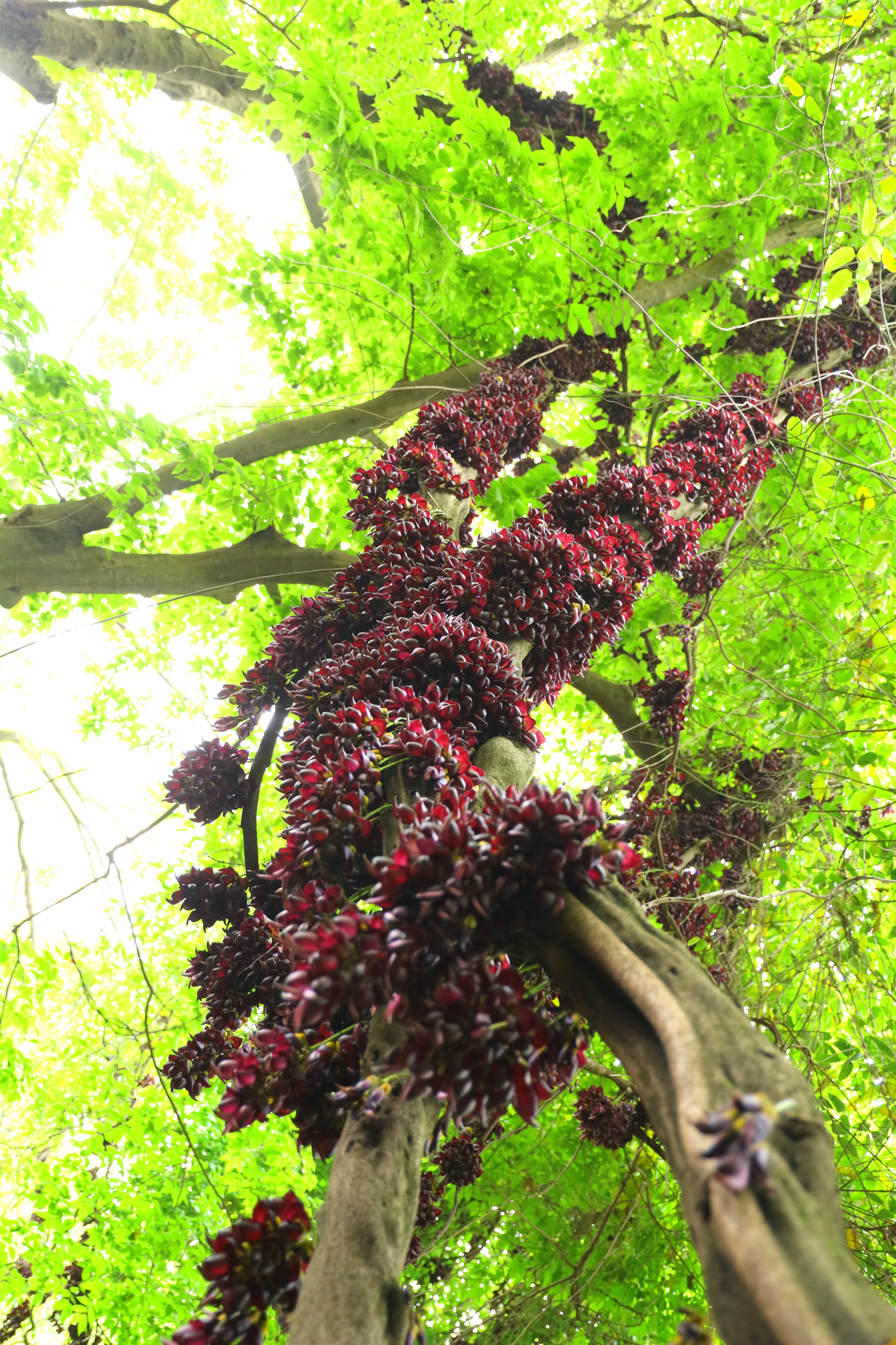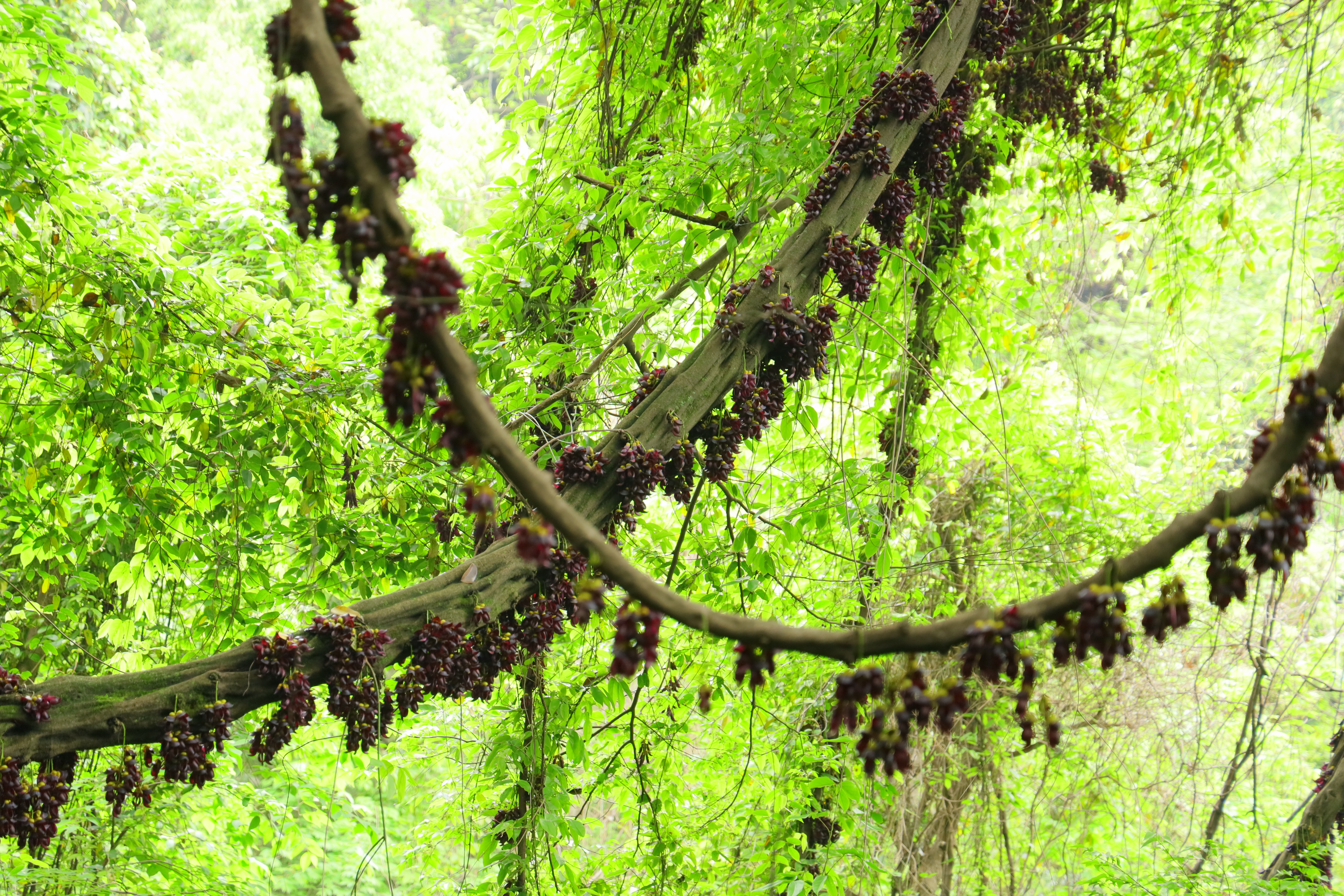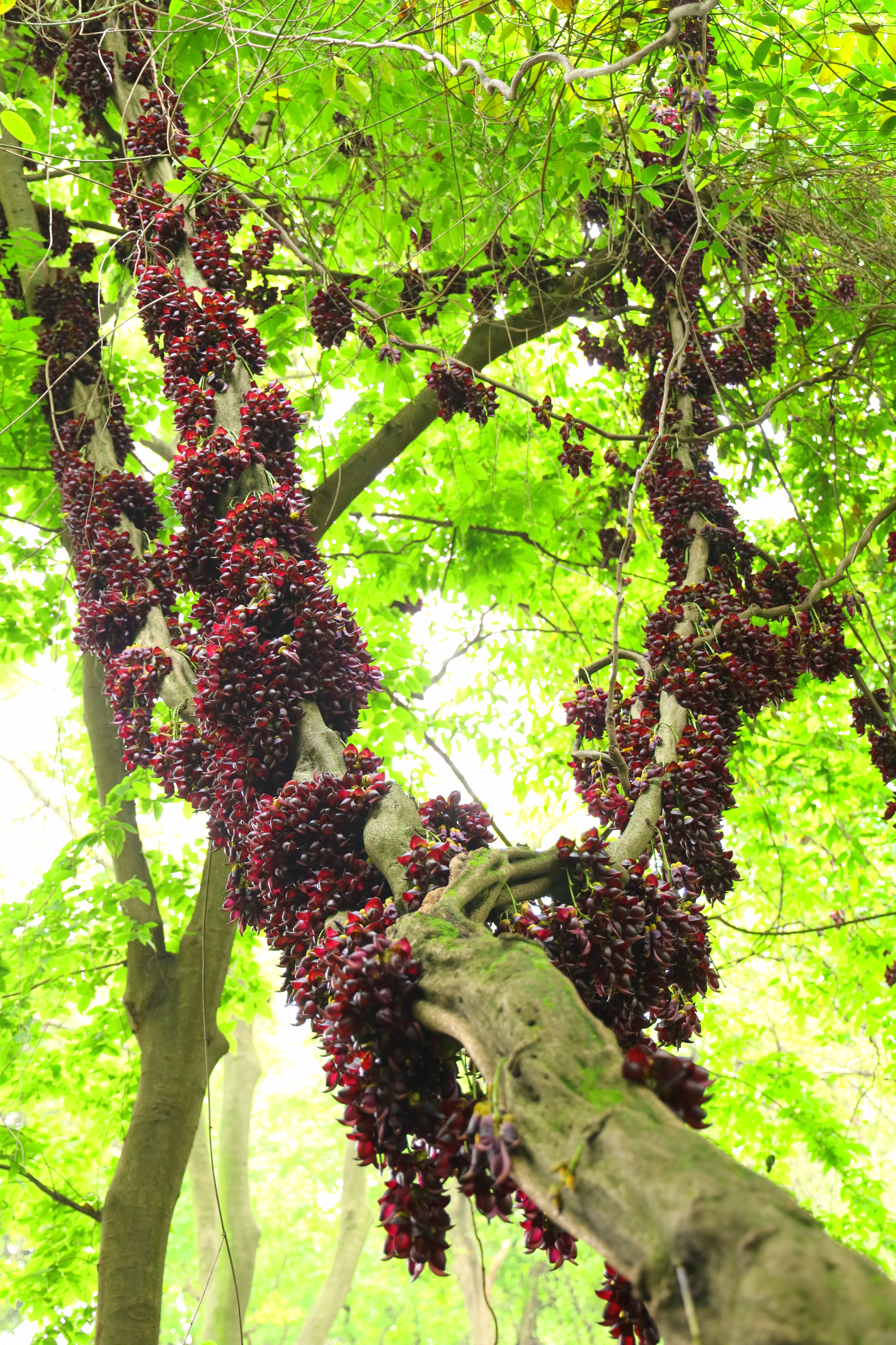 油麻藤—— 无数次的路过 都不愿抬头多看 今天因为带着相机 不经意的见到了 镜头里的它们如雀栖枝 山林老藤满是紫穗万悬 与大树翠色相衬春意阑珊