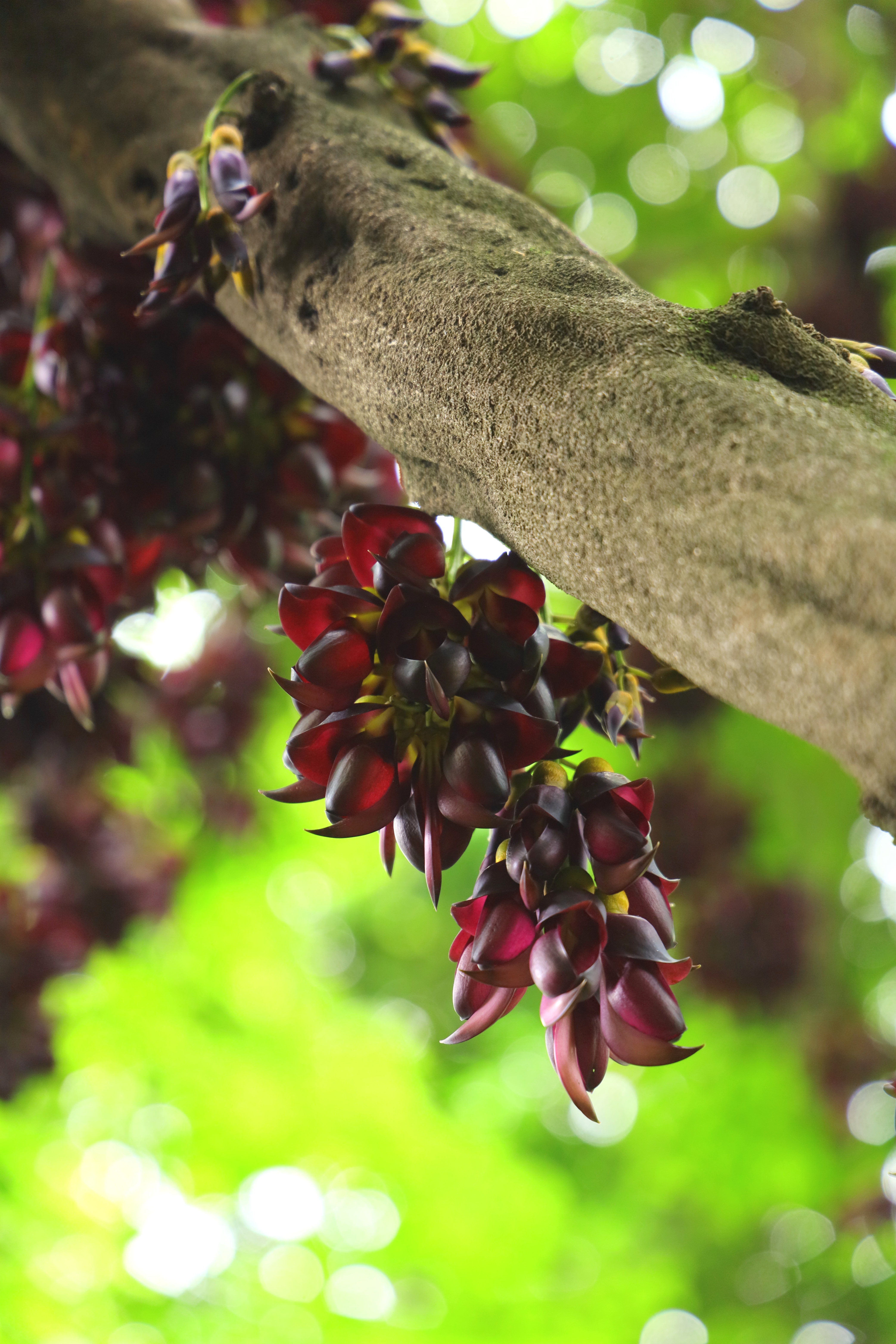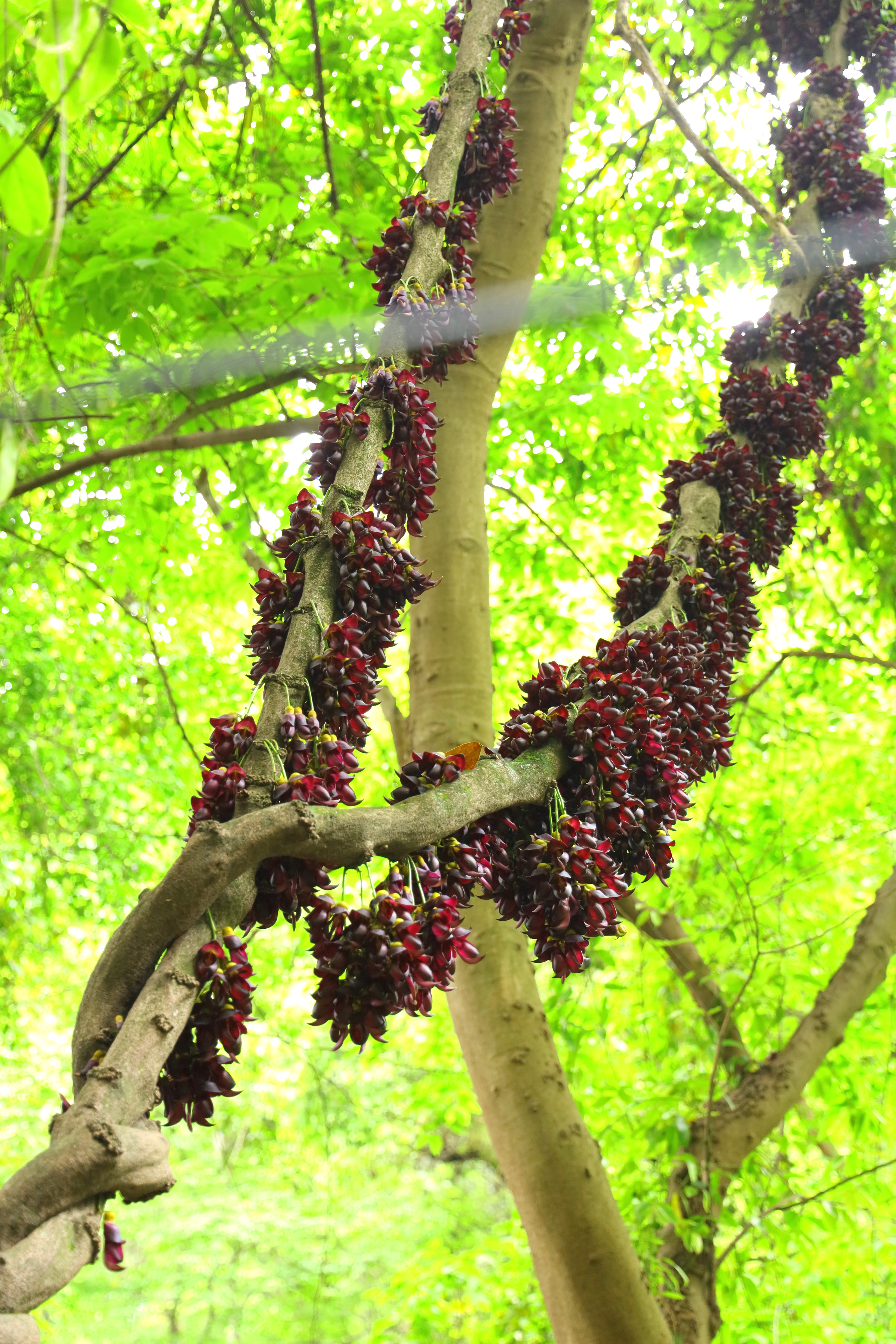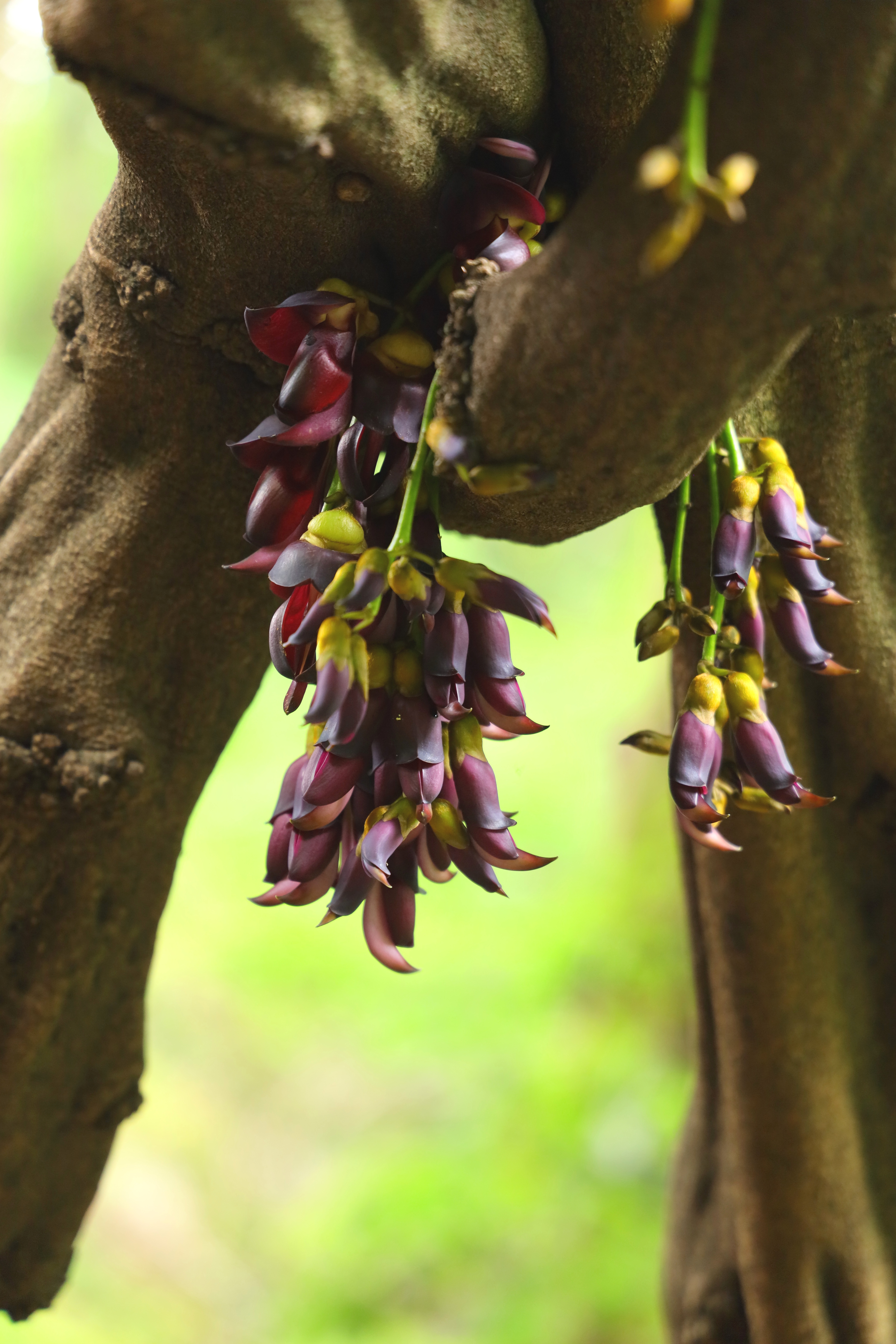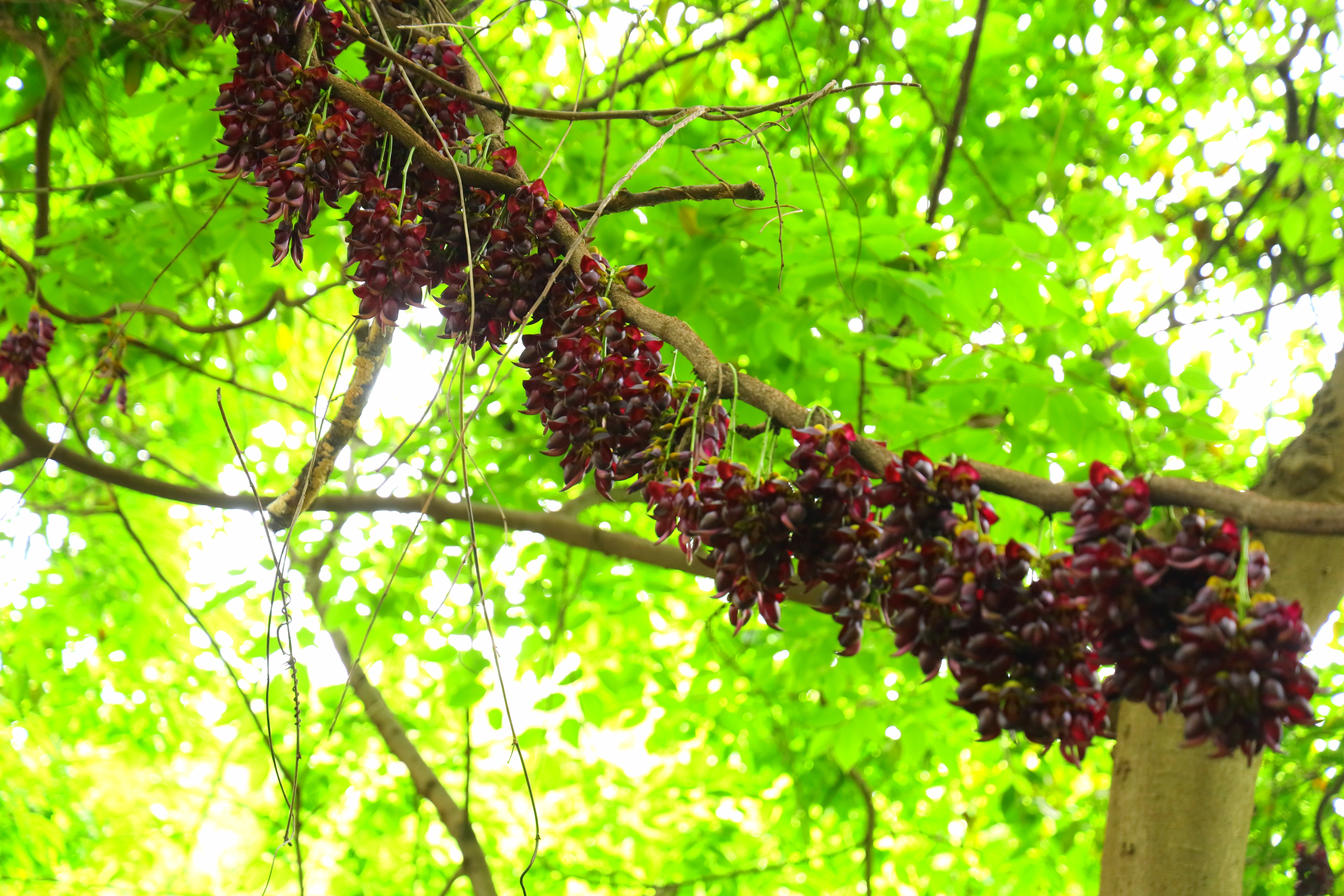 油麻藤—— 无数次的路过 都不愿抬头多看 今天因为带着相机 不经意的见到了 镜头里的它们如雀栖枝 山林老藤满是紫穗万悬 与大树翠色相衬春意阑珊
