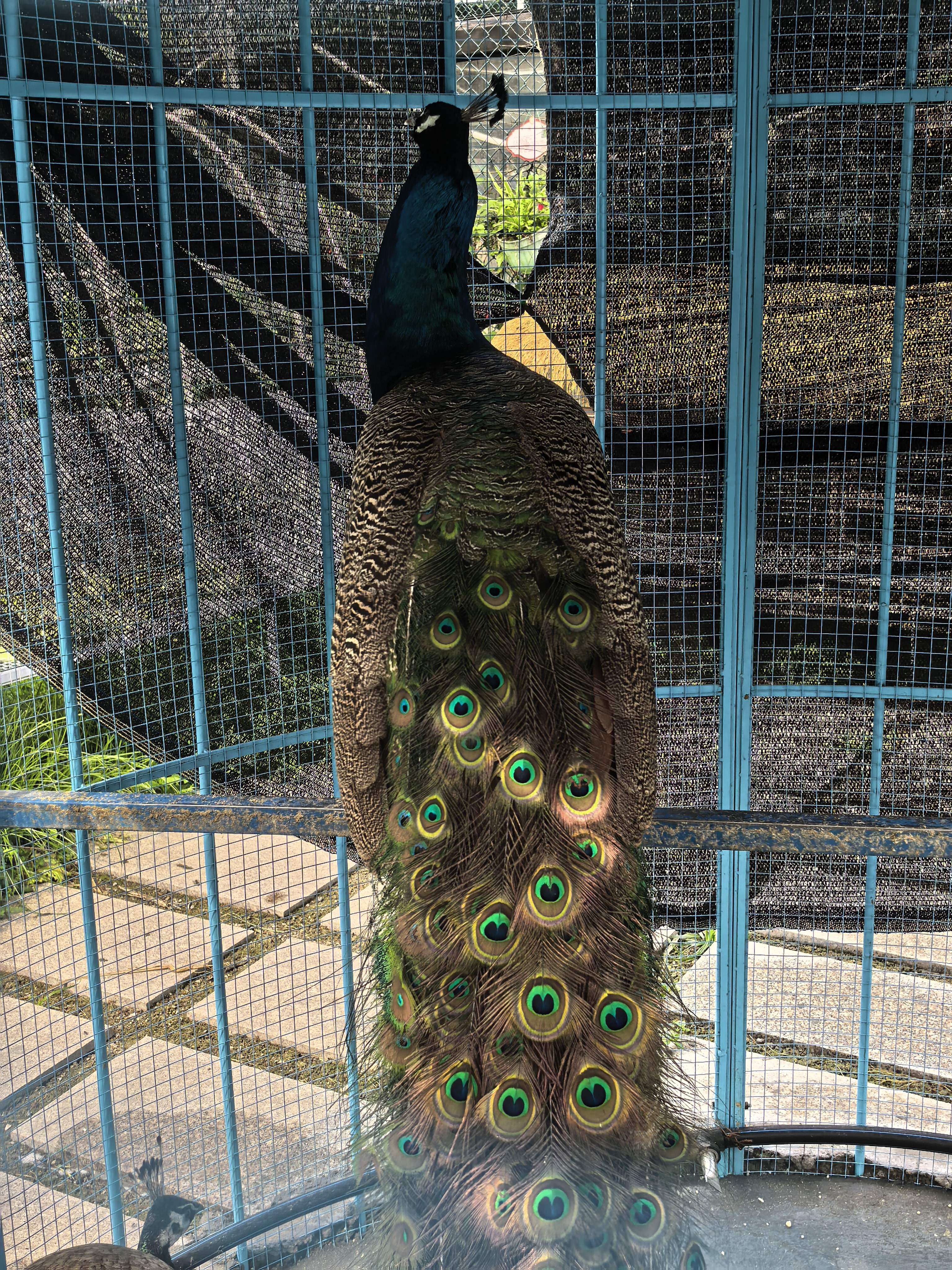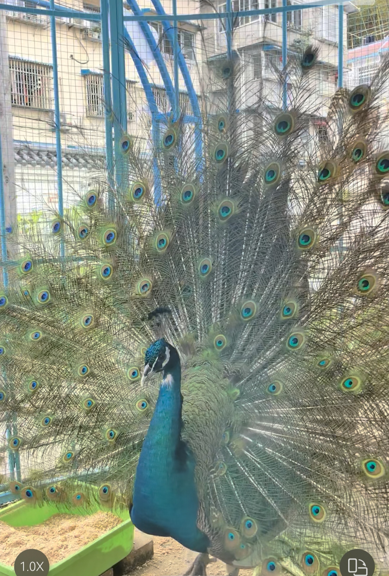 农耕园偶遇孔雀开屏!蓝脖子闪亮,眼斑灵动,金属围栏框住这抹春色~城市背景里,它才是C位!