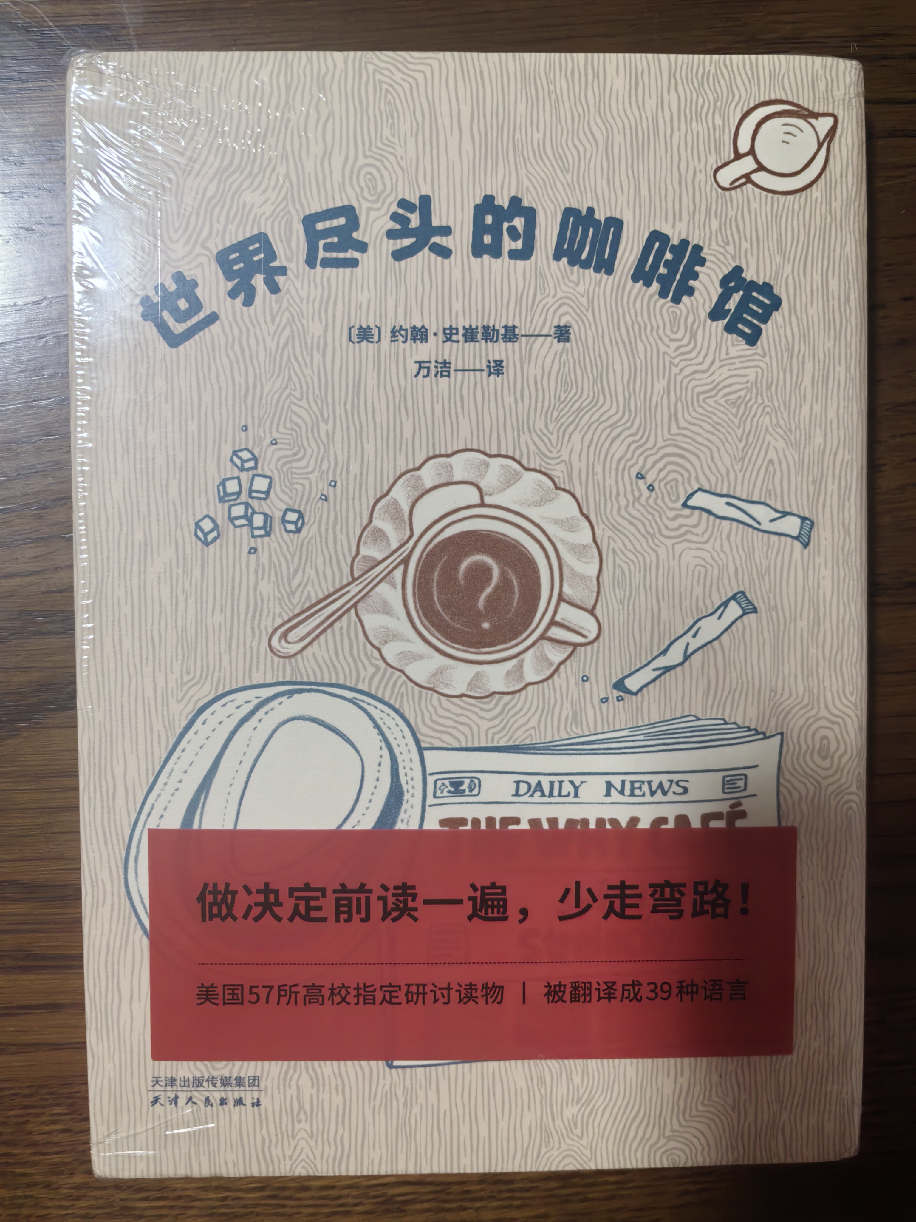 收到书籍《世界尽头的咖啡馆》:主要讲述主人公约翰过着稳定却麻木的生活,在一次自驾迷路、汽油耗尽时,偶然闯入海边一家名叫 “你为什么来这里咖啡馆” 的神秘小店。开启他的故事的情节