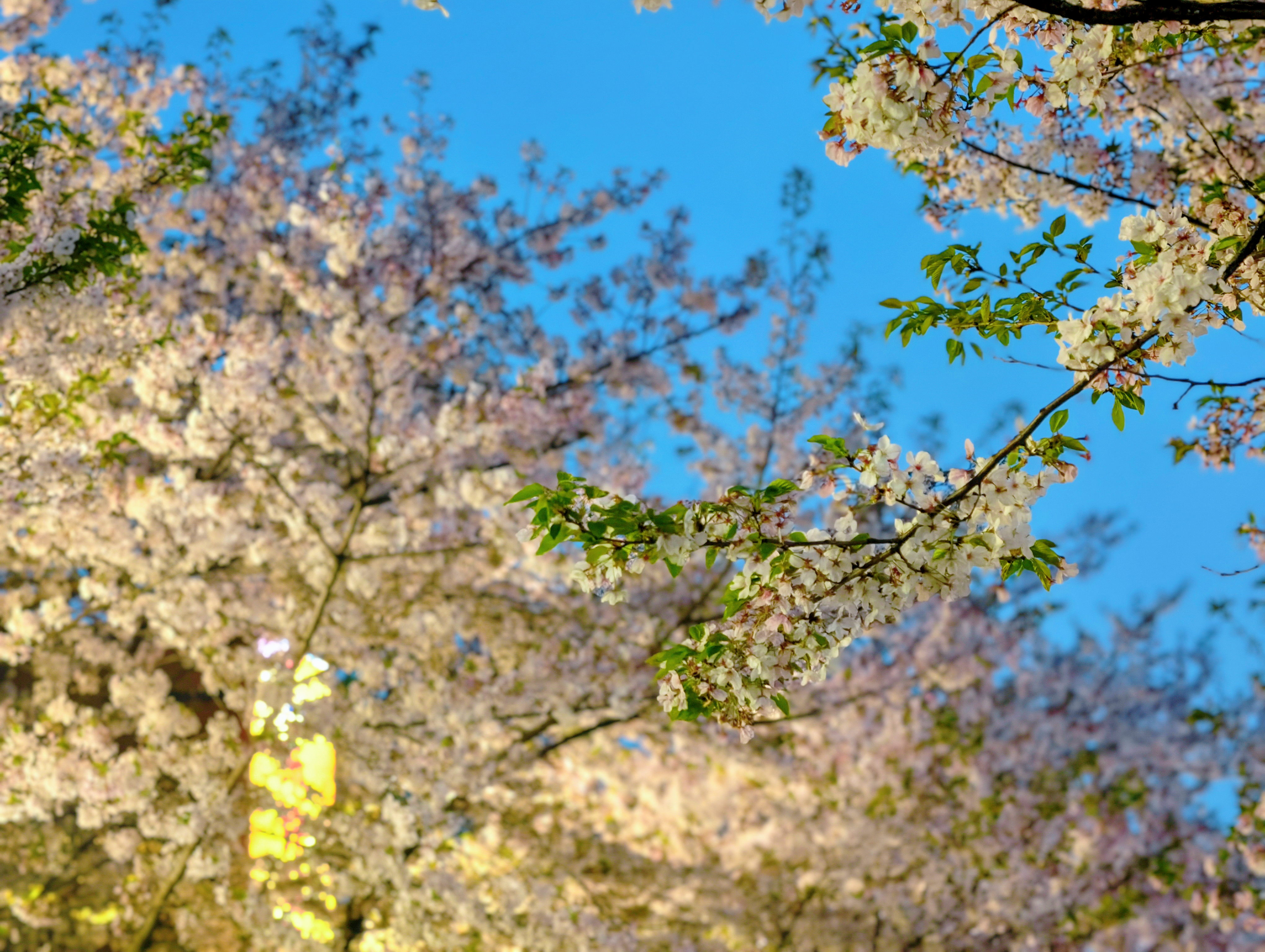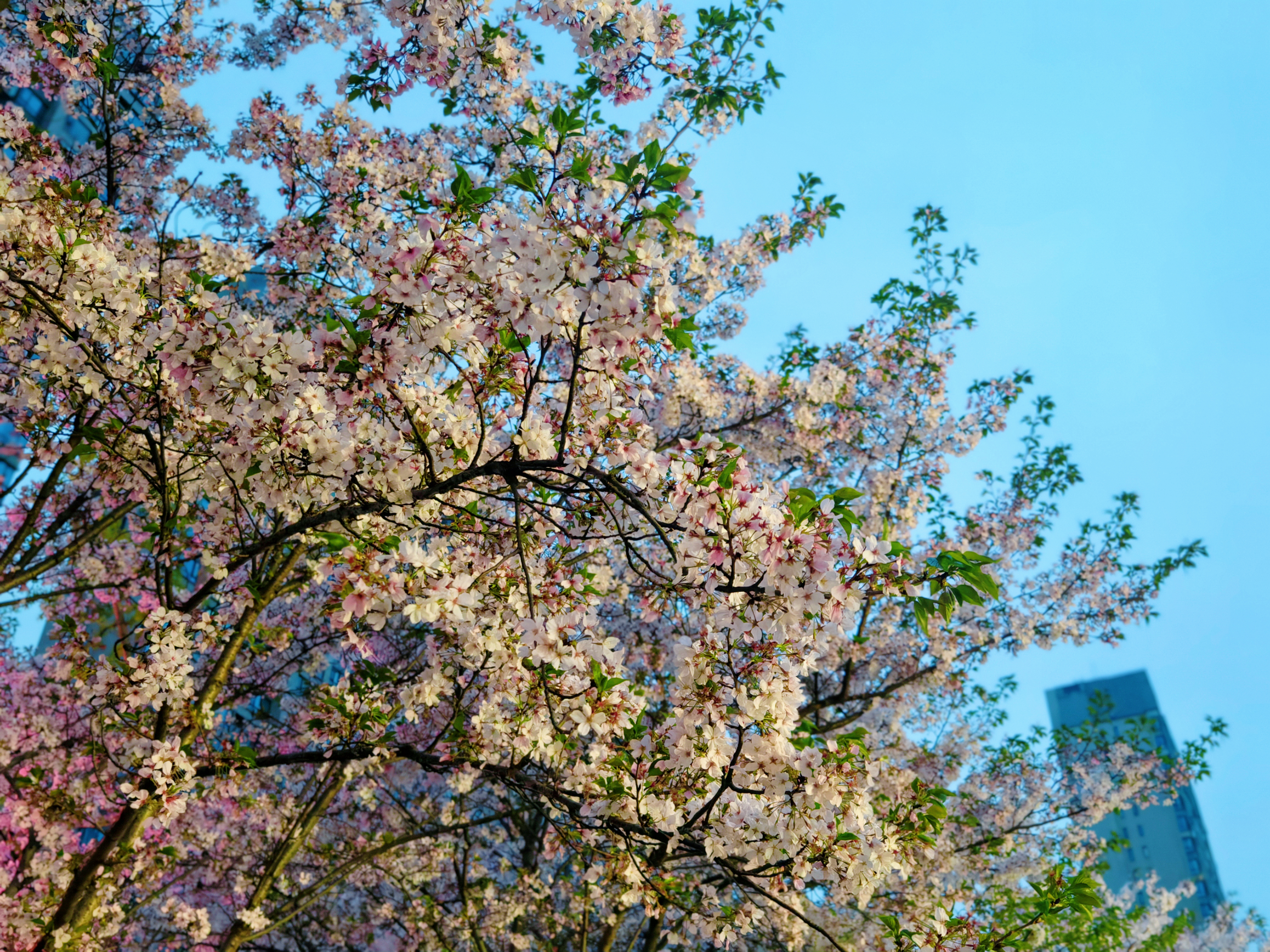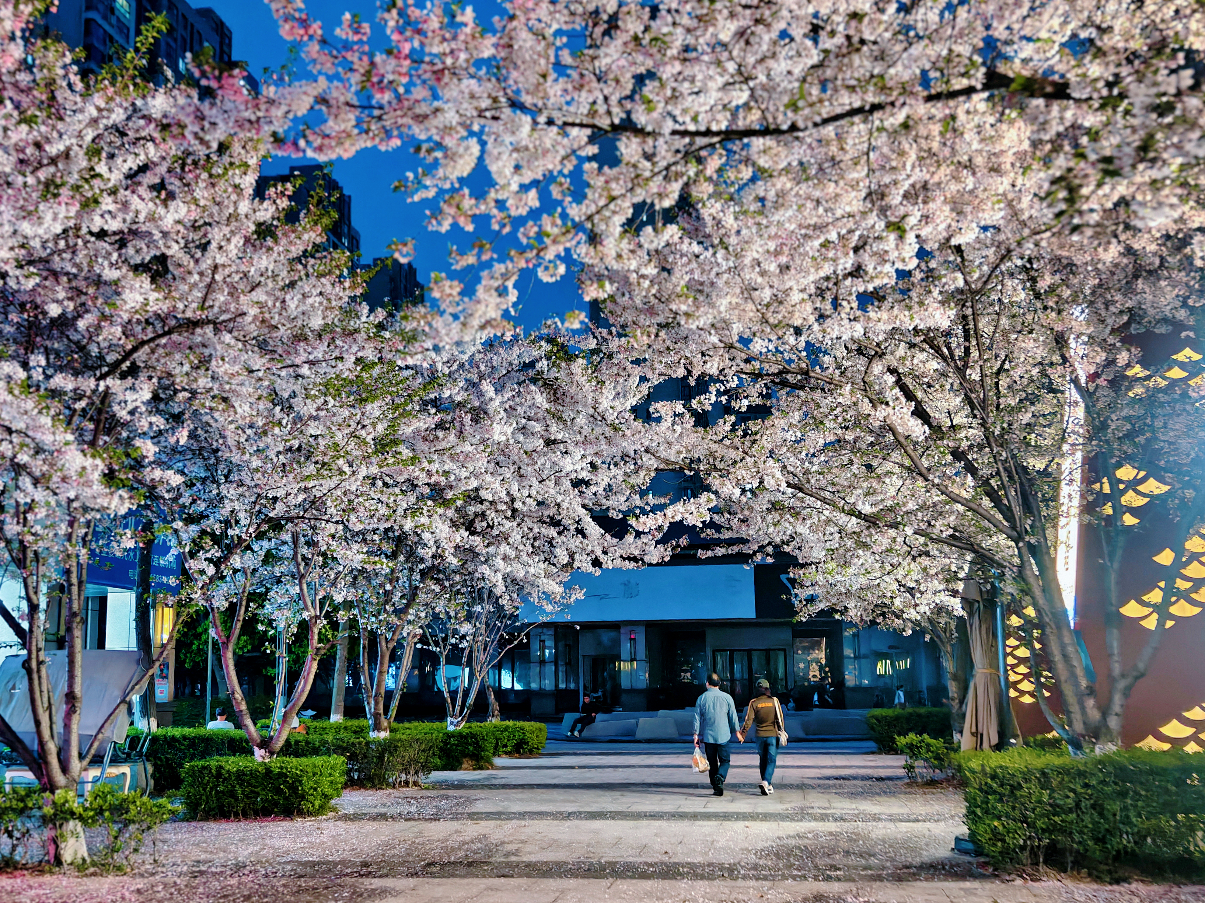 暮色浸染,樱花坠入靛蓝梦境,城市灯火与花瓣私语,此刻浪漫封神。
