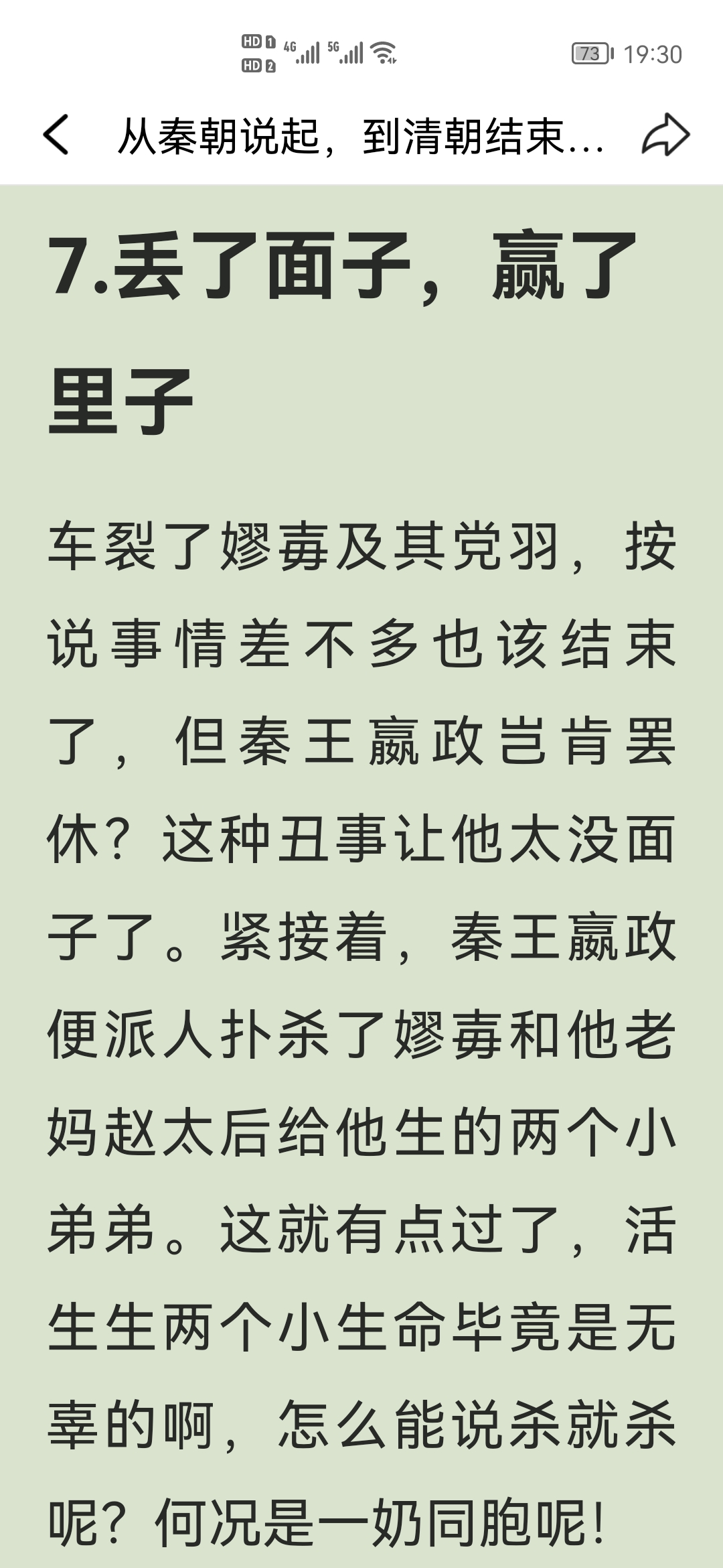 《大秦风云》第一章《奇货可居》第7小节“丢了面子、赢了里子”主要内容及阅读理解: 一、主要内容 本小节围绕秦王嬴政处理嫪毐之乱后续、软禁赵太后及茅焦进谏等核心事件展开,完整呈现了嬴政在权力巩固过程中的狠辣手段与最终的策略调整,具体脉络如下: 1. 嬴政的雷霆清算:嫪毐之乱被车裂党羽后,嬴政因“家丑”倍感颜面尽失,不仅扑杀了嫪毐与赵太后所生的两个幼子,还因赵太后之事恼羞成怒,先后斩杀二十多位上书劝谏的大臣,甚至扬言敢为太后进言者,一律斩首、断四肢示众,手段极度凌厉。 2. 茅焦冒死进谏:大臣们四散逃亡后,齐人茅焦不惧生死,跪在王宫大殿前为赵太后求情。嬴政怒而召见,欲烹杀茅焦,茅焦却以“天上二十八星宿已死二十七人,自己来凑齐二十八数”的决绝表态,又以“怕死未必不死,不怕死未必会死”及嬴政行为悖逆人伦、失民心将致亡国等道理进言,主动请死。 3. 嬴政的幡然悔悟:嬴政此次听进了茅焦的劝谏,意识到自身行为的严重性,顺坡下驴接受建议,不仅赦免茅焦并封其为上卿,还亲自驾车前往雍宫迎接赵太后返回咸阳,母子关系暂时和好。 4. 得失的核心总结:嬴政虽因杀子、囚母、杀臣之事丢尽颜面,却借此清除了嫪毐、吕不韦等势力的掣肘,彻底收回王权、掌握秦国实权,实现了“丢面子、赢里子”的核心目的。 二、阅读理解 (一)人物形象分析 1. 秦王嬴政:本小节集中展现了嬴政性格的复杂性。一方面,他手段狠戾、刚愎自用,为保颜面不惜残杀亲弟、斩杀大臣,尽显帝王的冷酷与偏执;另一方面,他具备帝王的清醒与决断,在情绪平复后能认清局势,知错能改,不仅接纳茅焦的劝谏,还主动修复母子关系,体现出其为巩固王权可放下个人情绪的政治素养,为后续统一六国埋下伏笔。 2. 茅焦:茅焦是极具胆识与智慧的谏臣。他洞悉嬴政的心理与政治处境,并非盲目死谏,而是以“凑齐二十八星宿”的决绝姿态打破嬴政的杀意,又以理性的利害分析打动对方,既保全自身,又达成劝谏目的,是“智勇双全”的典型形象。 3. 赵太后:作为事件的导火索,她的行为引发嫪毐之乱,被软禁后成为嬴政修复形象的关键节点,其命运也侧面反映出古代皇权下“亲情”对“王权”的妥协。 (二)核心主旨与深层逻辑 1. 面子与里子的辩证:“丢了面子、赢了里子”是本小节的核心主旨。嬴政的“丢面子”体现在违背人伦、残杀亲眷与大臣,引发朝野非议;“赢里子”则是他通过这场风波彻底清除了嫪毐集团的势力,削弱了吕不韦的影响力,将王权牢牢掌握在手中,实现了政治权力的绝对集中,这是其后续统一六国的关键基础。 2. 古代皇权的本质:事件深刻揭示了古代皇权的残酷性——帝王为维护权力,可无视人伦亲情;但同时,皇权的稳固又依赖民心与舆论,嬴政最终接纳茅焦劝谏,也印证了“得民心者得天下”的潜在规则,帝王需在权力与舆论间寻找平衡。 (三)情节的叙事作用 1. 推动剧情发展:本小节是嬴政从“亲政初期的权力博弈”到“完全掌控王权”的关键转折,嫪毐、吕不韦势力被清算,赵太后问题解决,为后续嬴政专注于统一六国的大业扫清了内部障碍。 2. 塑造时代背景:通过嬴政的杀伐与悔悟,展现了战国末期秦国的政治氛围——王权争夺激烈,帝王需兼具狠辣与谋略,也反映出当时“孝道”与“王权”的冲突,让历史场景更具真实感。
