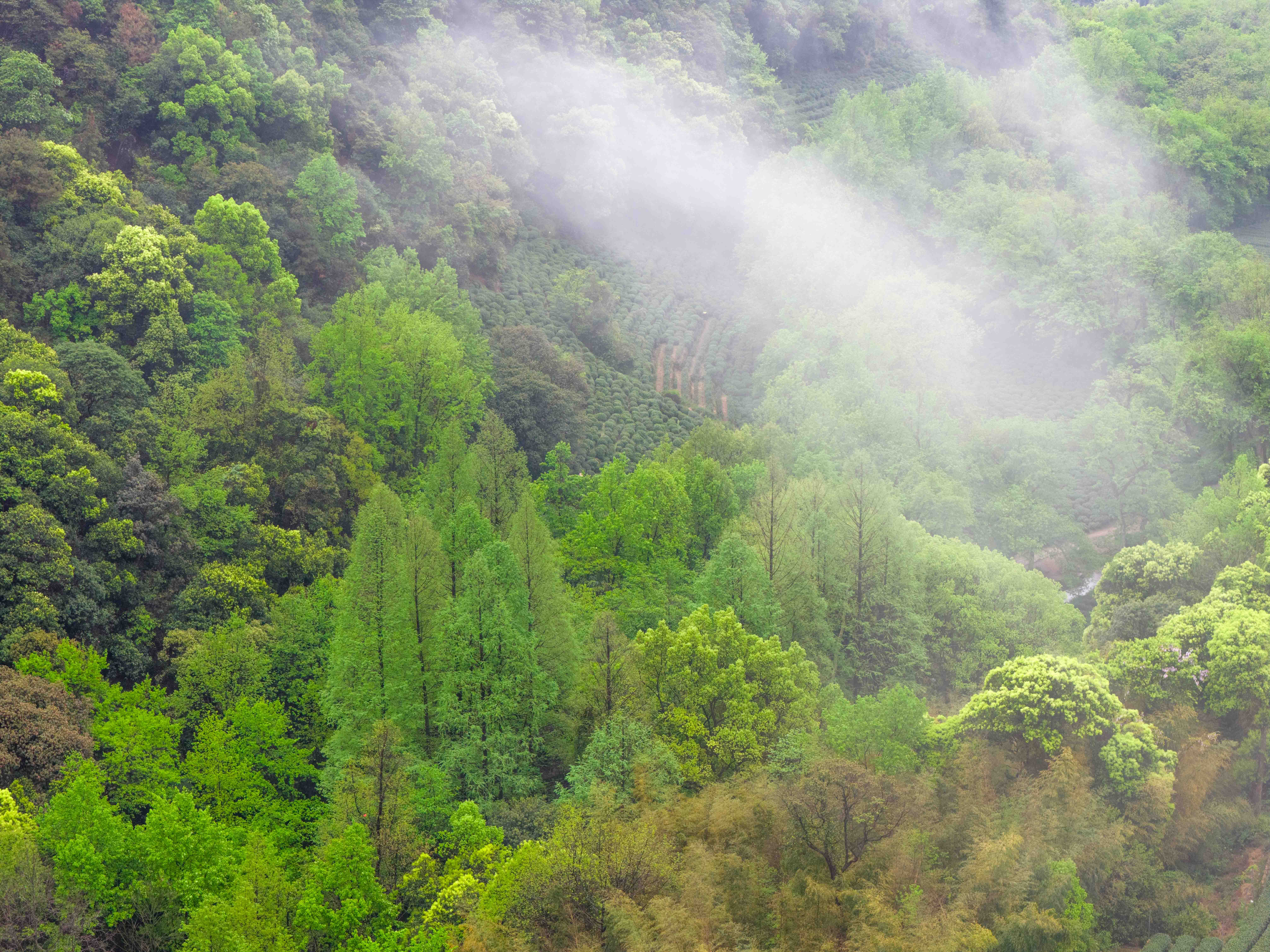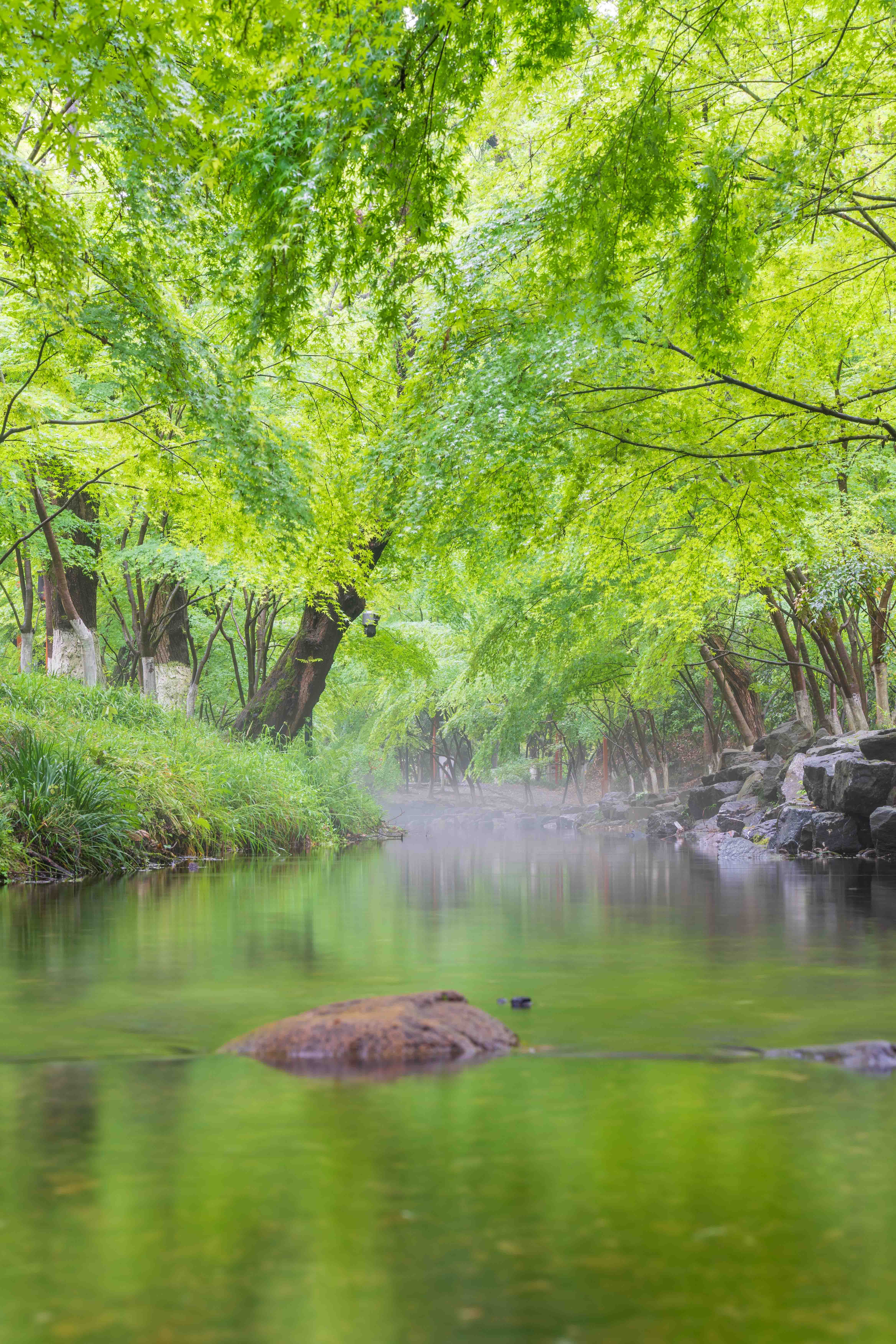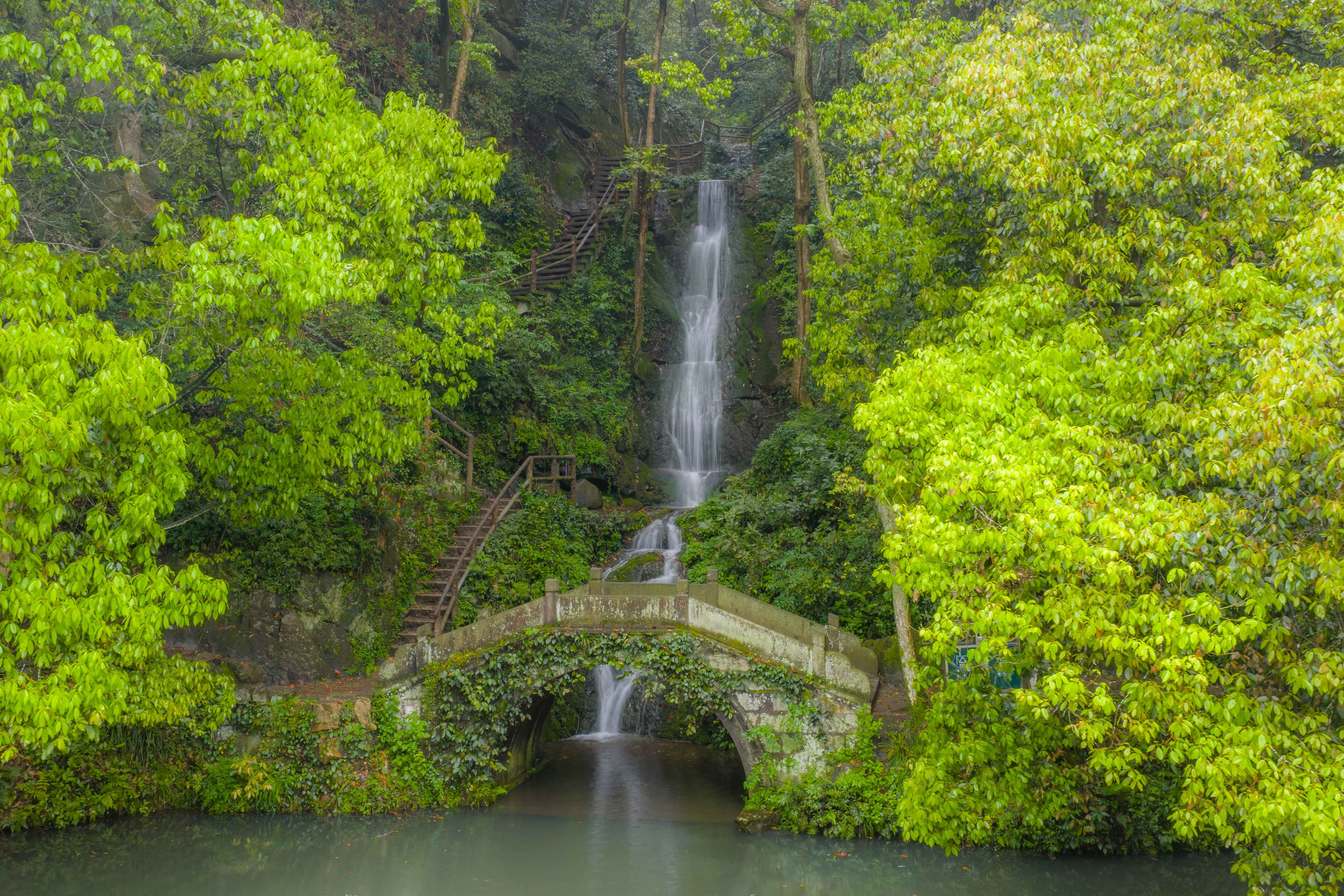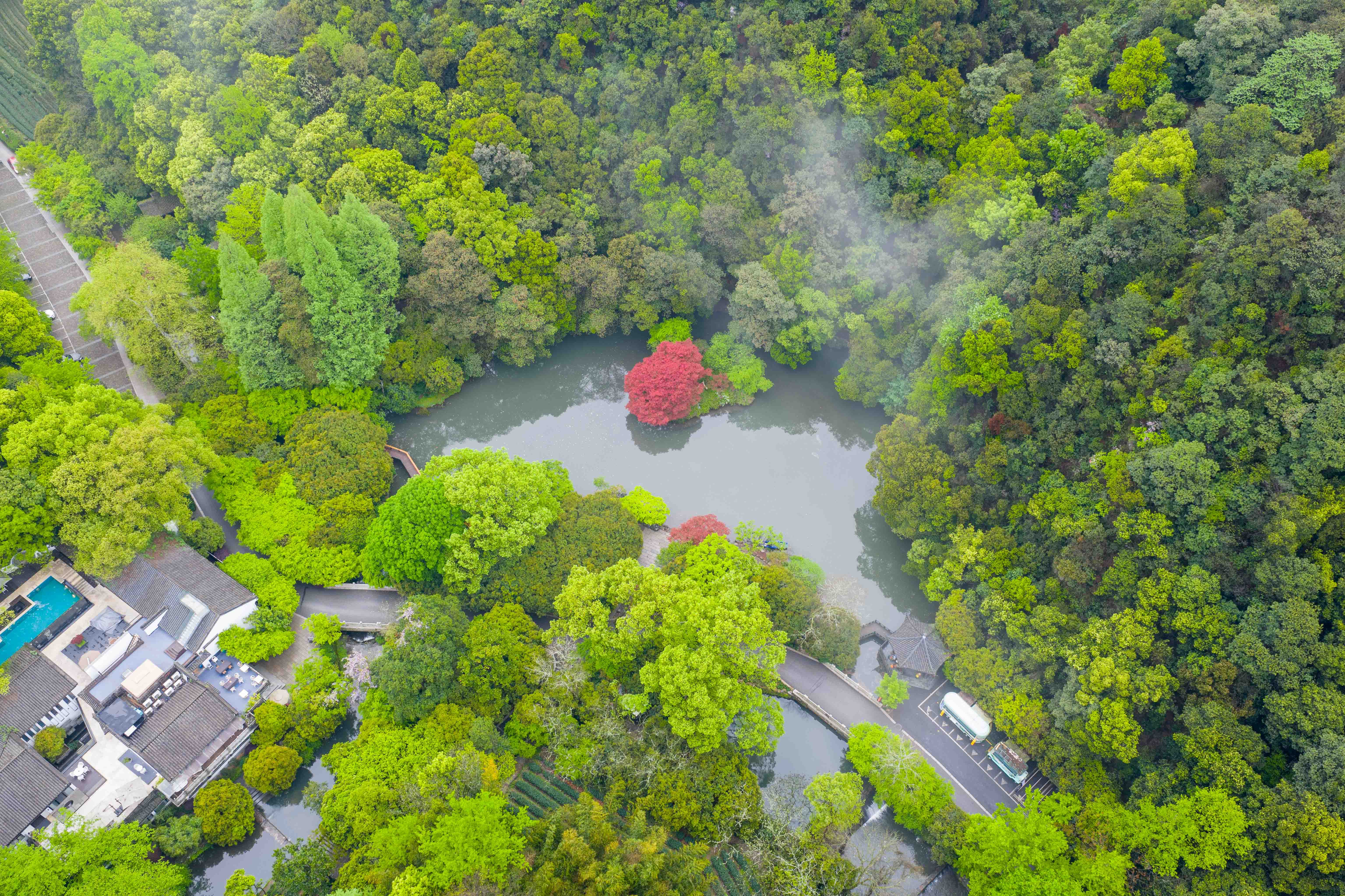 春日的九溪烟树,被漫山新绿浸成了一片温柔的绿海。薄雾漫过林间,慢门柔化的溪流如镜映着翠影,飞瀑穿桥漫过苔石,航拍视角里的一抹枫红藏在绿意间,把江南春日的湿润清润与蓬勃生机,都揉进了镜头里。 拍摄于2026年4月10日杭州九溪烟树