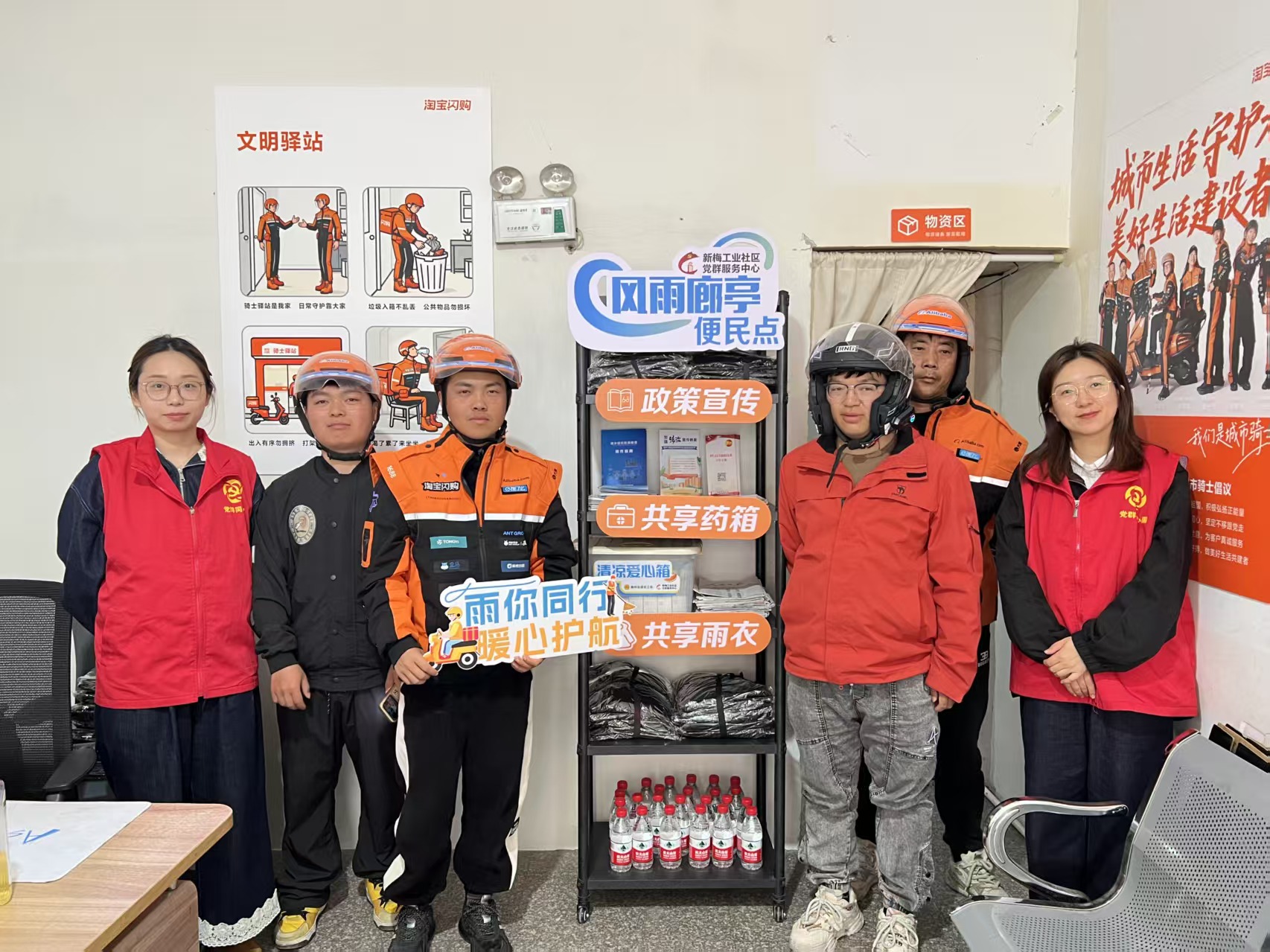 宁海一社区新打造的“风雨廊亭”便民点暖心启用 4月17日上午,梅林街道新梅工业社区“雨你同行·暖心护航”新就业群体“风雨廊亭”便民点正式启用,精准解决户外作业人员休憩、避雨等实际需求。 社区依托甬爱E家户外劳动者驿站,在新就业群体集中点位设立便民点,统一配备便民雨具、共享药箱、充电设备、暖心茶水等物资,实现随取随用、方便归还,打造常态化暖心服务空间。 “前几天刚跟社区提需要雨衣,立马就安排到位,太贴心了!”外卖员张师傅由衷点赞。小小廊亭,既是遮风挡雨的休憩站,也是便民服务的暖心站,切实补齐户外服务短板,让新就业群体感受到社区温暖,提升归属感与幸福感。 下一步,社区将以便民点为载体,持续优化服务内容、完善服务机制,做实做细新就业群体关爱工作,打造有温度的基层服务阵地。