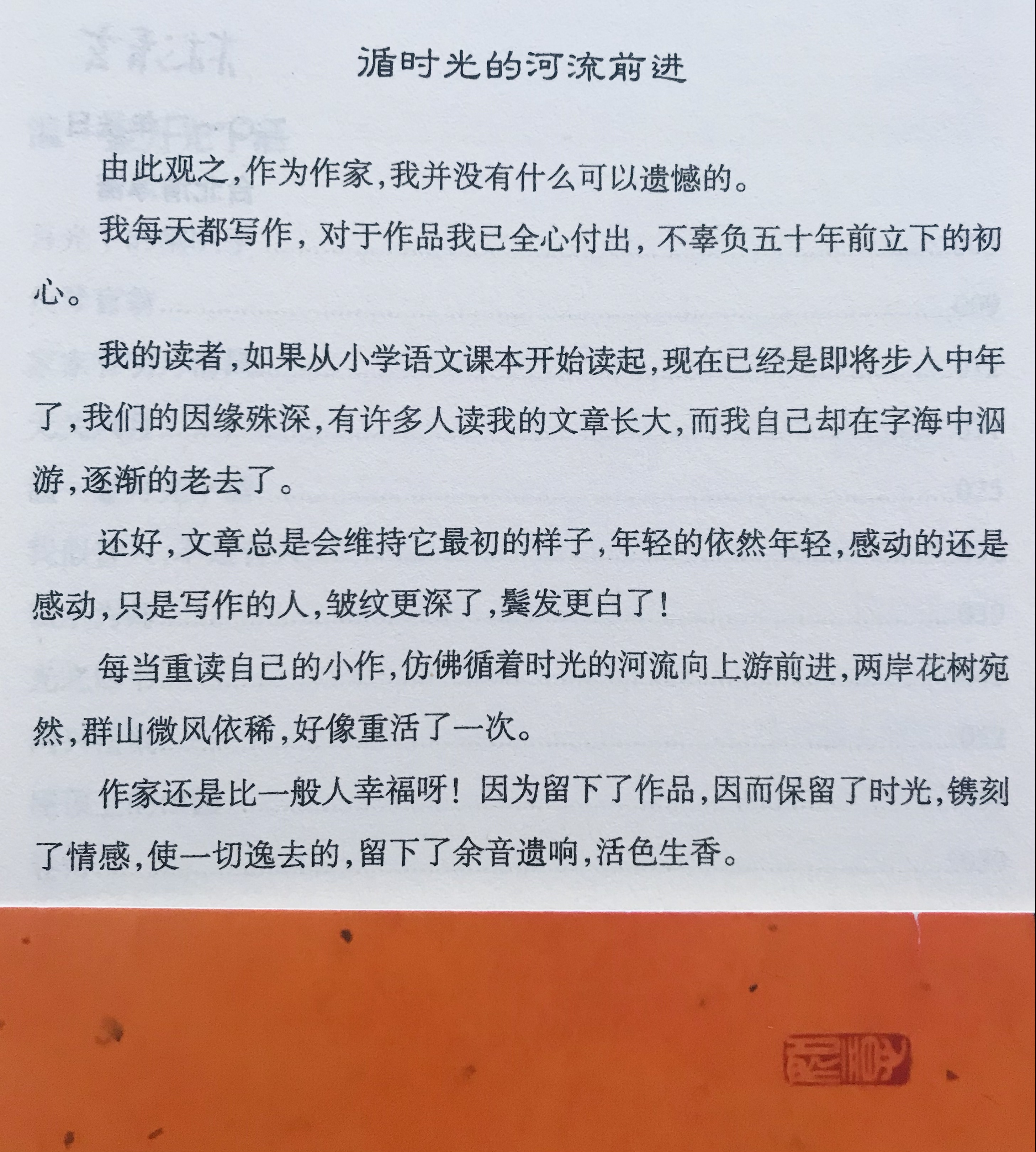 《林清玄散文精选》金句摘抄(1): 每当重读自己的小作,仿佛循着时光的河流向上游前进,两岸花树宛然,群山微风依稀,好像重活了一次。 作家还是比一般人幸福呀!因为留下了作品,因而保留了时光,镌刻了情感,使一切逸去的,留下了余音遗响,活色生香。