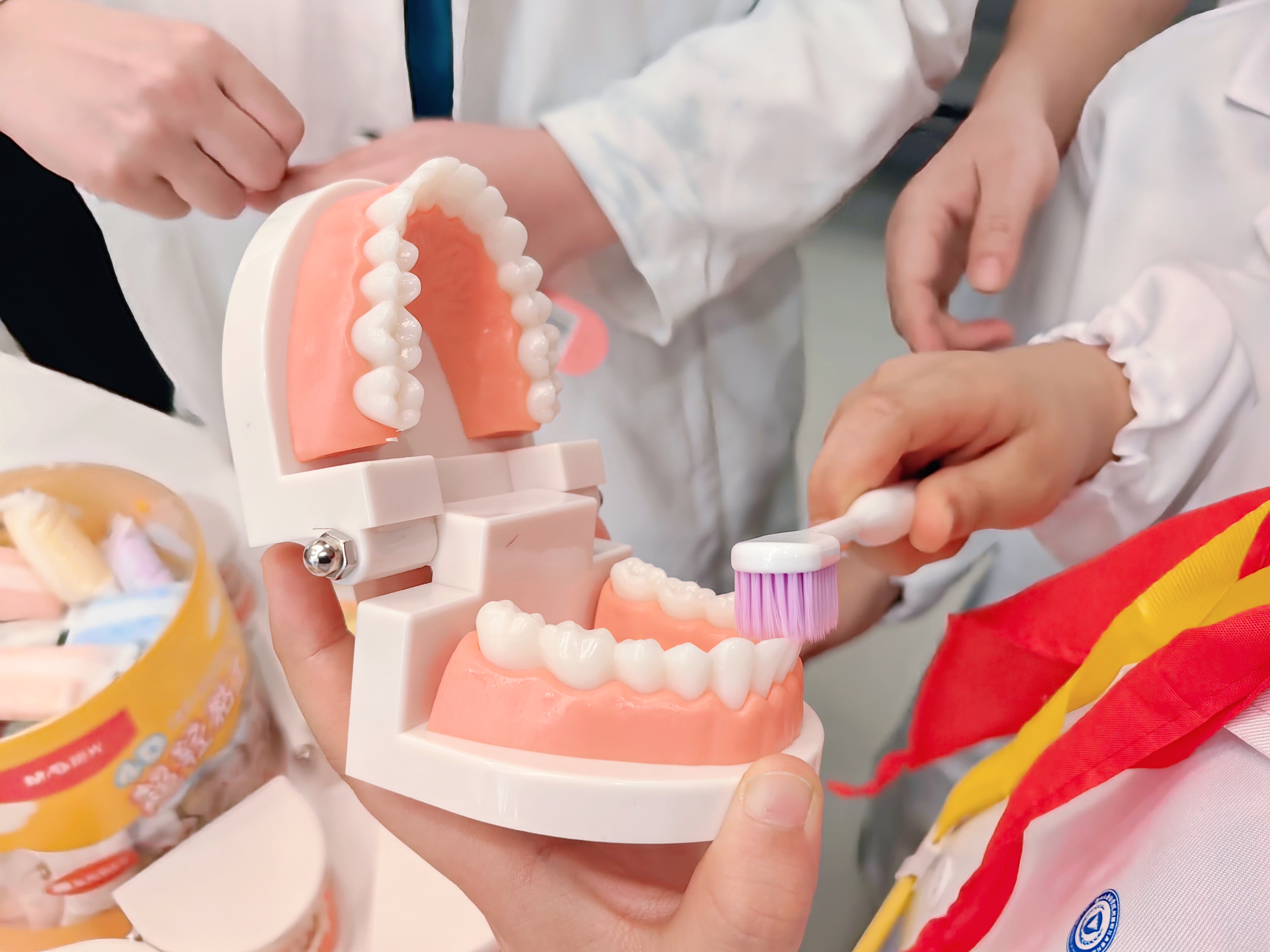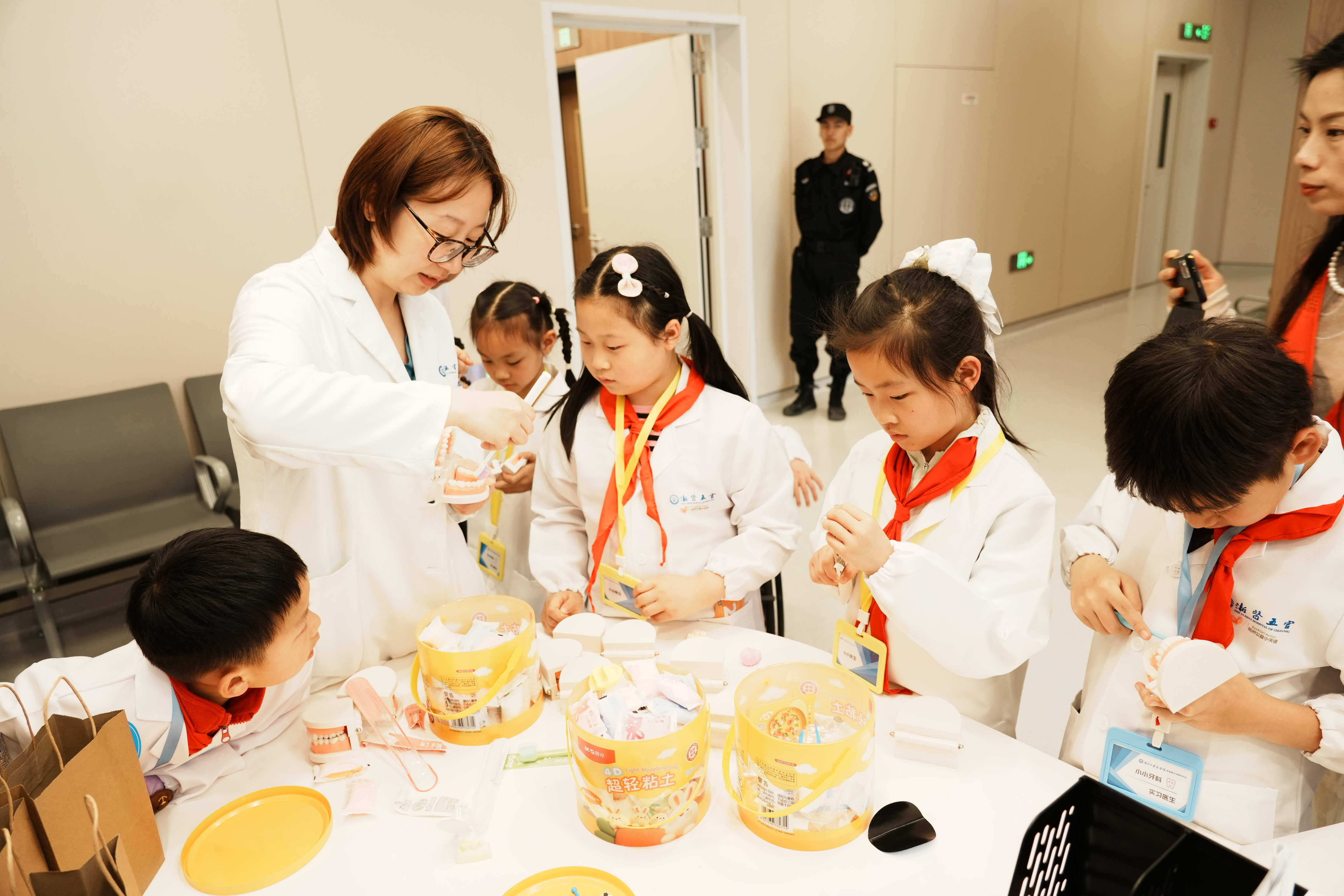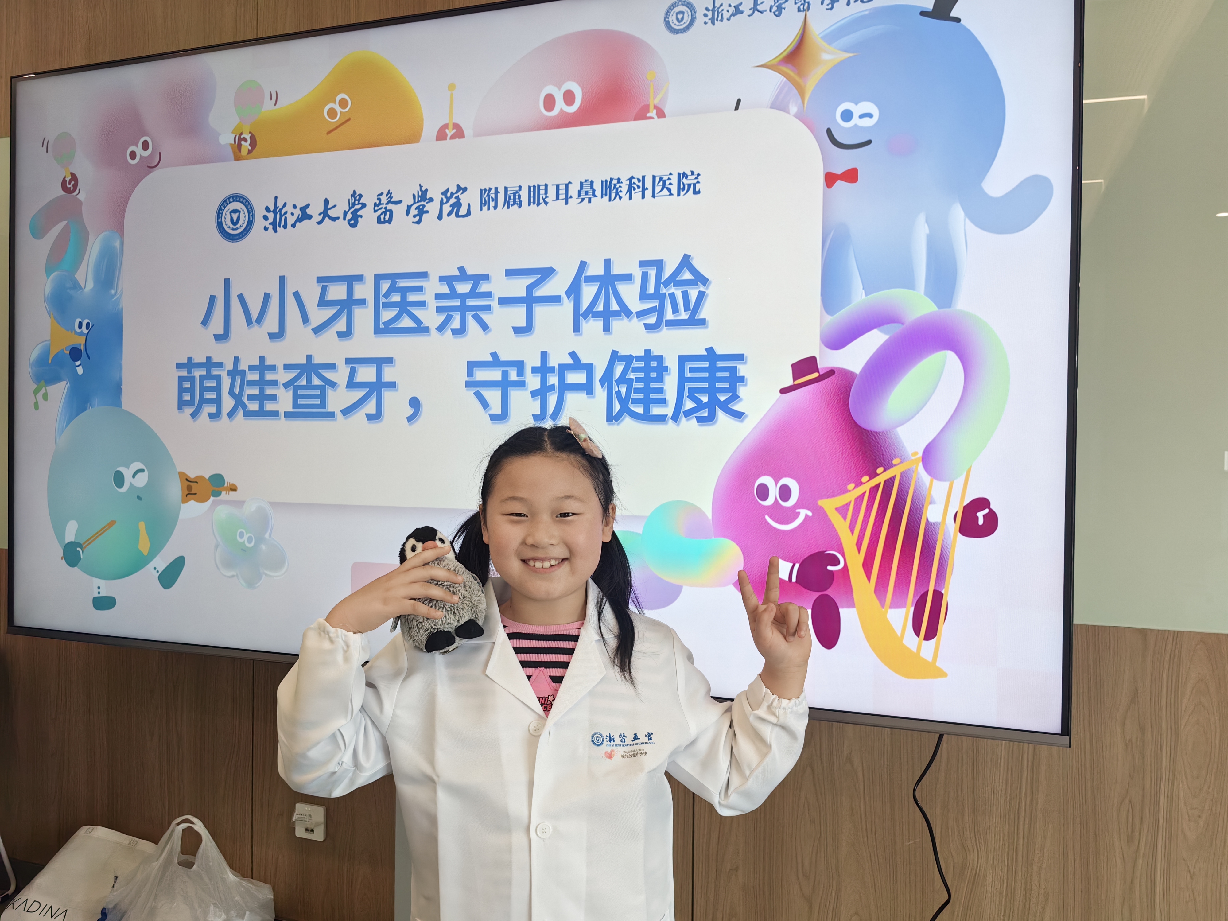 探秘口腔科·争当护牙小卫士 今天,我跟随杭州公益小天使,来到浙江大学医学院附属眼耳鼻喉科医院,参加“童心护牙 公益同行——公益小天使小小牙医亲子职业体验”活动。一走进医院,我们就穿上了向往已久的白大褂,挂上专属工作牌,瞬间摇身一变,成为了神气的小小牙医! 首先是爱牙公益小课堂。医生为我们展示了牙齿结构图,详细讲解了怎样正确保护牙齿。我们了解到,牙齿一旦生病,不仅会疼痛难忍,还会影响说话和咀嚼。课堂上,我还知道了蛀牙的治疗方法,原来牙菌斑最喜欢甜食,所以小朋友吃完糖果和甜品后,一定要及时漱口。医生还告诉我们:牙疼不用害怕,要及时到医院治疗,而且小朋友治疗牙齿时还可以边看电视边进行,一点都不可怕。最后,我们跟着医生一起庄严宣誓,承诺要好好爱护自己的牙齿。 来到五楼口腔科护士台,医生用牙齿模型教我们正确的刷牙方法:要顺着牙齿生长的方向,上下左右、里里外外仔细刷,每次至少刷够两分钟,牙齿才能洁白又健康。我们还用黏土和模具,亲手模拟了龋齿充填的操作过程。顺利通过考核后,终于到了我最期待的小小牙医上岗环节! 我今天的“病患”是妈妈。我认真地在病历表上填写她的姓名、性别和联系方式,仔细询问她的身体状况,再请妈妈躺上舒适的检查椅,打开探照灯,拿着口镜认真检查她的口腔。上上下下、里里外外检查一遍后,我发现妈妈的牙齿保护得特别好,没有蛀牙,只是牙缝有少量牙菌斑,还有两颗长歪的智齿。我大方地表扬了妈妈,并叮嘱她继续坚持好好护牙。 活动最后,专业的口腔医生也为我做了一次全面的公益口腔检查。医生说我牙缝偏大,食物残渣容易残留,建议我每天睡前用牙线清理牙缝,坚持认真刷牙两分钟,少吃甜食、饭后漱口。我认真点头答应:身为小小牙医,更要以身作则,爱护牙齿。 这次活动虽然结束了,但“小小职业大梦想”留在了我心中。爱牙护齿不只在今天,更在今后的每一天! ——杭州公益小天使 叶馨泽