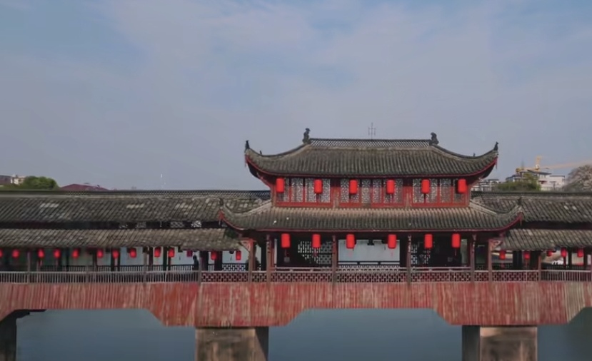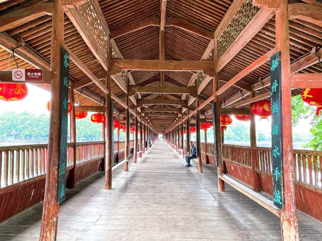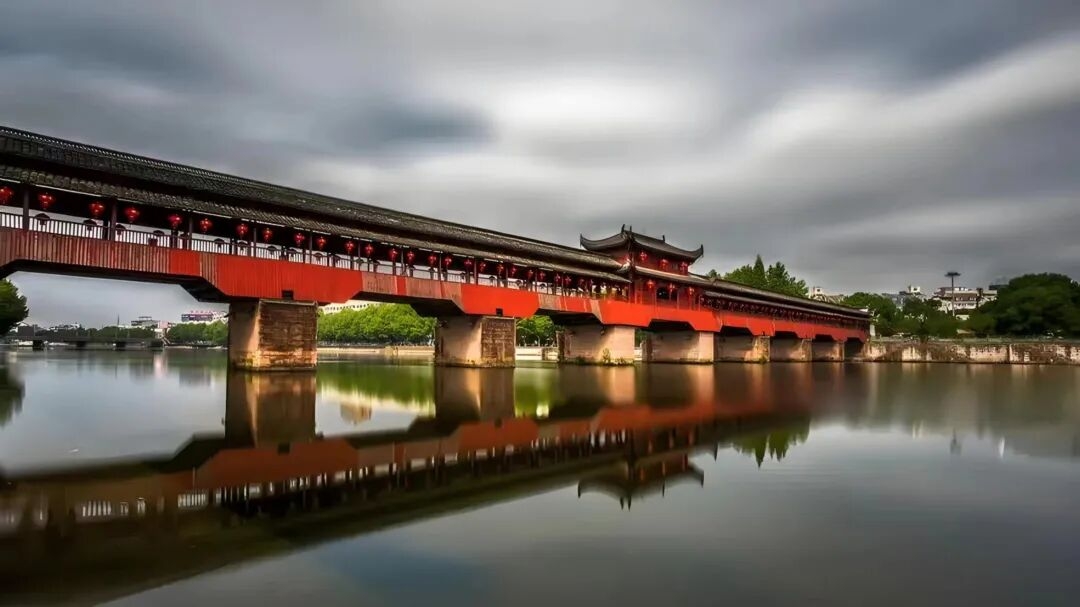 熟溪桥畔,南宋廊桥静卧水面,红灯笼轻摇,石狮守岁,一幅艳丽江南水墨,为家乡增美(选自