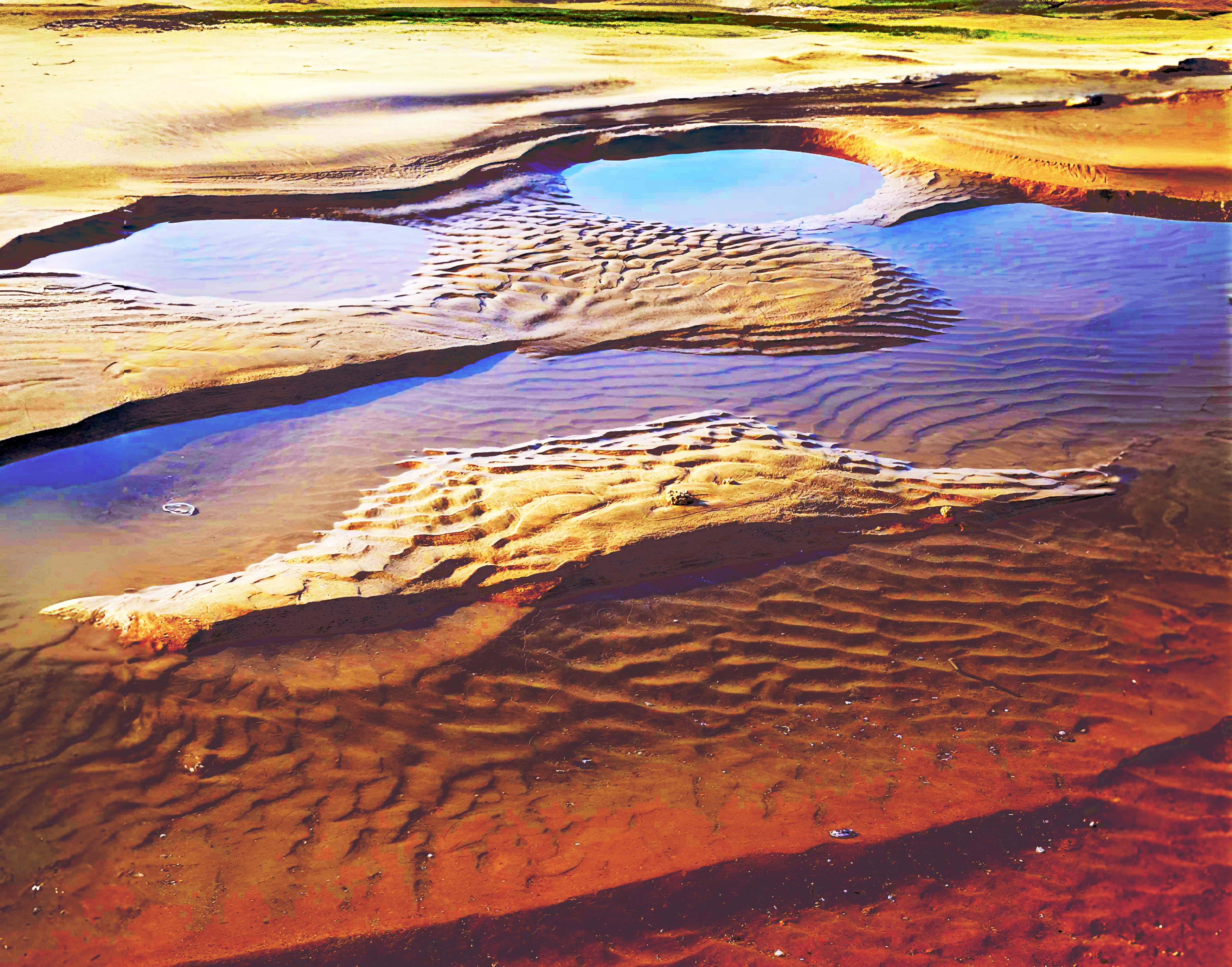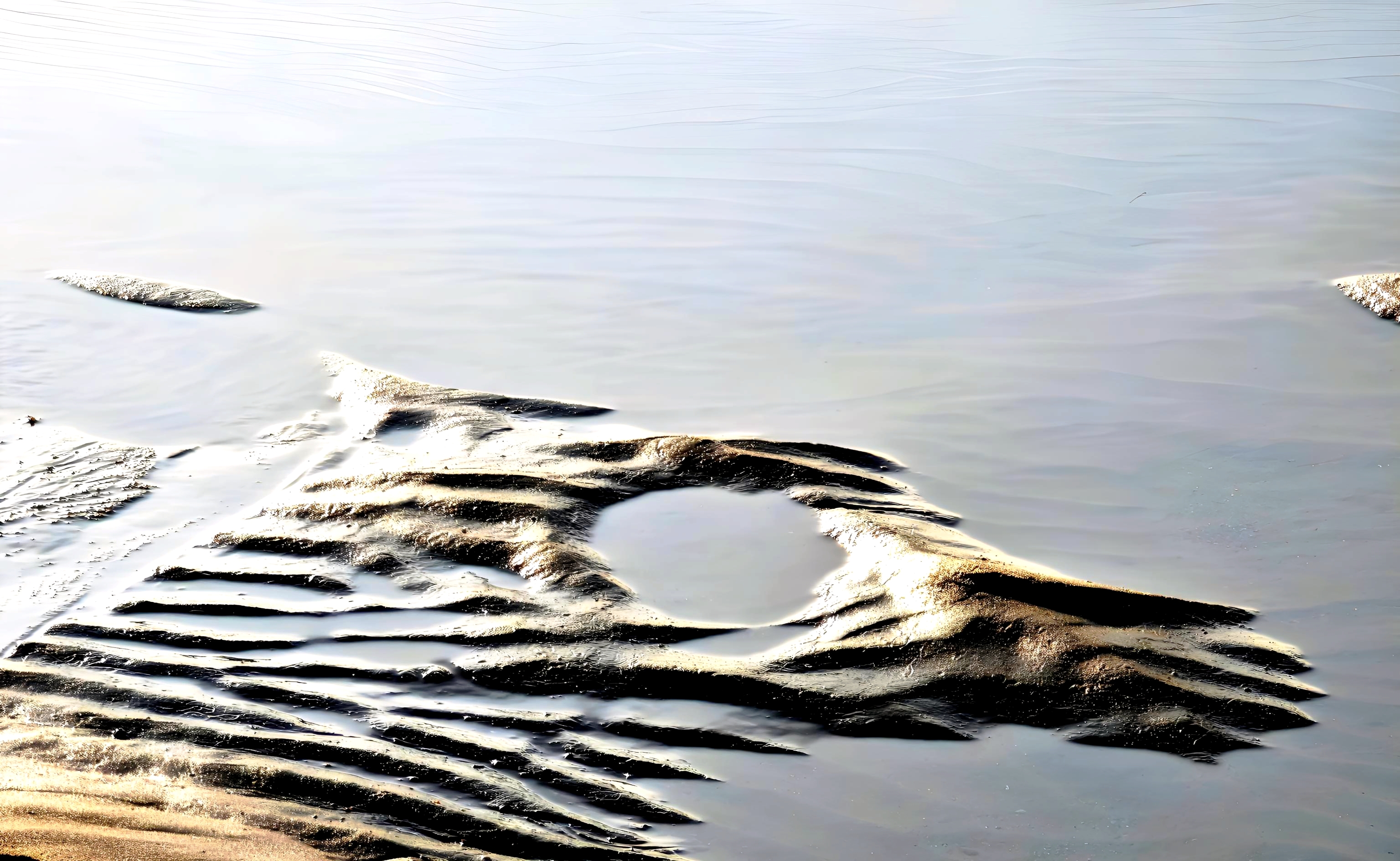 《潮汐诗画》,大海是一位神奇的画家,每天在大海的沙滩上辛勤耕耘,画出如诗如画的画卷,潮汐森林、板画、山水、相聚等等,呈现给想往大海的人们。