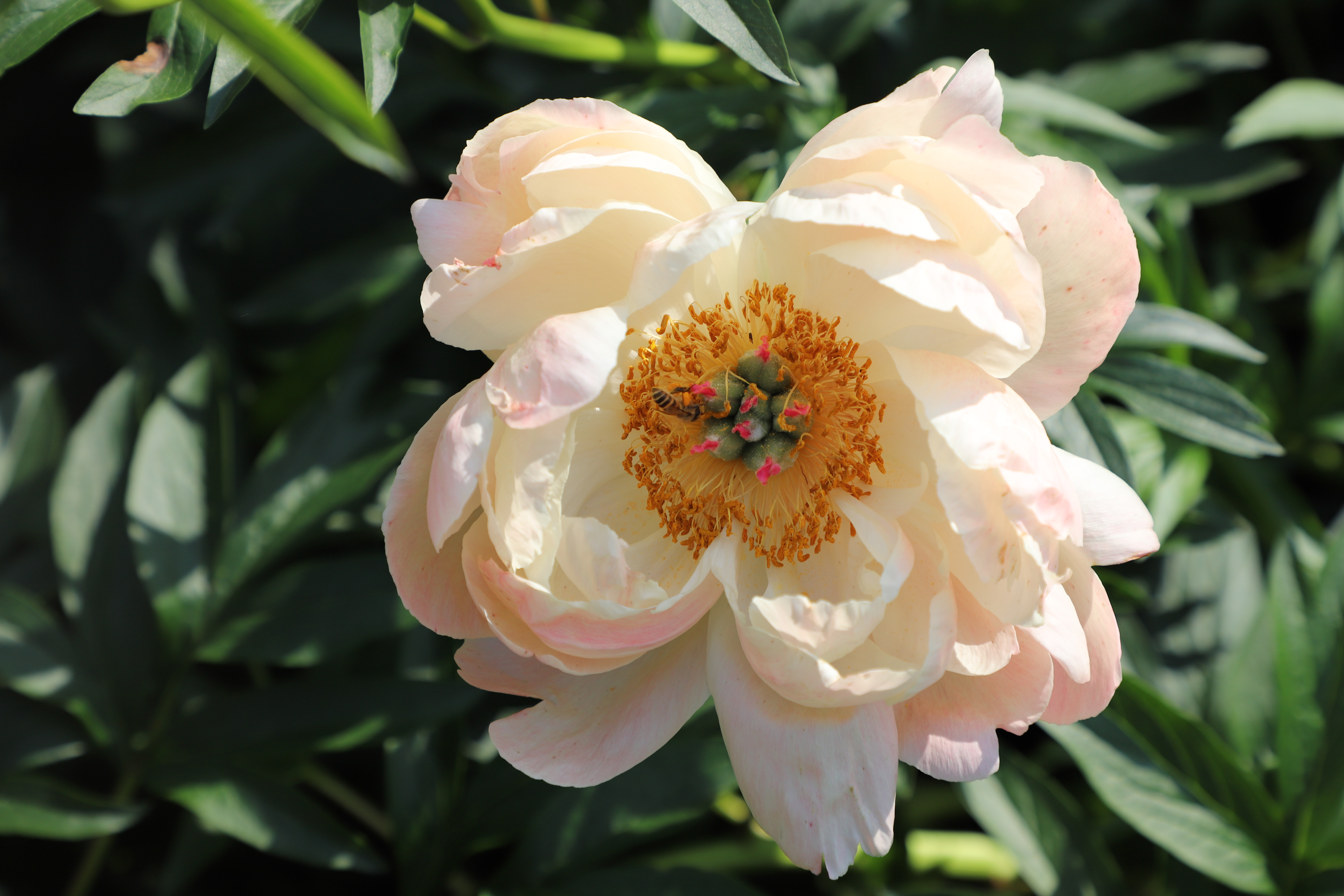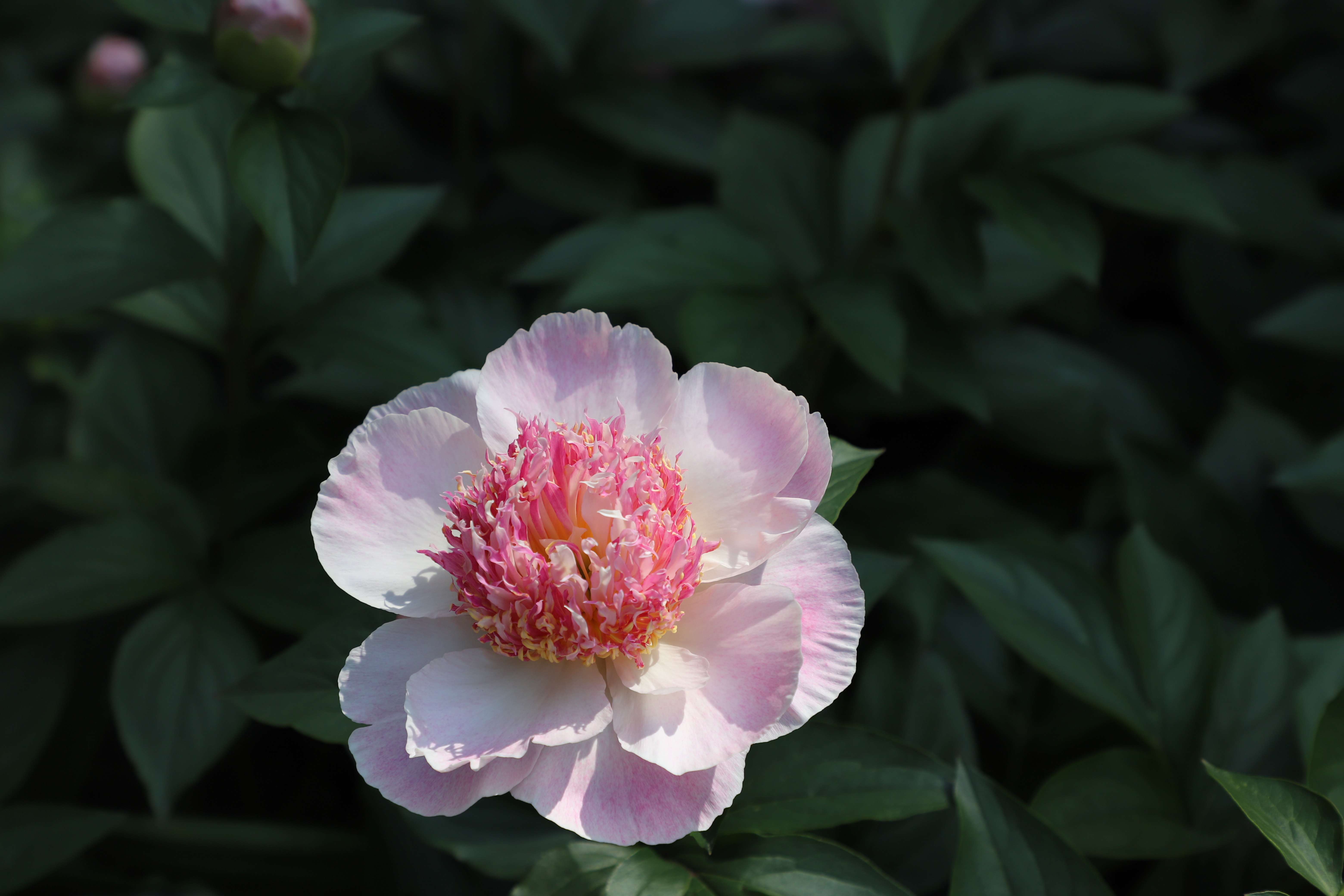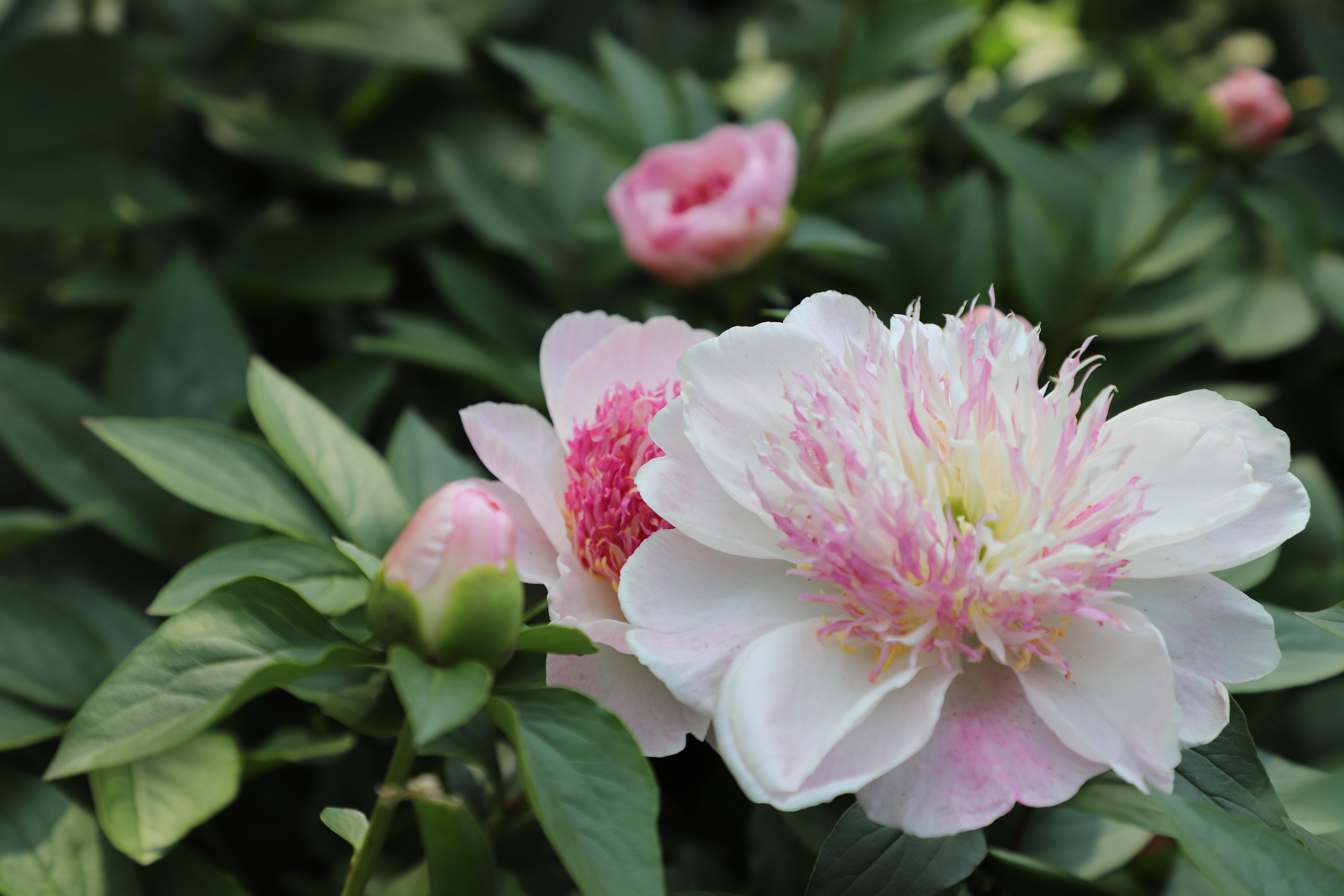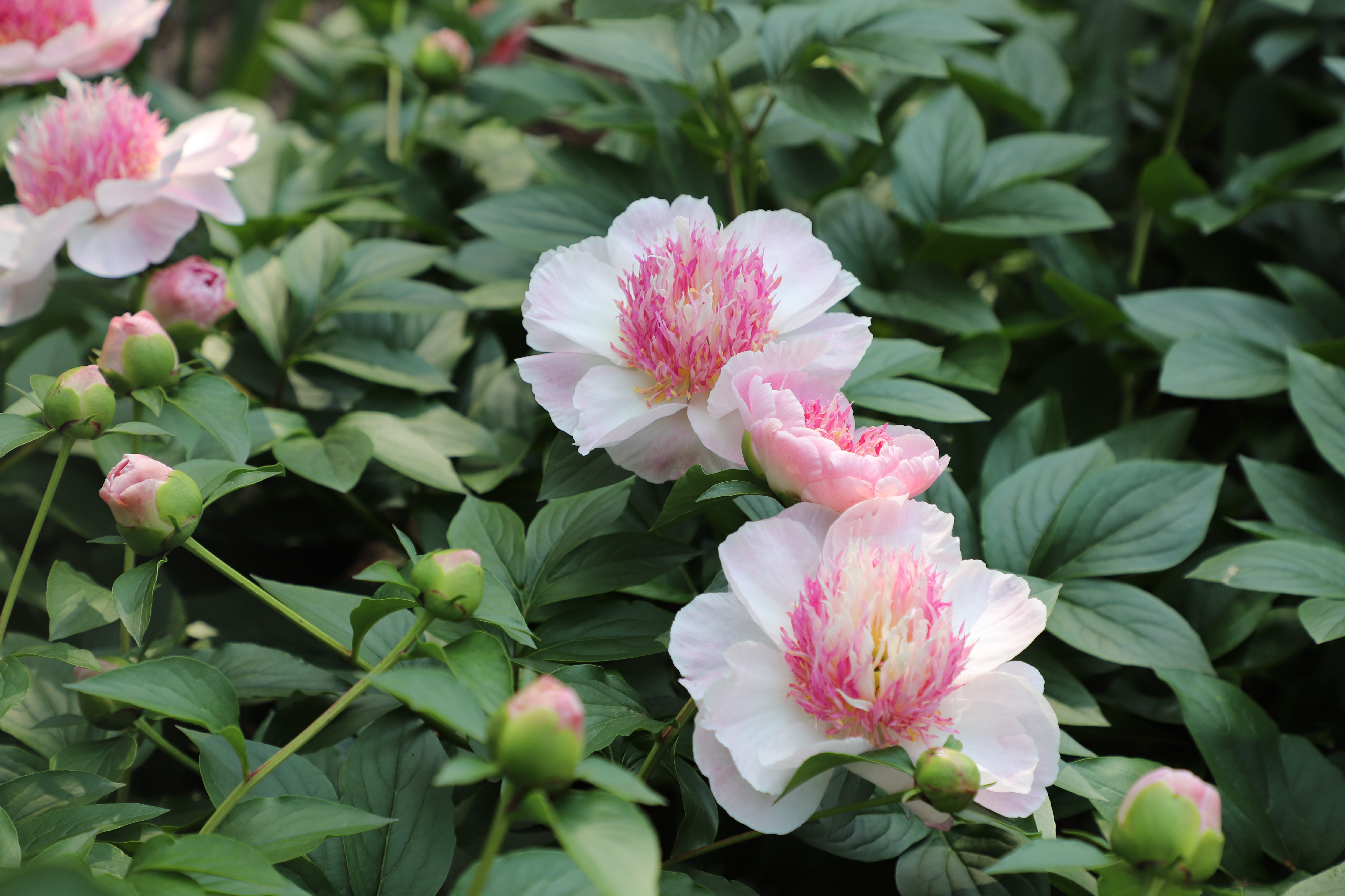 芍药花事 暮春的风,携着温软的暖意,拂过植物园里的芍药丛。这一方天地,便成了色彩的盛宴,芬芳的秘境。 你看那芍药,像是被春神打翻的调色盘染就。浅粉的,如少女颊边的绯云,晕染开朦胧的温柔;红粉的,似天边燃着的晚霞,裹挟着热烈的梦;还有那乳白的,宛若凝霜的玉盏,盛着月光的清辉。花瓣层层叠叠,如丝绒般柔软,又似绫罗般轻盈,在枝头舒展成饱满的花盏,将金黄的花蕊小心翼翼地托在中央,像托着一捧细碎的阳光。 有的花朵肆意绽放,花瓣向四周舒展,似在与风相拥,与光对舞,每一片都张扬着生命的蓬勃;有的半掩芳容,花瓣微微收拢,如羞怯的佳人,只肯露出半张娇颜,却更添了几分神秘的韵致;更有那青涩的花苞,圆润饱满,裹着淡淡的绿意,像攥紧的小拳头,藏着对绽放的渴望,仿佛下一刻就会挣开束缚,迸发出惊艳的美。 绿叶是芍药的底色,它们簇拥着花朵,叶片宽大而鲜绿,脉络清晰如画,在阳光下泛着油亮的光泽。微风掠过,叶浪翻涌,花朵便在绿涛中摇曳生姿,似在奏响一曲无声的乐章。光影在叶与花间流转,斑驳的痕迹落在花瓣上,为这娇艳的色彩又添了几分朦胧的诗意。 置身其中,鼻尖萦绕的是芍药特有的甜香,不浓烈,却悠长,像一缕温柔的丝,缠绕在呼吸之间,让人沉醉。耳边是风拂叶梢的沙沙声,偶有蜜蜂嗡嗡,似在诉说着花蜜的甜美。这一刻,时光仿佛慢了下来,心也跟着静了,只余下满目的绚烂与满心的欢喜,在这一方芍药的小天地里,与春同醉,与花共情。 原来,最美的春,不仅在枝头的繁花,更在这一草一木、一花一叶的温柔相拥里,在时光缓缓流淌的静谧里,等我们悄然邂逅,静静珍藏。(摄于宁波植物园)
