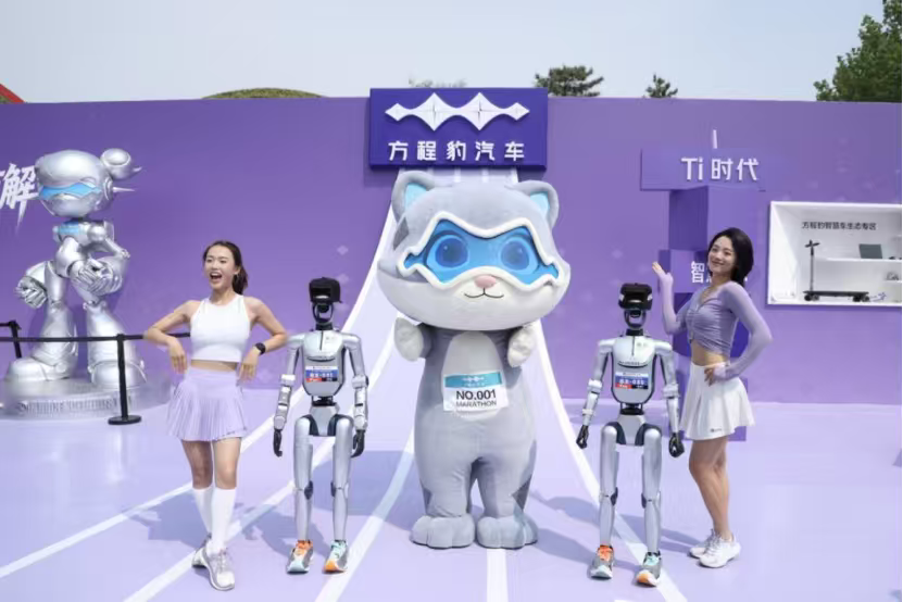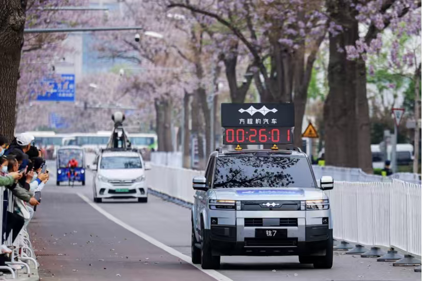 敢出发就有解!方程豹守护全球首次机器人马拉松 世界上最与众不同的马拉松,如今真实上演。方程豹凭硬核实力护航。2026 年 4 月 19 日,全球首场人形机器人半程马拉松在北京亦庄正式开赛,科幻电影里人机同场竞技的画面照进现实。作为官方护航车辆,方程豹全程守护赛场,为赛事安全稳定运行保驾护航。作为比亚迪旗下个性化汽车品牌,方程豹与这场极具创新性的赛事相得益彰。赛事现场人形机器人形态各异、各具特色,荣耀战队自研机器人 “闪电” 更是突破极限,以优异成绩打破人类半程马拉松世界纪录,刷新全球人形机器人竞速标杆。 复杂多变的赛道考验着机器人综合性能,也彰显了双方共有的科技探索精神。新能源汽车与人形机器人跨界携手,既是中国新质生产力的精彩展示,也共同擘画未来人机共生、智慧出行的全新图景。未来方程豹也将持续以科技赋能,探索更多出行可能。 #今年机器人跑半马也太快了# 方程豹汽车护航机器人马拉松