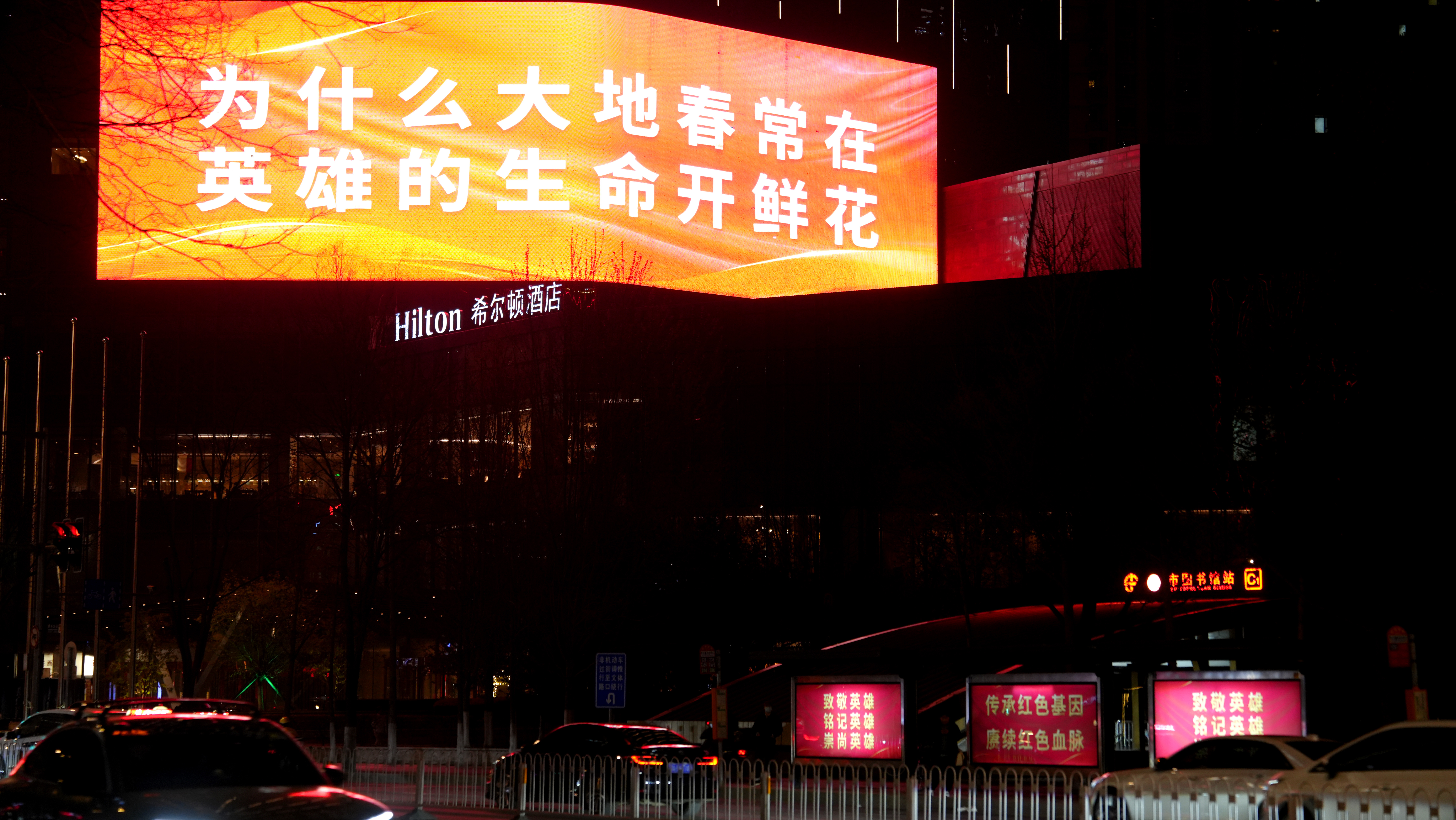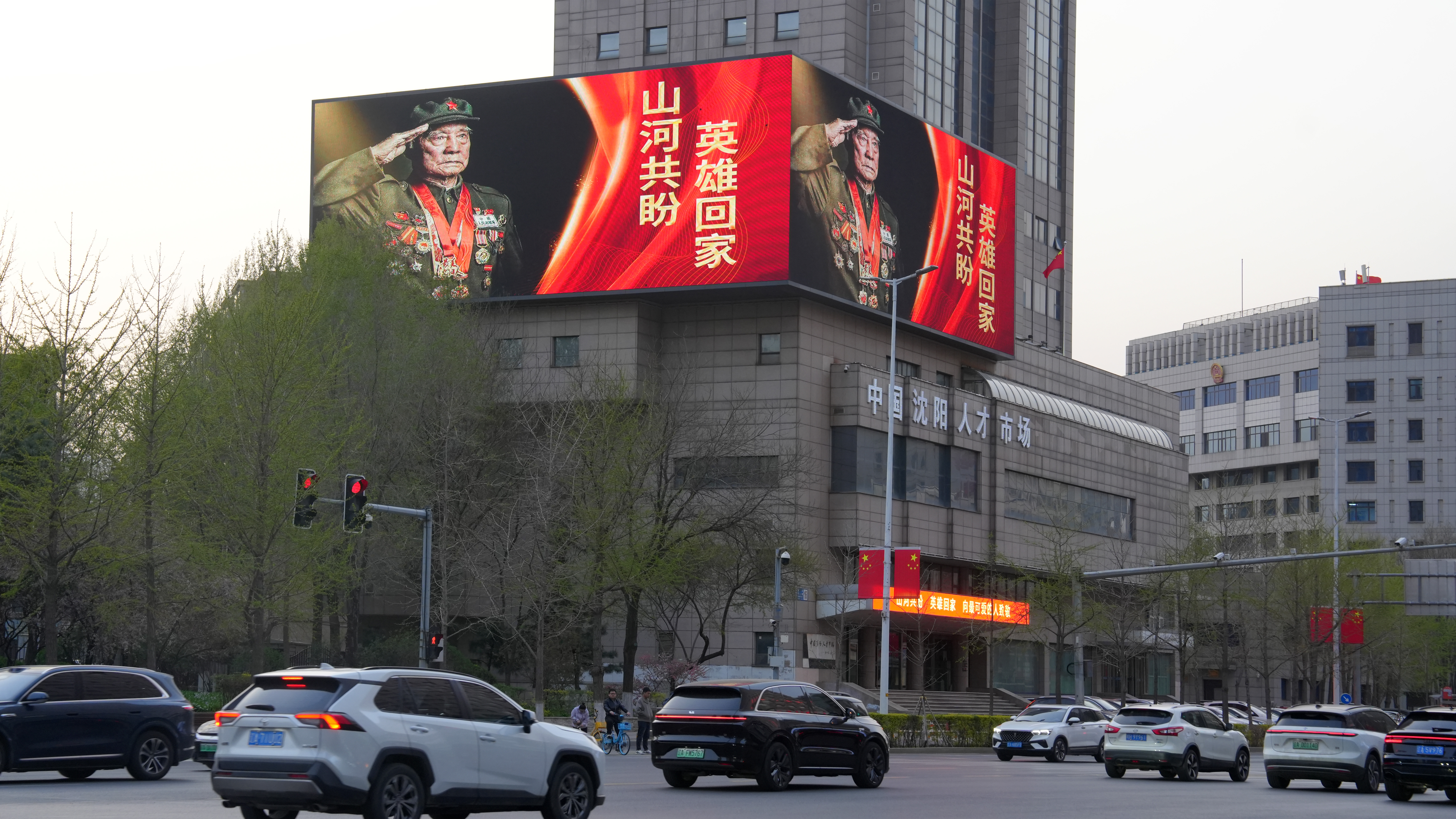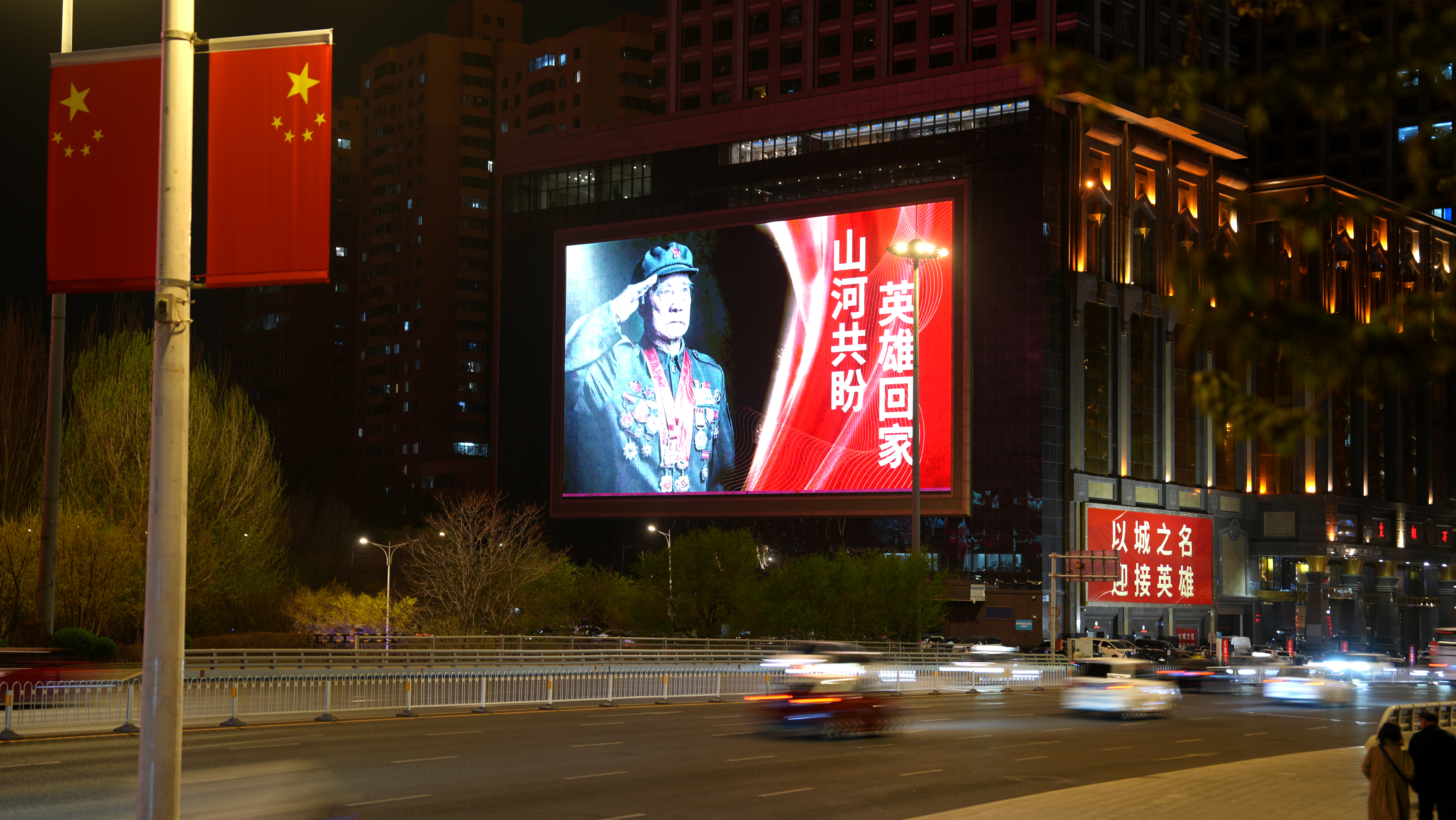 沈阳挂满红旗 点亮大屏 迎接英雄回家 4月21日,沈阳市城区核心路段、商业楼宇、城市地标等多处户外大屏同步点亮,循环播放致敬英雄的画面。“山河共盼 英雄回家”“出征寒风冽 归来春花开”“山河记得您 我们记得您”等暖心标语轮番呈现。主次干道两侧整齐悬挂国旗,红色元素遍布街巷,勾勒出庄重肃穆的城市底色。整座城市以庄重仪式与最高礼遇,静候第十三批在韩中国人民志愿军烈士遗骸魂归故里。