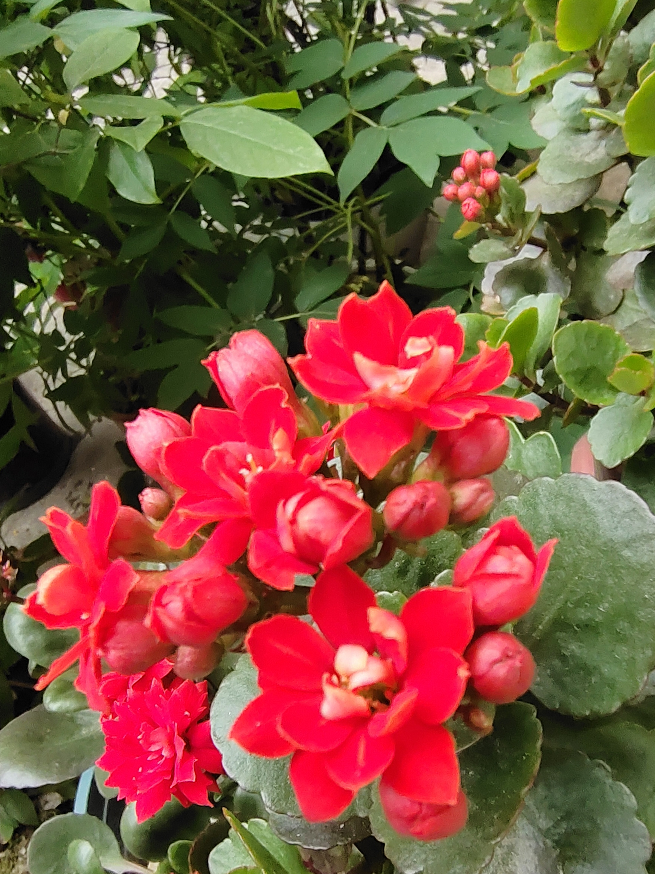 窗台小红灯笼亮啦,长寿花蹭蹭冒苞,绿叶托着红焰。