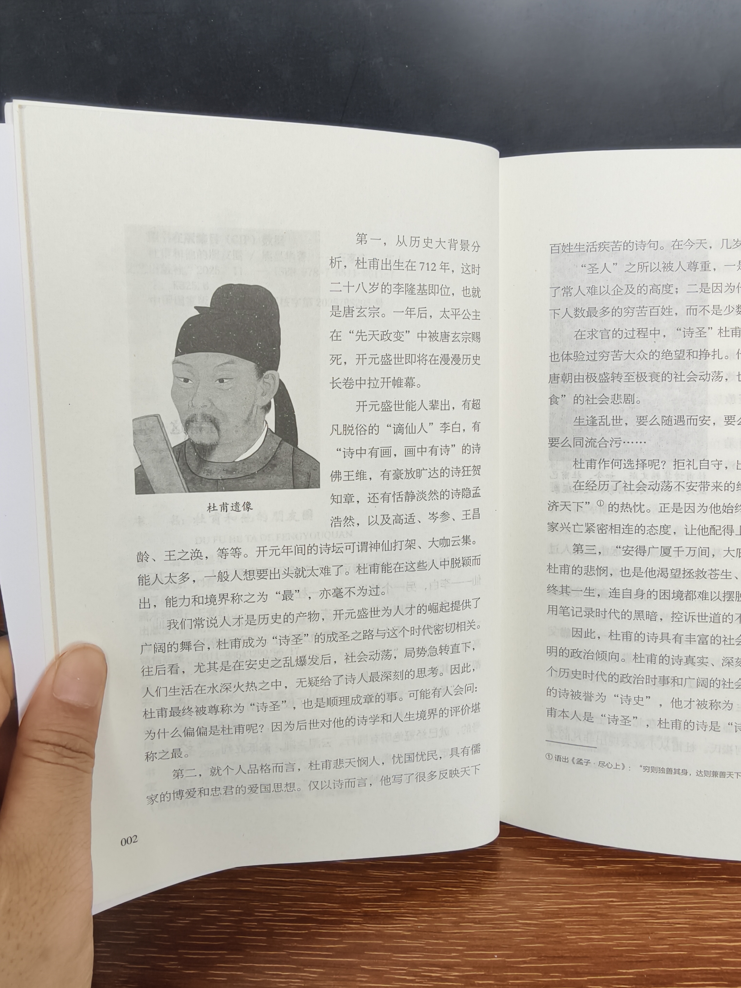 原来“诗圣”杜甫,也曾是个靠朋友接济的普通人✨ 提起杜甫,我从前的印象还停留在课本里那句“安得广厦千万间,大庇天下寒士俱欢颜”,总觉得他是一生穷苦潦倒、忧国忧民的圣人,离我们很远。直到读完《杜甫和他的朋友圈》,我才第一次觉得,原来杜甫也可以这么“接地气”。 作者熊显华用很轻松的笔触,把杜甫从神坛拉回人间。这本书不只是讲诗,更讲他的一生:从显赫的家族出身,到青年时裘马轻狂,再到安史之乱后的颠沛流离,也讲他和李白、高适、严武这些朋友的交往,让我第一次看清,杜甫的“诗圣”之名,从来不是凭空而来。 书里有句话戳到我了:“没有天生的诗圣,只有不肯低头的凡人。” 是啊,原来他不是一开始就苦哈哈的,他也曾是出身名门的世家子弟,却在乱世里被命运反复捶打,可就算自己都吃不饱,他依然写下了“朱门酒肉臭,路有冻死骨”。这份刻在骨子里的温柔和倔强,才是他能成为“诗圣”的原因。 还有一句说“他的生活跟我们普通人没什么两样,三十岁前靠家里,三十岁后靠朋友接济”。看到这里我突然有点鼻酸,原来我们眼中高高在上的诗圣,也曾和我们一样,在生活里狼狈过、窘迫过。可他没有抱怨命运,反而把这些苦难都酿成了诗,也活成了我们都敬佩的样子。 以前读唐诗,只觉得杜甫的诗沉郁顿挫,却不懂他字里行间的重量。现在才明白,那些诗里写的,都是他亲眼见过的人间疾苦,也是他不肯放弃的温柔。如果你也和我一样,对杜甫的印象只停留在课本里,真的可以读读这本书,你会发现,他不是高高在上的圣人,只是一个在乱世里,依然守住初心的普通人。