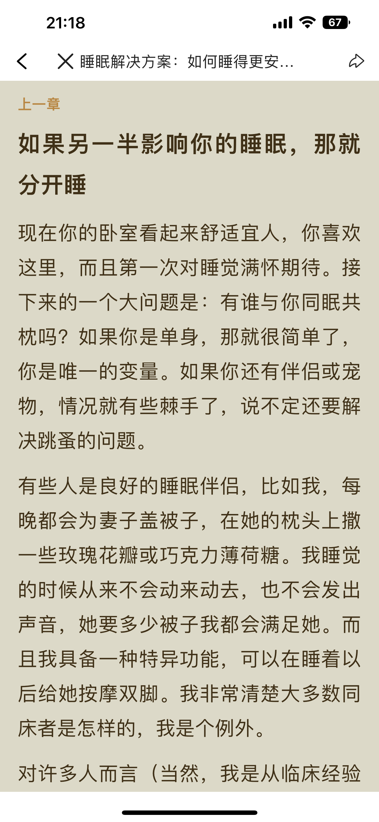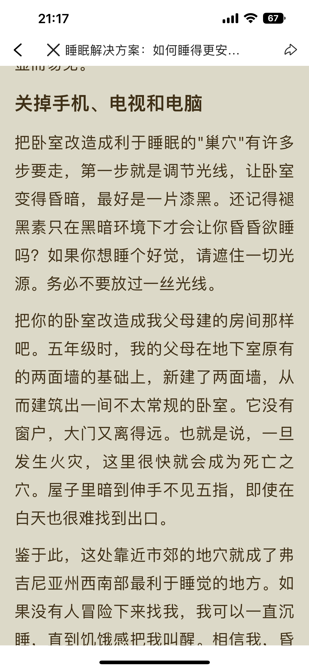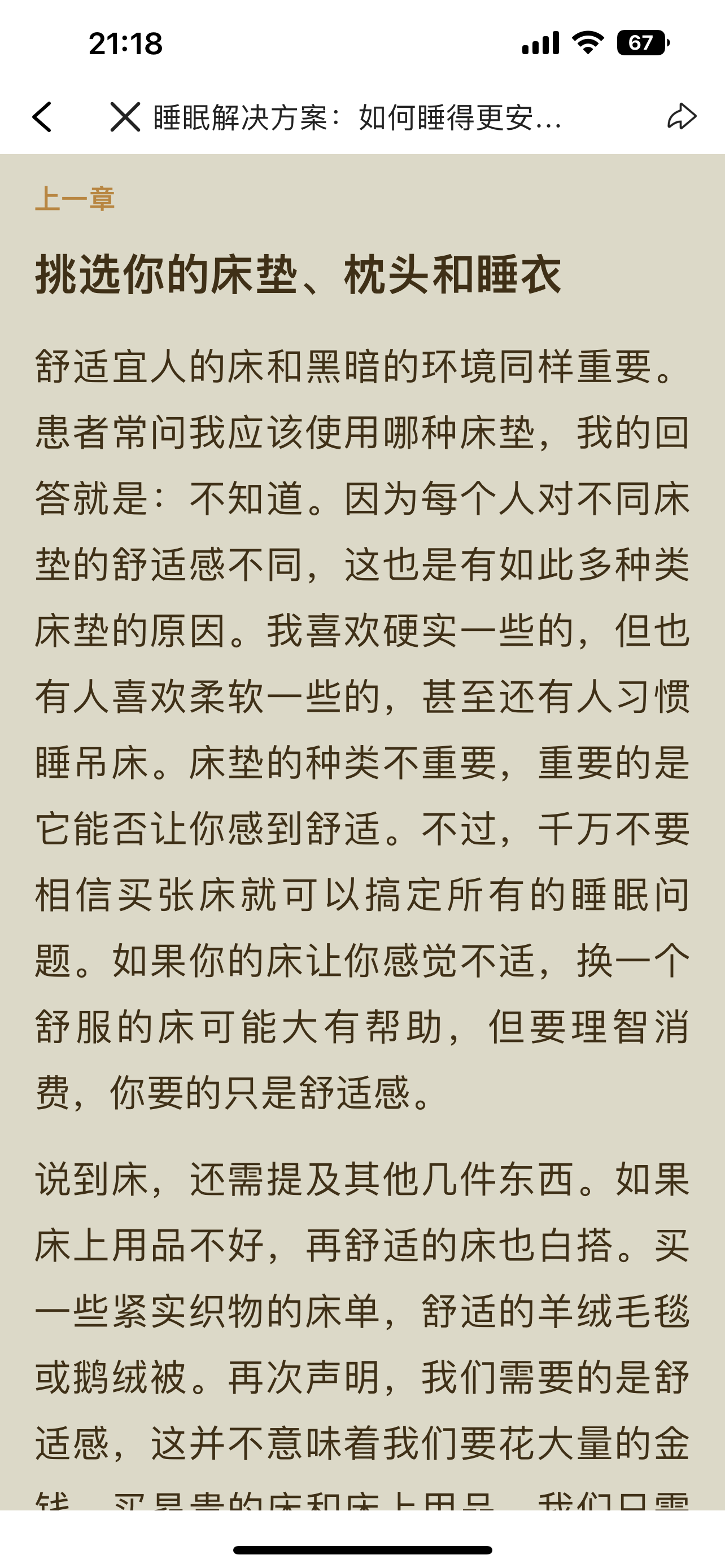 1. 固定作息时间 每天在同一时间睡觉和起床(即使周末),帮助身体建立稳定的生物钟。不要“补觉”或睡懒觉,这会打乱节奏。 2. 优化睡前1小时 · 调暗灯光,避免手机、电脑等电子屏幕的蓝光(它会抑制褪黑素分泌) · 不做激烈运动、不处理工作或争论性话题 · 改为轻柔拉伸、听白噪音、看书或冥想 3. 打造适合睡眠的环境 · 卧室保持黑暗、安静、凉爽(18-22℃为宜) · 床垫和枕头要支撑舒适,被子厚度适中 · 尽量让床只用于睡觉和亲密关系,不在床上吃饭、办公 4. 合理安排日间行为 · 早晨晒20-30分钟自然光,尤其阴天也有效 · 下午3点后不喝咖啡、浓茶或含咖啡因饮料 · 晚饭别吃太晚或太饱,睡前2小时不大量进食 · 如午睡,控制在20-30分钟内,不超过下午3点 5. 管理睡前思绪 如果躺下后脑子停不下来,可以: · 起床到另一个房间坐一会儿,等有困意再回床上 · 简单写下待办清单或烦恼,清空大脑 · 不必强求“睡着”,放松本身也有效果