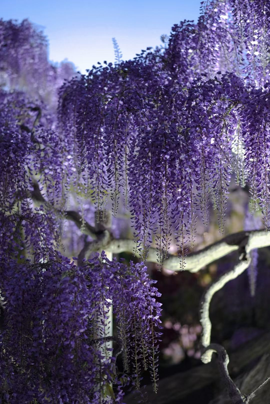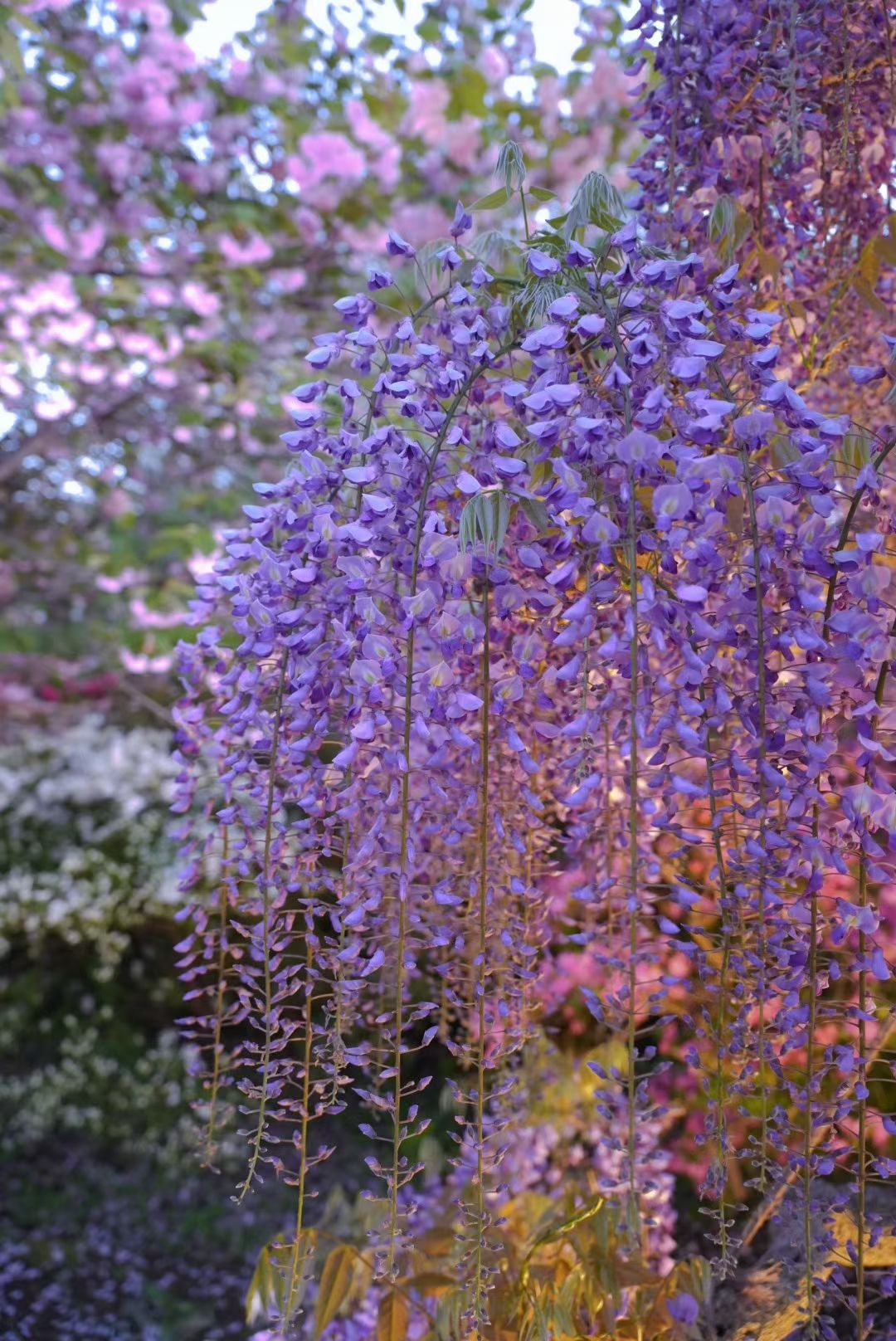 春风拂过,紫藤花便顺着廊架轻轻垂下,如紫雾缭绕,似流云轻垂。一串串淡紫温柔地簇拥着,风一吹便簌簌落下,像撒了一地温柔的星光。花香清浅缠绵,裹着春日独有的温柔,抬眼望去,满眼都是浪漫的紫,连时光都仿佛慢了下来,醉在这如梦似幻的花瀑里……