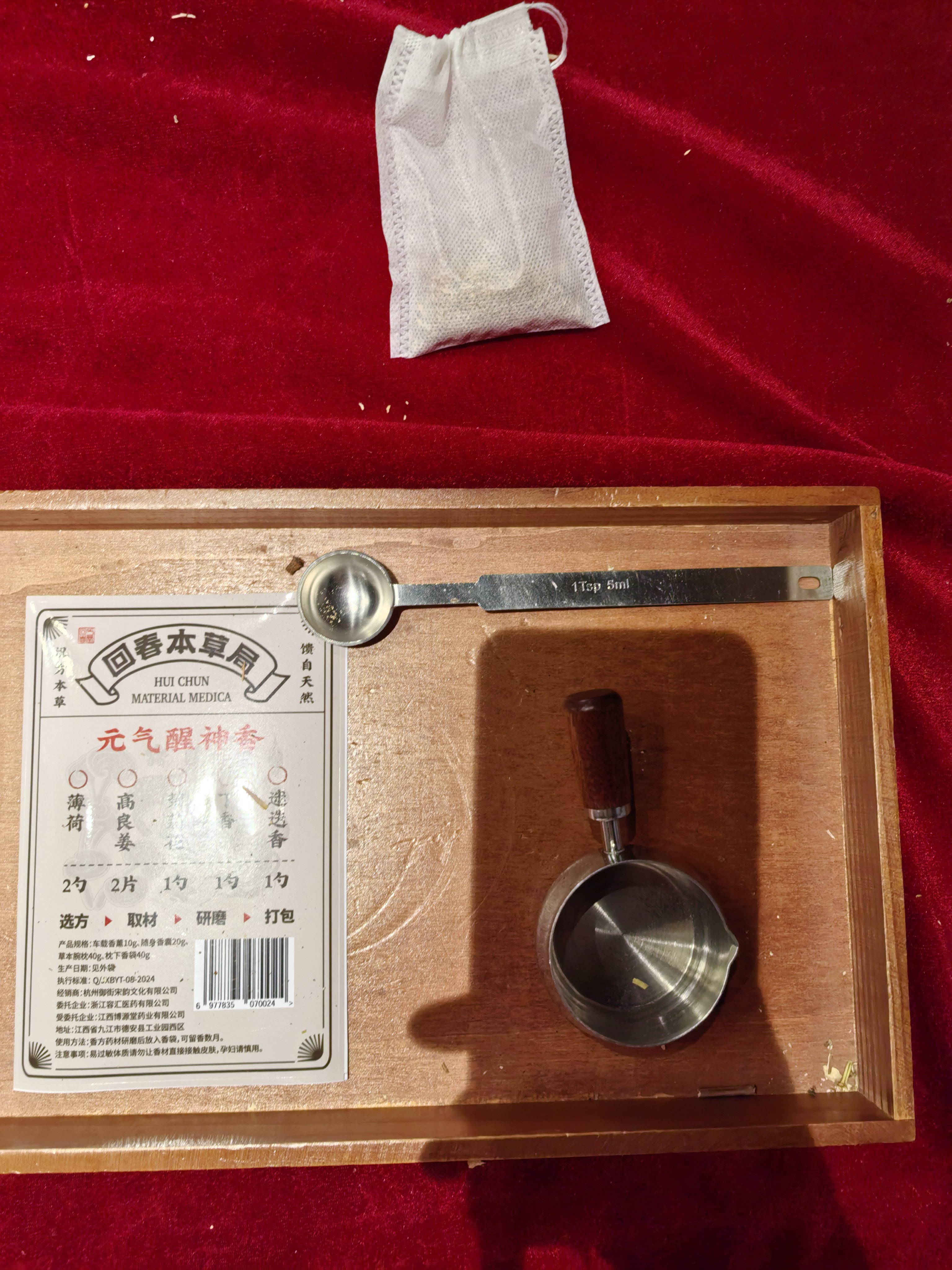 今天在方回春堂体验了做香囊的系列流程:抓药材—把药材捣得粉碎—将加工完成的药材装入白色袋中香囊就做完啦。
