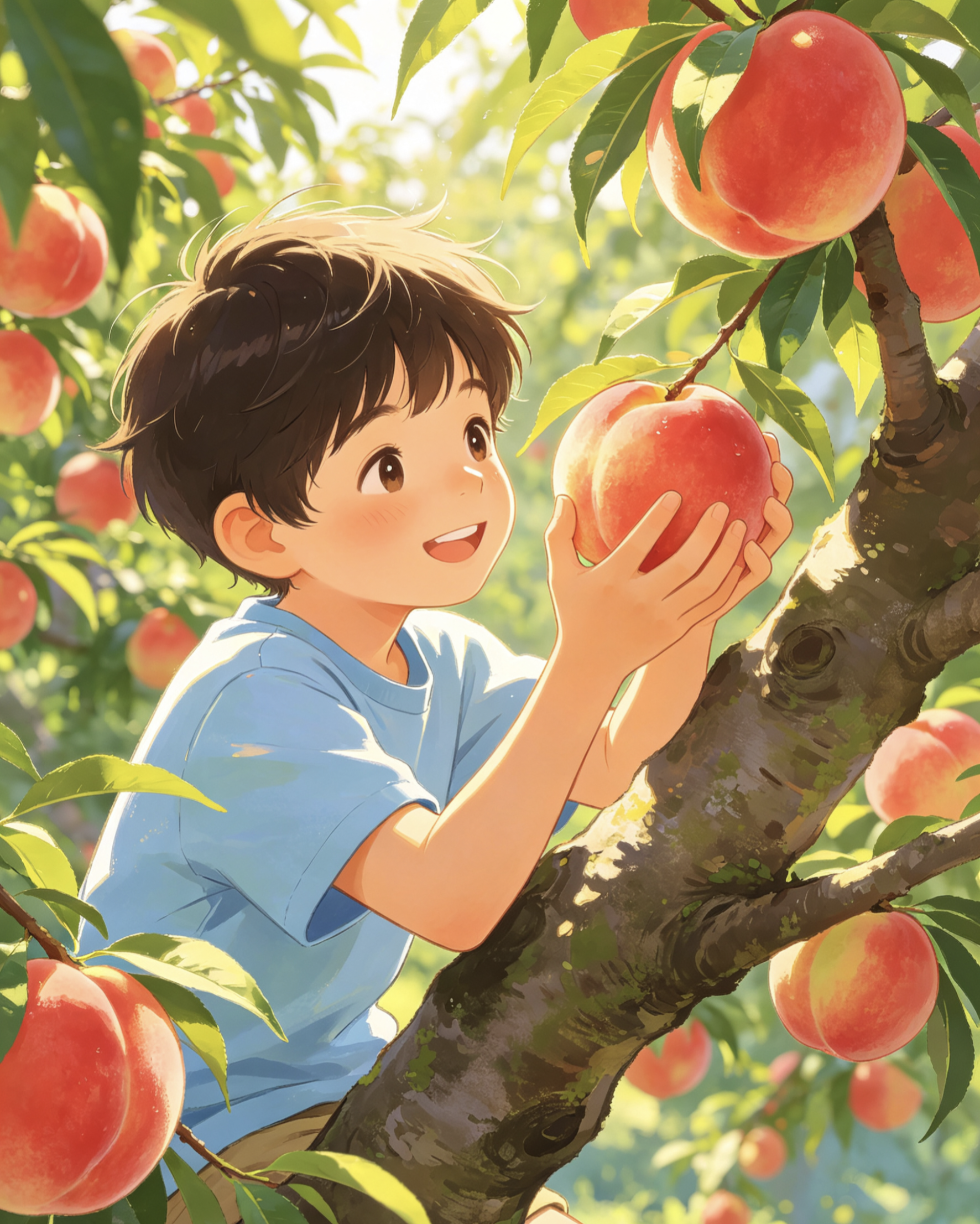 【诗画旅途】桃月溯溪行 温州市龙湾区第一小学龙祥校区 五(2)班 陈可 指导师:欧美 那个八月的清晨,阳光像融化的蜜糖,洒满通往海珍阿姨家的乡间小路。汽车驶过最后一道山梁,忽然,整片山谷扑进眼帘。那不是想象中的绿,而是一种沸腾的、欢唱的绿,在每一片桃叶上跳跃。 “看!咱们的桃园!”海珍阿姨站在路口招手,身后的桃树弯着腰,枝头坠满红扑扑的果实,每个桃子都像一盏小灯笼,把夏天的甜密写在脸上。 我冲进桃林,立刻被果香包围。那香气不是单一的味道,而是青草的清冽、桃子的蜜甜、泥土的醇厚交织成的网,网住了整个童年暑假。表哥已经爬上最高的那棵树,大喊:“这个比你的手还大!”他摘下的桃子确实惊人,粉红的尖儿,淡黄的身子,绒毛在阳光下闪着银光,放在掌心沉甸甸的,果真比我的手掌还要大上一圈。 但真正的魔法发生在夜晚。 夜幕如蓝丝绒般垂下时,海珍阿姨递给我们手电筒和抄网:“走,带你们找溪里的星星去!”溪水在黑暗中叮咚作响,手电光柱劈开夜色,照见一个完全不同的世界。水底的石头上,小鱼小虾竟然真的像坠落的星星,在手电照射下反射出银亮的光。它们一动不动,仿佛被光催眠了。 “快!”爸爸低声催促。我屏住呼吸,将抄网缓缓探入水中。在网兜触底的那一刻猛地一舀,水花四溅中,三四条透明的小鱼和数只小虾在网里蹦跳,每一只都像是用水晶雕成的艺术品。小虾的触须比头发还细,小鱼的眼睛是两个极小的黑点,透过它们近乎透明的身体,能看见月光在流动。 最难忘的是烹饪的时刻。灶膛里的火苗舔着锅底,油在铁锅里唱起滋滋的歌。妈妈将裹了薄薄面粉的鱼虾滑入油锅,瞬间爆发出惊人的香气,那是山野最直接的馈赠,混合着溪水的清甜和桃木柴火的焦香。金黄色的油炸鱼虾出锅时,整个厨房都明亮起来。 咬下去的刹那,先是极致的酥脆,然后是难以置信的鲜甜。小虾在齿间轻轻爆开,小鱼则化作满口春风。窗外,桃林在夜风中沙沙作响,仿佛也在分享我们的盛宴。 那个夜晚,我枕着溪声入眠时忽然明白:最美的风景不是看了多少奇观,而是在溪水的凉意漫过脚踝时,在油锅的香气弥漫灶间时,在桃子的汁水顺着嘴角流下时,我们真正地活着,与天地万物共享着同一个甜蜜的呼吸。