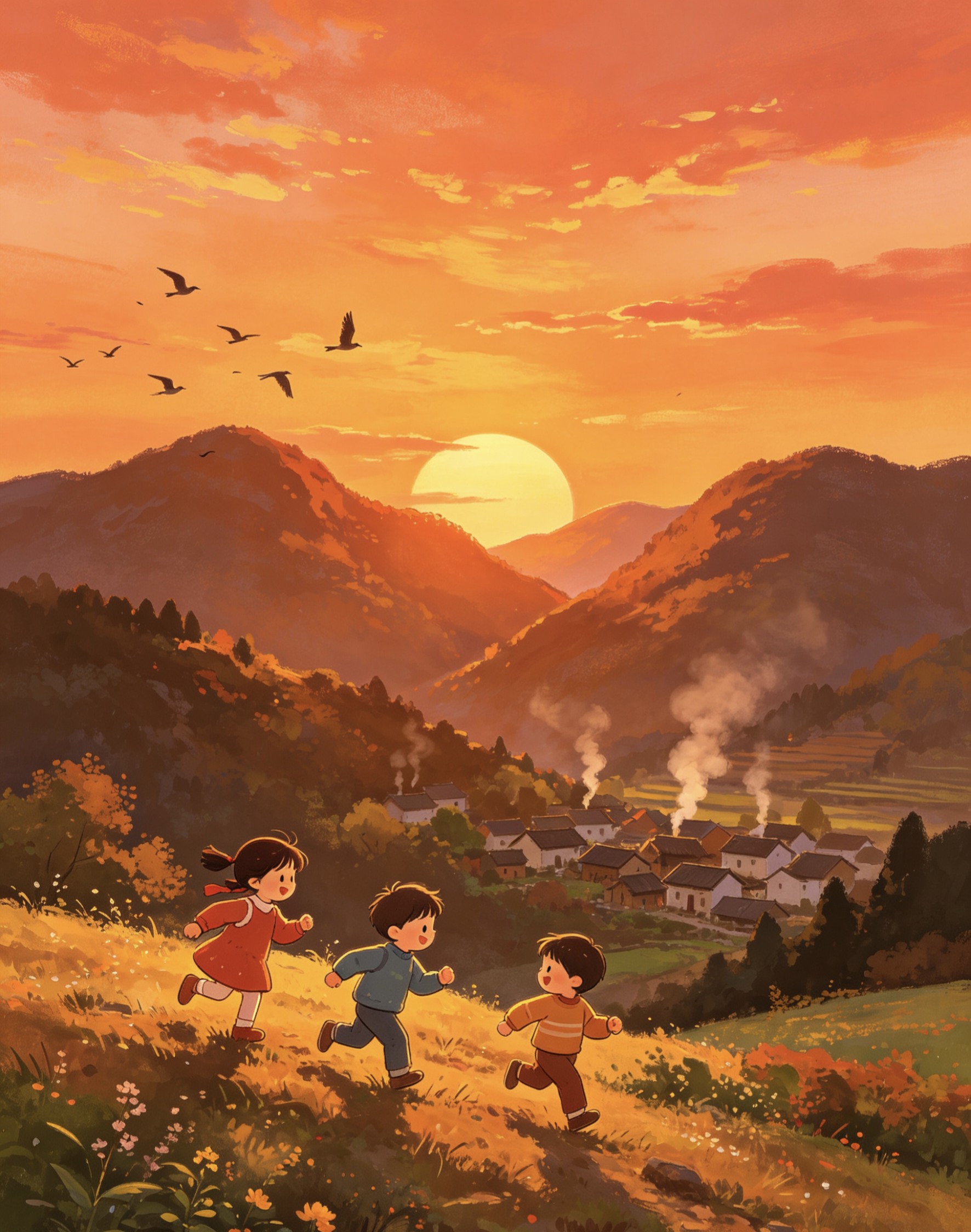 【诗画旅途】山间晚景 温州市龙湾区第一小学龙祥校区 五(1)班 季思妤 指导师:吴双双 “枯藤老树昏鸦,小桥流水人家,古道西风瘦马,夕阳西下,断肠人在天涯。”向来,我独爱那山间的日落。 太阳宛如一位粗心的画家,将那巨大的调色盘打翻在天空这偌大的画布之上。无边的云霞,被一支无形的画笔肆意挥洒——先是明艳的橘红,仿佛不甘寂寞的火焰在尽情跃动;继而点燃了浓烈奔放的玫瑰色,宛如漫天倾泻的葡萄酒液;最终又悄然晕染成一片迷离的紫罗兰色,优雅地铺展开来。 渐渐的,太阳已落下半个。剩下的半个从山缝中依依不舍地俯视着大地。阳光洒在山峰上,洒在山间小径上,洒在山泉上……那阳光,似丝绸般柔滑,如流水般轻盈,像点点碎金般璀璨,美轮美奂。洁白的云朵也披上了一件五彩斑斓的纱衣,红的似火焰般炽热,橙的如金子般耀眼,粉的迷人眼目,紫的奇幻莫测。 不知不觉中,太阳只剩下小半边脸庞。微弱的霞光洒在山脚下的村庄,炊烟袅袅升起,在空中勾勒出乡间生活的和谐与美好。一对倦鸟在天际划出一道道优美的弧线,最终栖息在一棵树上。它们或许正急切地渴望归巢,与孩子团聚。我不禁低吟一句诗:“倦鸟暮归林,浮云晴归山”。 片刻的功夫,太阳落了下去。暮色如同无边的黑幕,悄然弥漫开来,凉爽的晚风轻抚我的脸庞,带走了我的暑气。调皮的孩童吃过晚饭在山间玩耍,银铃般的笑声传遍天际…… “夕阳无限好,只是近黄昏”然而,日落并非终结,不是熄灭,只为酝酿下一个不可言说、盛大的日出。
