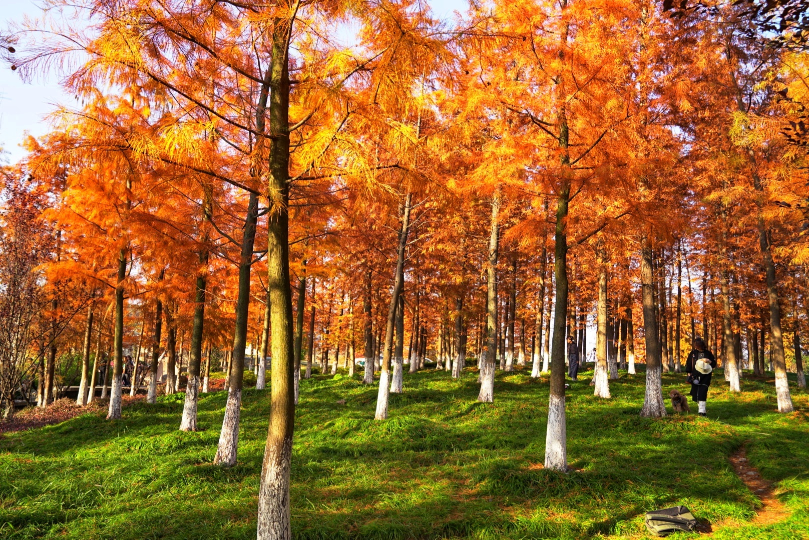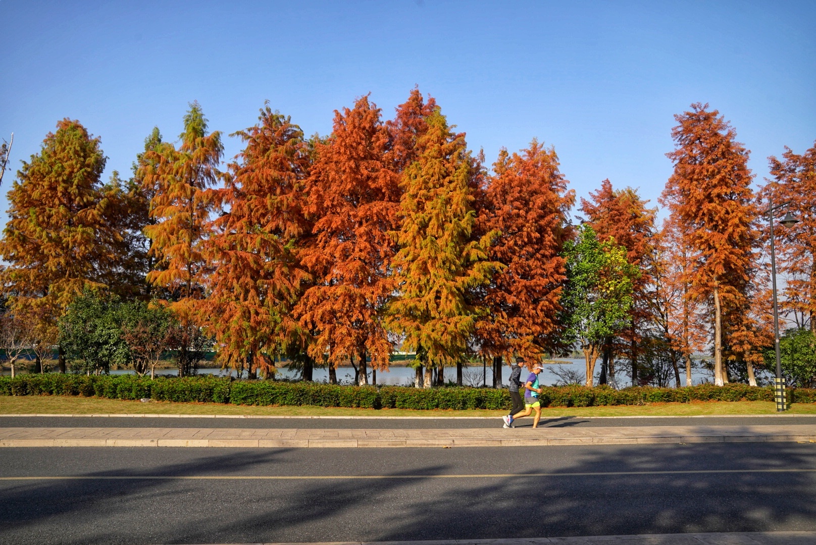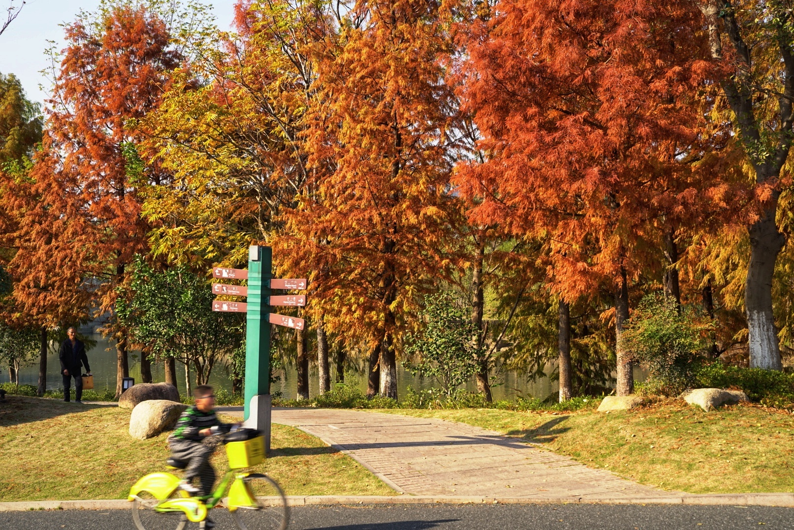 #炫冬日#湘湖定山广场附近,水杉美翻了! 湘湖定山广场附近的水杉林染上询丽的色彩美如童话,红出圈啦!