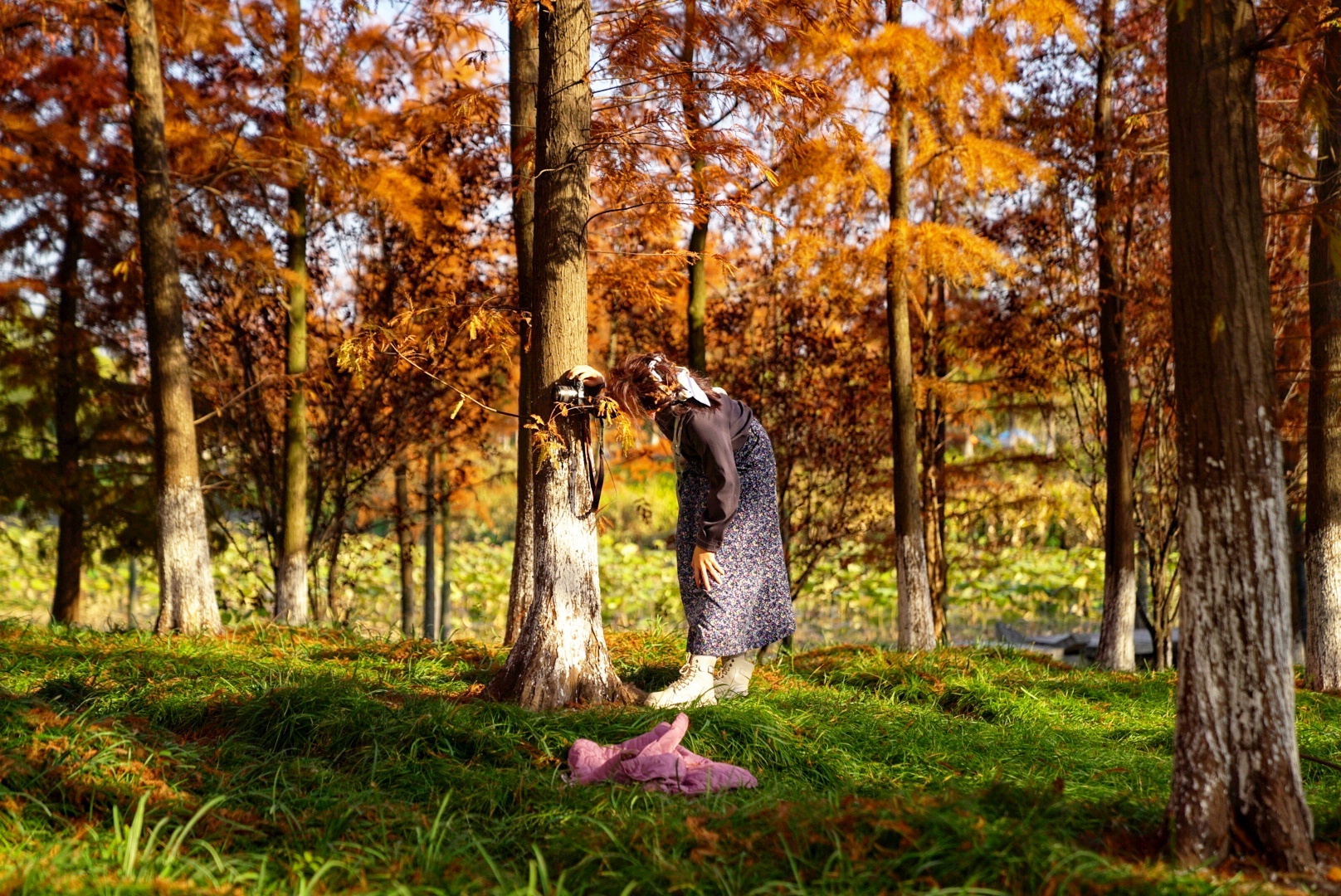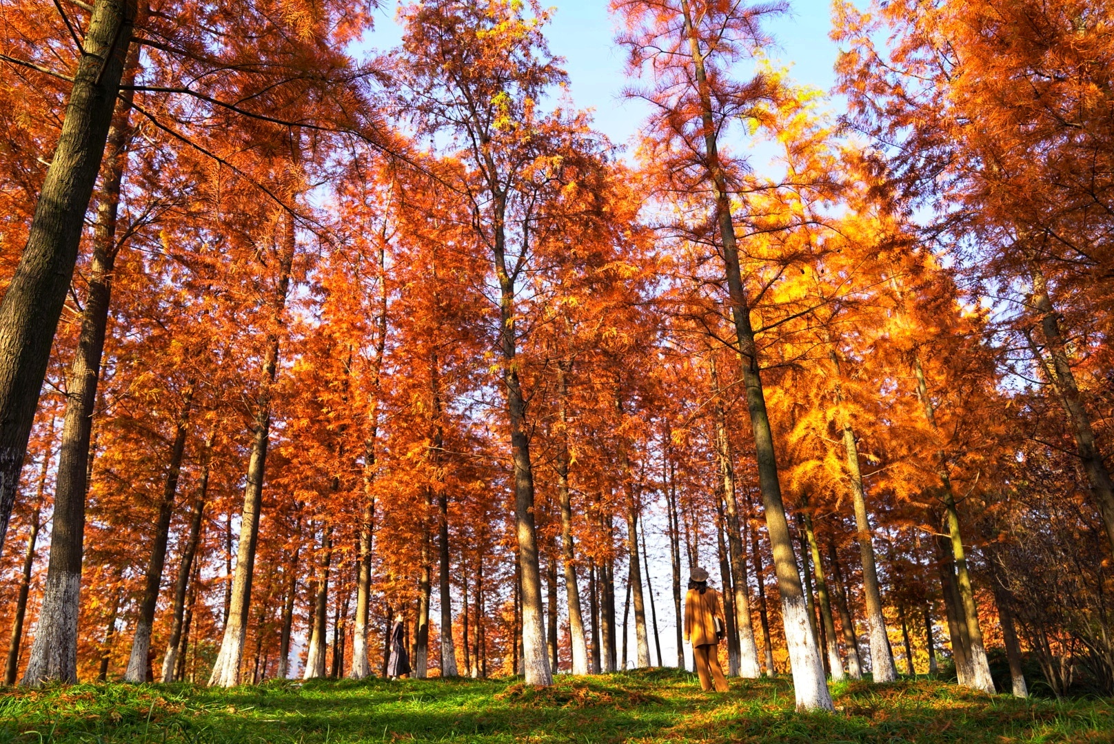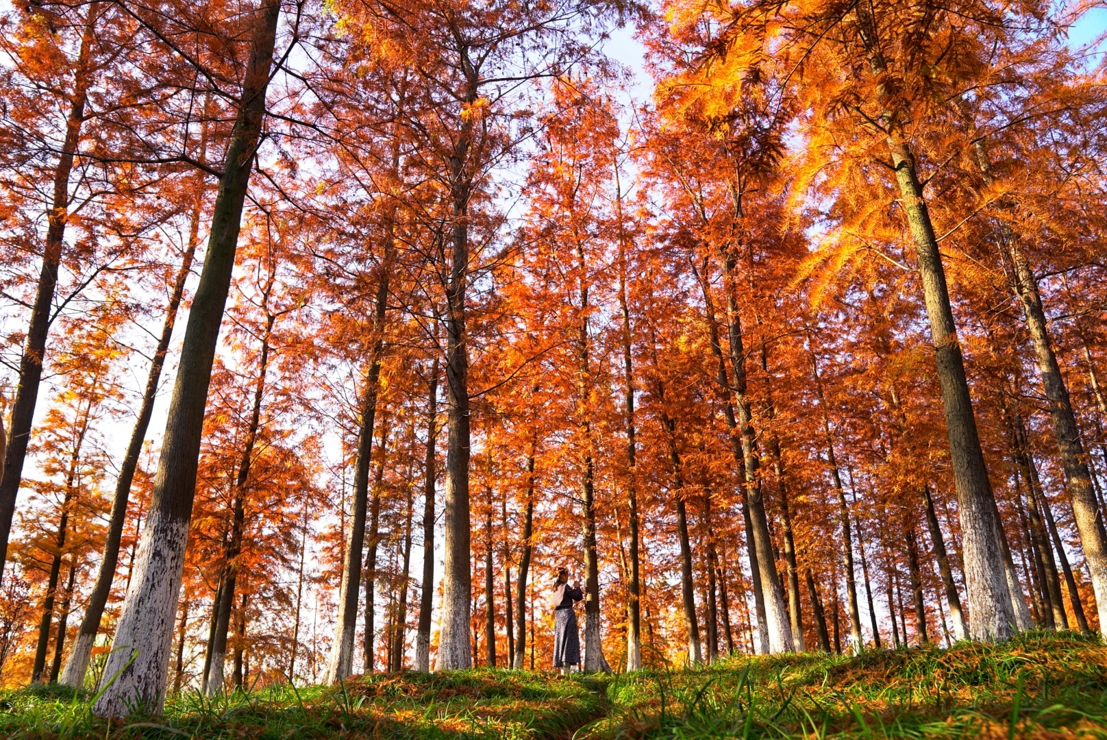 #炫冬日#湘湖定山广场附近,水杉美翻了! 湘湖定山广场附近的水杉林染上询丽的色彩美如童话,红出圈啦!