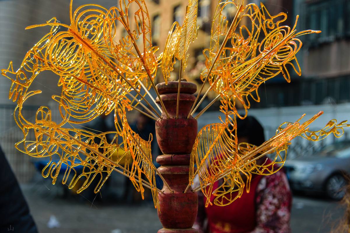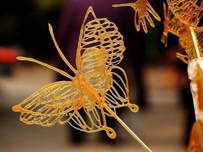 远去的闲食 □陈如吉 前阵子初冬时分,秧田头村做戏,放在五丰新村一家超市的停车场。这些宁波象山西门边上的地段,不是时间住得久的老丹城人,估计也分不清楚。公公和婆婆连续去看了好几晚,吃晚饭的时候就跟我们讲,这个生唱得好,那个旦长得好,公公还说,五丰新村已经做了好几场,秧田头村是也得做一场……劈哩叭啦说话间,好像又回到小时候过年前在村口看戏的时光,那可是一个村的大日子呢。 我幼时记忆里,只要有做戏,旁边就有闲食摊,吸引得小孩子一圈圈围着,跟个猴群似的。刨青皮甘蔗的菜刀有凌凌之风,那时好像很少有红皮的甘蔗,也没有现在水果店一刨到底的刨刀。噌噌手起刀落间,长长一节甘蔗要先啃皮再能吃到甜的汁水,咬得腮帮子酸,时隔30几年回想过去,似乎牙齿还在发酸;还有香瓜子和米胖糖,也是必不可少的,香瓜子用纸包着,一角一包,后来还涨到过两角一包,此事求证老娘,非说是二分和五分一包,哦,我知道了,她的记忆穿越到更早前去了。米胖糖的一粒粒米是一架葫芦状的椭圆形机器,像大炮一样“爆”出来的。还有挈着六谷、大米、年糕片来“爆”的,我们这批7080的估计都有记忆,黑戳戳的轧米胖车,黑不溜秋的长竹篓,笑容可掬的轧米胖师傅,这样的情景想起来便跃然在目。一般做戏的晚上是不轧米胖的,轧米胖都是做戏的白天远远的放在村中空地上进行。 我小时候对这个轧米胖“爆”的一声比较害怕,不敢走得太近,如今却更愿意费一段笔墨去描述那种“嘭” 的一声害怕后,小孩子们的欢喜。轧米胖的过程,在小孩子的眼里那是百看不厌的戏法。先将要轧的大米、六谷或年糕片量好一些糖精放入机器中,然后拧紧机器的盖子,为预防漏气,有的轧米胖师傅会在机器盖子上垫上一层纸。然后一手在火炉铁架子上不停地摇机器,另一手拉风箱杆……只听他一声大喊“放炮嘞”—— 最激动人心的场景出现了,轧米胖师傅威风凛凛地把脚搁在长竹篓上,这个造型豪气冲天,颇有点年画里杨子荣上山打虎的派头,用力踩机器的头部,搬开机器盖,“嘣嘭”一声巨响,一阵白色烟雾弥漫开来,米胖年糕干就这样蹦进了竹篓子。躲得远远的孩子迫不及待地围过来,主人家也顾不上烫手从洋粉袋里掏出一把尝尝味道,客气地招呼别人吃——感觉味道好过如今涌金电影院门口的爆米花。 这些幼时的闲食,带来无比香甜的记忆,越写越长,我的强迫症又发作,求证家人,幼年时的吃货们是否如此,婆婆又贡献一条,说是一个拖拉机的头“轧轧轧”拉出来长长的那种米胖,也是很惹小孩子们爱的,她又再三证明,前几天在迎门路口给钱多多买了半斤,她形象的学孙子的嘴,说小嘴咬了一口后,“呸”的一声,说不好吃——这个屁孩子,都快被洋快餐侵略了,我们小时候想吃点米胖,都是那样的不可得,有点怅惘…… 那天傍晚,我紧赶着把在Ipad前看视频的儿子拎到戏文场子里,说那里有很多妈妈小时候的闲食。意外的发现一个销声匿迹很久的糖画摊。大理石画板,绿漆小火炉,黑色的铁锅里熬着焦糖,旁边还摆着带指针的轮盘。六点和十二点的位置是图案最大最复杂最漂亮的,糖分量也用得最多的龙和凤,其它边边角角则是些鸡狗牛马羊金鱼小兔子之类的。 这个糖画或者可以拨轮盘来买,拨到哪个动物画哪个,我小时候就怀疑指针那动过手脚,反正人品大爆发中奖龙凤的没有,全都中些小动物。当然如今生活条件不一样,有些土豪爷奶也会大手一挥,直接让画个龙或者凤的给孩子,价格是小动物的两倍。 糖画摊旁边小孩子人头攒动,儿子好不容易挤进去了,兴奋的大喊一声:“老爷爷给我画个奥特曼……”画糖画的老爷爷当场雷倒,表示画不出来,儿子有点不高兴,就说画个“葫芦娃”吧,老爷爷再一次表示压力山大,儿子有点怀疑这个糖画摊主的本事,商量着问:“那能画个孙悟空吗?”老头子倒也有两把刷子,把孙悟空头上的两根雉鸡毛和身上战袍一绫一绫的黄金甲都画得活灵活现,旁边一拨人都仔细的看他作画,风头不亚于国画大师在央视上的现场直播。 得到孙悟空后,儿子喜不自禁,舍不得下嘴,想咬那个鸡毛,又放下,先咬脚,又放下,一张小嘴在孙悟空身上舔来舔去,后来回家的路上鸡毛断了一根掉地上,害他大哭了一场,一定要我许诺,第二天晚上还去买,要买两个。 戏文唱了五个晚上,他连续买了四个晚上的糖画,我记得一共买了金鱼、兔子、大刀、老虎等,估计是和他爸一起拨来的。戏文唱好后,我就再也没看见过这些个糖画摊子,有点齐人忧天的想法,这些老的手艺人,总会有更好的谋生手段吧? 从前的东西如今再不可复制,那些远去的记忆,是多么丰富和美好,就像蝴蝶振动起的翅膀,绚丽的翩飞的将疲惫的心轻轻抚慰,香甜香甜的。