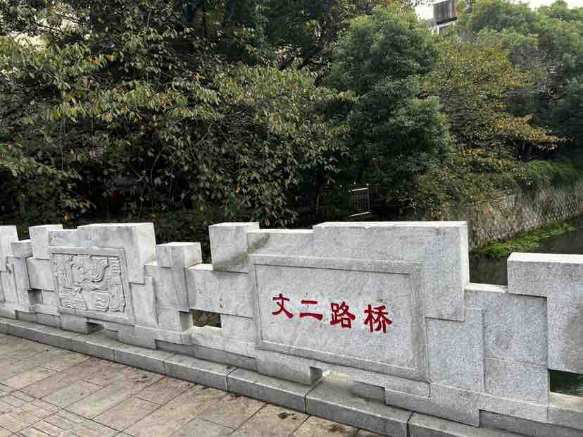每座桥背后,都有属于自己的故事 最近,叫了很多年的文二路上的下宁桥,突然改名“文二路桥”了,引起了很多人的关注,因为,真正的下宁桥应该是下宁巷口的那座“幸福桥”,如今,知错就改,把名字还给真正的下宁桥。 我也不由得担心起家附近的上宁桥会不会哪天也被改成文三路桥😀 哈哈,不知道我的担心是不是多余的了,查阅了历史记载:“上宁桥始建于宋朝,经多次重建和改建,现上宁桥位于文三路上。”那2008年进行改建的这座上宁桥应该是真正的“上泥桥”演变而来的吗,上宁巷口那座无名小桥该不会是“上宁桥”吧。 因为临近浙江大学西溪校区,现在的上宁桥也显得很有深厚的文化底蕴,桥栏杆上有用印章形式书写的四句话:“住在杭州,游在杭州,学在杭州,创业在杭州”,这是当年西湖博览会的城市宣传标语,很多年过去了,你还记得吗? 桥上还有用篆体书写的三首诗,一首禅诗出自佛家弟子明人释大绮: 千亩不云多 十个不云寡 悬知击竹处 更有问津者 另一首是释大绮的《西溪梅墅》 孤山狼籍时 此地香未已 花开十万家 一半傍流水 为什么现在的上宁桥上会用并不出名的释大绮写的禅诗,还有一首诗不知是不是也是释大绮所作,没有查到史料。每座桥背后,都有属于自己的故事,等你去了解,很想请教一下大家,有谁知晓这段历史。