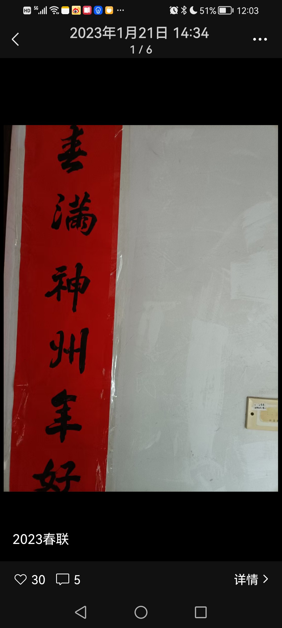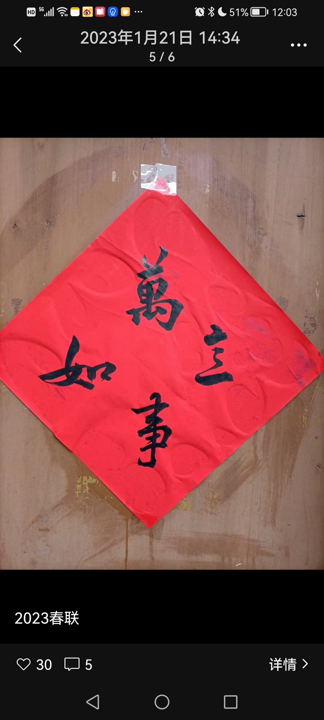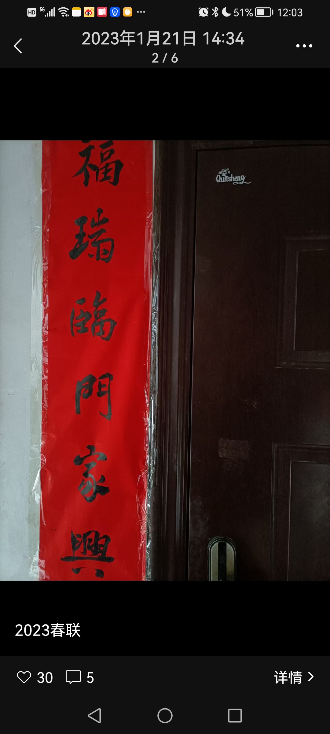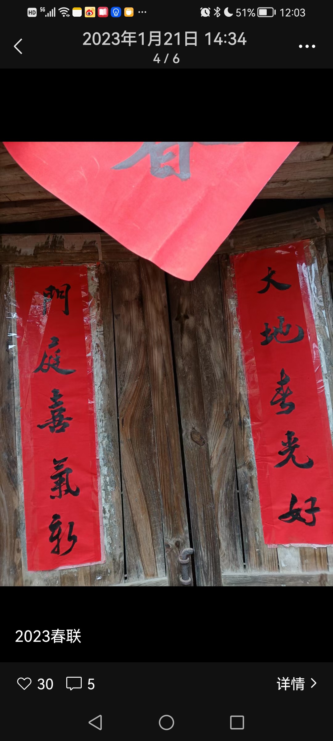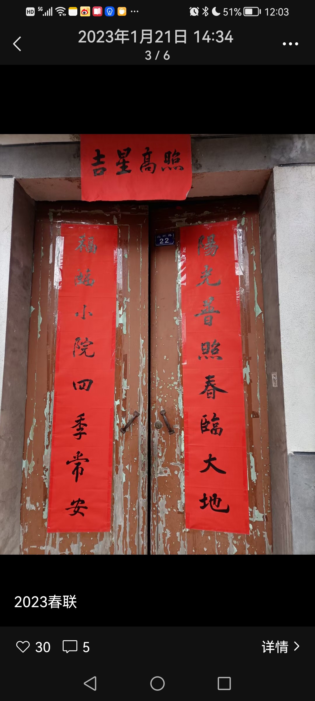 贴对联 吴跃青 匆匆忙忙想出发的时候,忽然想起自家的对联还躺在书房里,心里有了点小小的慌乱,这是不该有的疏漏。像往年农历二十八,二十九,就早早把家中的一切理得妥妥帖帖了。这些日子,经历的太多,多多少少乱了些方寸。 几乎是小跑着找红纸,找胶布,找剪刀。忙乱了一阵,终于搞定,只是贴的时候有点微风来捣乱,红纸稍稍偏离中轨,但总算没怎么走样,也就随它了。 门口还是站了半分钟,确定再没有要带的东西之后,才急吼吼奔向那辆跑了十余年的老爷车。 腊月三十的乡下,车满为患。平日里空荡荡的停车场,放眼望去都是小车。好不容易在村东南的大路上找了一个停车位。停好车,一看时间已接近十点。 路过小表哥家的时候,我还是习惯性的侧过身子,伸长了脖子往里面看,恰好他儿子从外面走过来,我说吴坚,你爸在家吗? 一听我的声音,小表哥从里面走出来,热情的招呼,来来来,吴老师到里面坐,喝茶。 换作往常,我肯定要坐下来跟他小聊几句,小表哥满肚子的幽默细胞,平平常常的一句话到了他的嘴里,就变得有滋有味有声有色,我说,不了,赶着要去贴对联呢。 吴坚止住脚步,搓搓手,说,刚好,我们和吴臻贴好了对联,我们帮你去贴。我一听正中下怀,说好好好,那多谢了。 我们村环北路的那一排房,都是上世纪90年代初建造的砖瓦房,底层高约有三米三,贴对联,大门上的长对还好说,门框上的横批就颇费周章,一般的两脚梯和短梯都很难企及,每年到这,我都心里发憷。 吴臻是我大表哥的儿子,这几日刚好放假在家,听到吴坚的叫喊,他背了一条长长的两脚梯钻了出来。我客套了几句,说你们先把我家大门的贴起来。 兄弟俩一个在下指挥,一个在上胶贴,配合很有默契。我看看暂时是帮不上什么忙,就寻思着在房门贴“福”字,这些“福”字是我姐姐姐夫带来的,有些褶痕。其实四字的对联(俗称落方)我也写了很多张,不过我想母亲可能更喜欢“福”字,那红通通的“福”字,又吉祥又喜庆,又温暖又富贵,一贴起来,顿时感觉房子里热烈了响亮了许多。 不大一会儿,骑在梯子上贴横批的吴臻也难住了,说,叔,那透明胶贴的不太牢诶,风一吹,肯定要刮走。吴坚说,有没有羹汤?我说有的。结果一端出来,他们两个直摇头说,这么清汤寡水,肯定不行。的确,往年我用米羹贴对联肯定比这样稠些,我不甘心说试一下呢,说着跑到浴室门上涂了几下,果然粘度不好。 我想了一会儿,说两面胶呢?吴臻说,估计不太行,只好试试。他撕开隔离纸,把胶带往墙面压了压,说,你们家,门框是凹凸不平的,粘不住,我们家上次改造的时候都把门框刷平了。我懊恼的直跺脚,这工作做的,这么些人,你不盯着点,还真是不行。 话音刚落,吴坚突然想起来说,小建家里还有点浆糊,刚好的,我去拿过来! 关键时刻浆糊能救急。“浆糊”在我的印象里一直是个贬义词,前些年,有报道说台湾人评选糊涂法官,评上的送一打浆糊;平日里,我批评学生脑子不够活络,偶用“是不是吃了浆糊”?真是天生我材必有用,今日门上展神威。吴臻用一把刷子,横两下,竖两下,三下五除二就把横批贴好了。我不由赞叹,年轻人办事就是又好又快,了不起。又说,上面还有牛栏,你们自己忙,我自己去贴好了。 到牛栏七弯八拐约有200余米的路程,而且必经过我表弟向阳家。凑巧向阳也在家,两人一见面,第一句自然是你阳了没有?向阳说他老婆是羊过,他也不知道羊了没有,只是感觉热了一下,要不然今年的活这么多,自己肯定干不完,和他一起干活的,基本上也没羊,儿子也好的。聊了一会儿,带着儿女正在贴对联的隔壁老王也过来凑热闹,说他们家也没羊。我有点懵,合着这病毒,还嫌贫爱富,城里的都给羊,乡下的很少羊。 向阳指着大门边的两幅对联,说,这是昨天写的,吴老师帮着指点一下?我自然说好,比方说这个“大”字很活,已经能跑起来了,还有“新”字,写的很平正,看上去很舒服。然后,在整体上的处理点了几句。 看看时间差不多了,我举举手里的对联和小板凳,告辞说,我还有牛栏要贴,一会我妈电话都打来了。 说是牛栏,其实是近30年没养过牛了,里面曾有牛栏图,犁,耙,耖,打稻机等,父亲在的时候,他常来这里整理农机具,后来他走了,估计这些东西基本也没了。我望着锈迹斑斑的小挂锁静默了好一段时间,才掏出胶带,把春联贴上 ——“大地春光好,门庭喜气新”。 午后,按照风俗习惯,首先是上山给先人们拜年,然后是放火炮,吃年夜饭。放完鞭炮,我和儿子各捻一柱香,祭拜天地,我心中默默祈福:祝愿我爱的和爱我的人岁岁平安,事事如意。