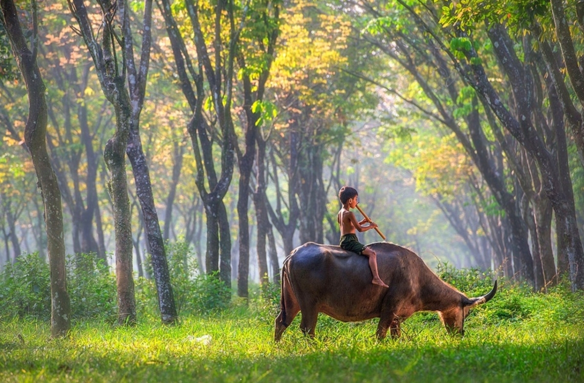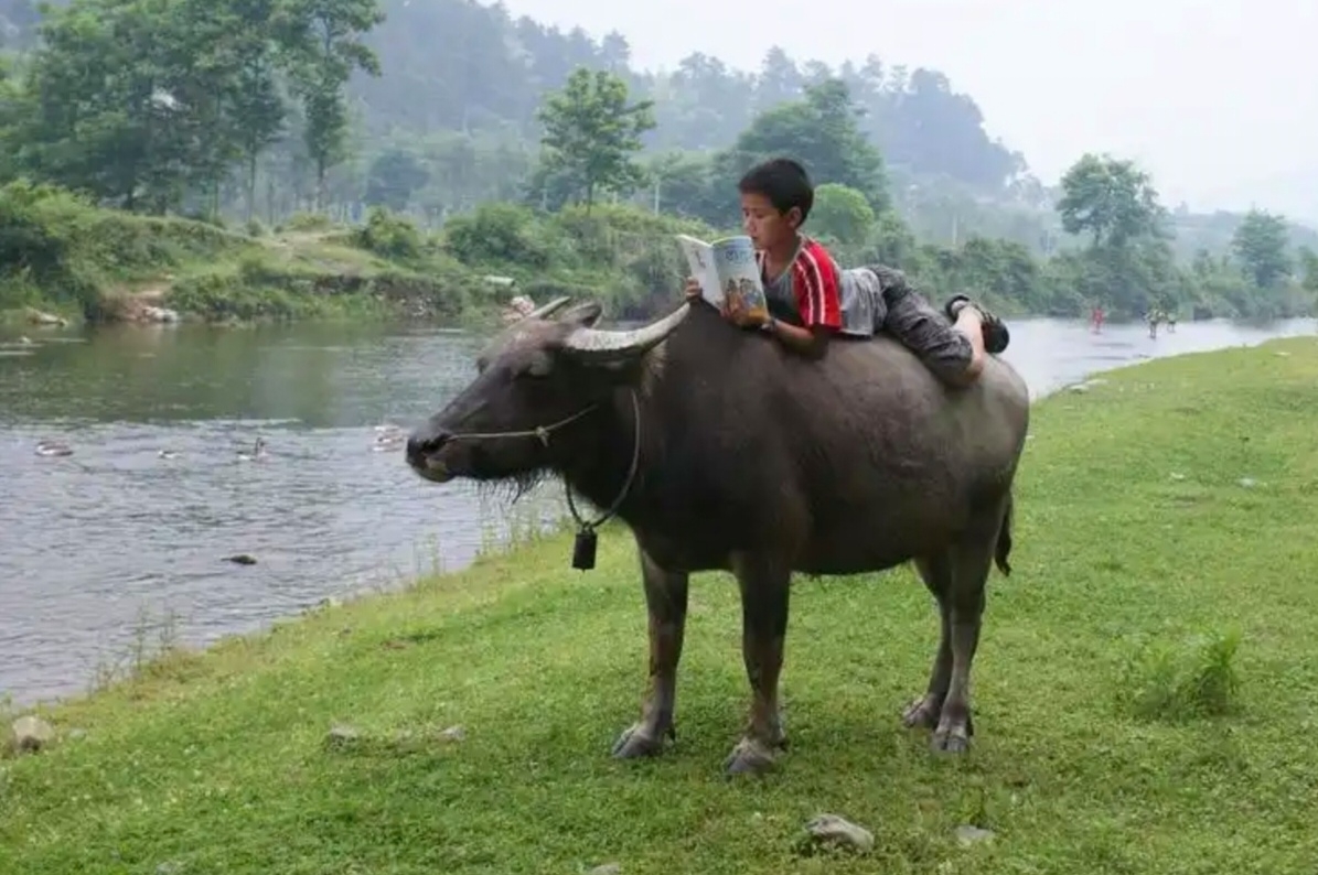 在过去的乡下,人们戏称看牛娃为“看牛大王”,言下之意,这些孩子无拘无束、自由散漫。每当农闲时节,放牛娃们便会牵着自家的牛四处游荡。