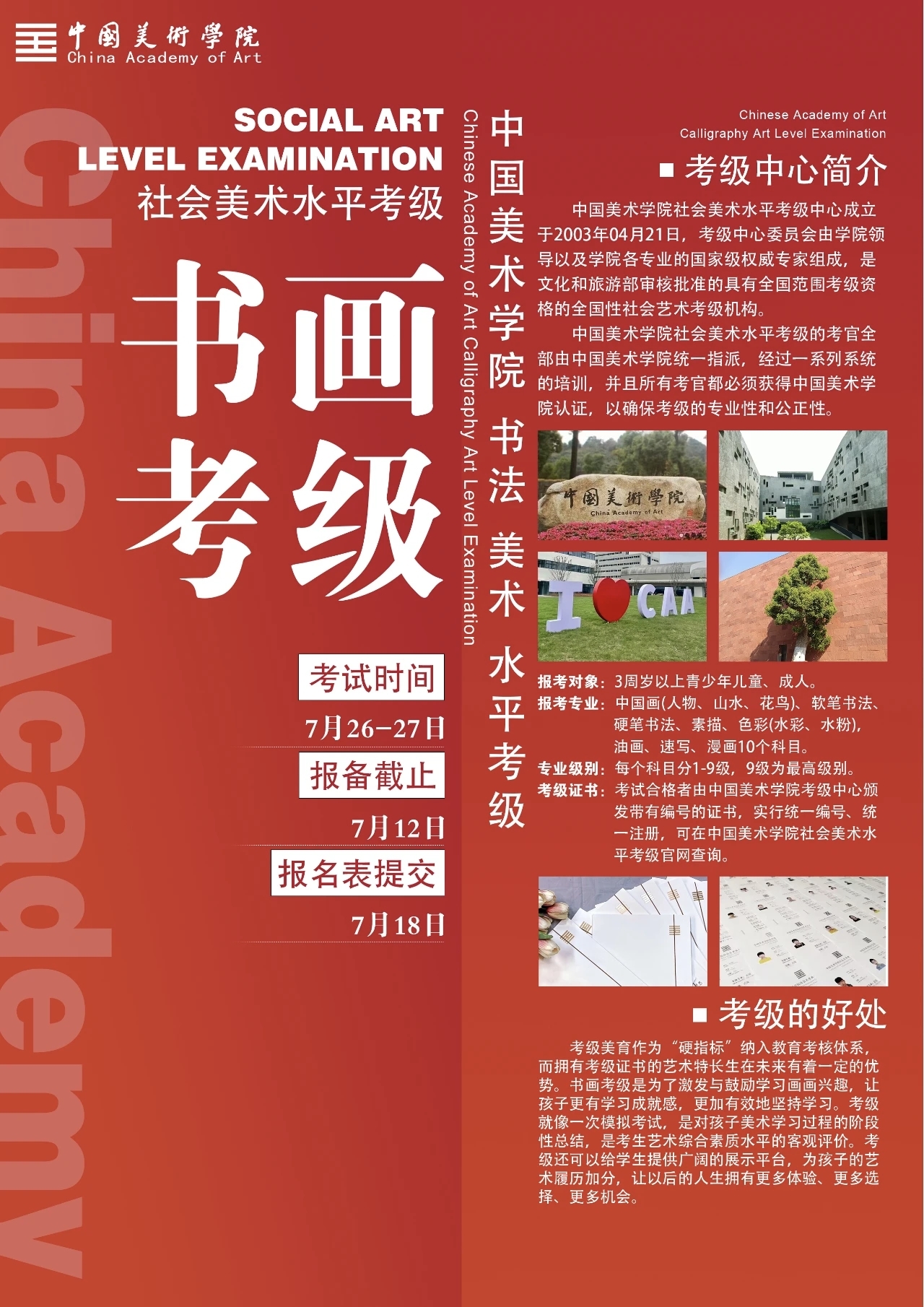 中国美术学院社会美术水平考级中心以中国美术学院强大的专业学科优势,及雄厚的专业师资力量为依托,本着以普及艺术教育,提高国民素质为宗旨,强调公开、公正、公平和自愿应试的原则,面向社会提供专业化、规范化的美术考级服务。