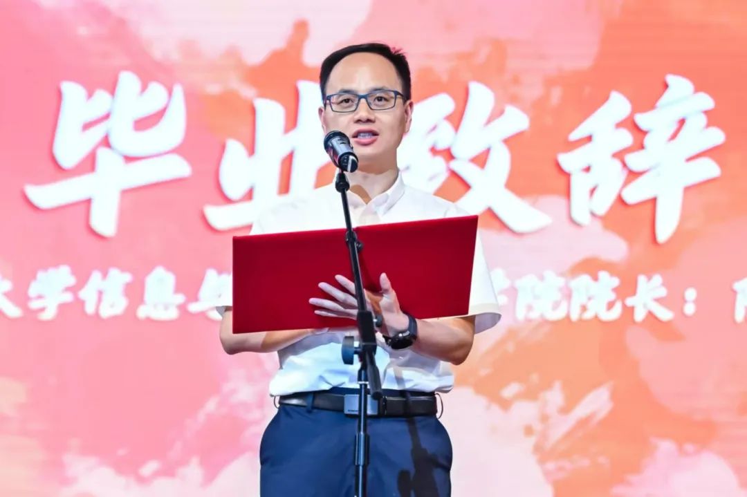 院长陈红胜老师寄语:“科技浪潮奔涌,创新使命如山。希望同学们:志存高远,矢志创新,把稳时代航向,勇搏青春梦想。纵征途万里,星河浩瀚,脚踏实地,不忘来时之路。传承浙大‘求是创新’的校训与信电‘关爱奉献’的文脉,将论文写在祖国最需要处,以智慧之火点燃科技自立之光。”