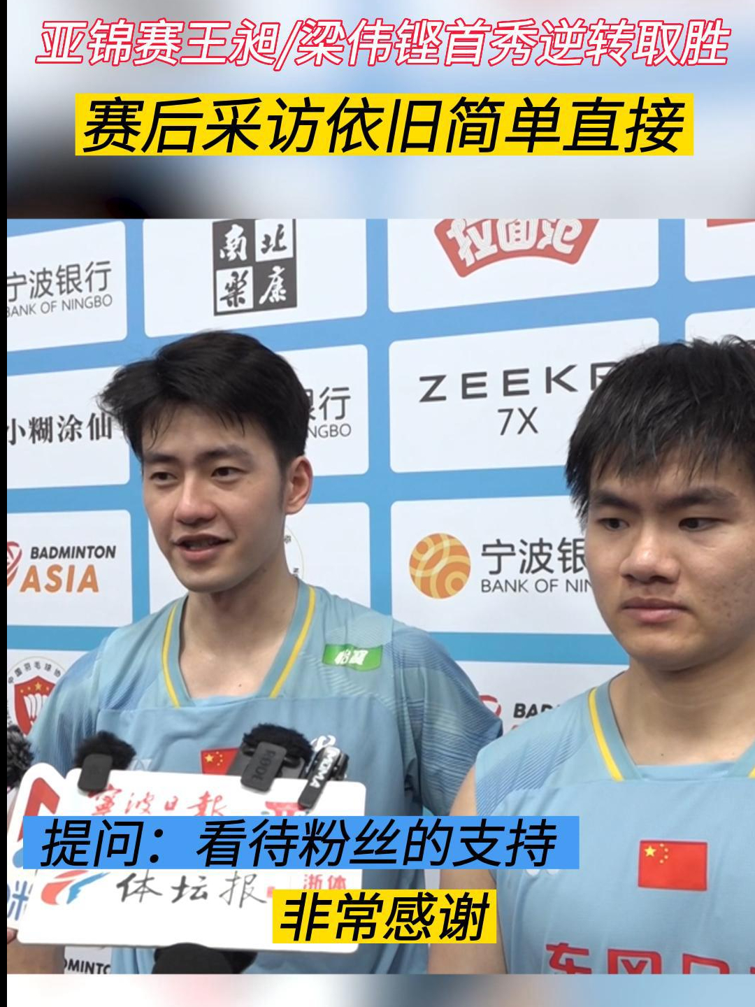 羽毛球亚锦赛,“梁王”组合首秀逆转取胜,赛后的采访回答简简单单