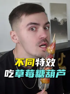 不同特效下吃草莓糖葫芦,酸酸甜甜的我超爱!#入冬的第一个草莓花糖葫芦#老外在中国#