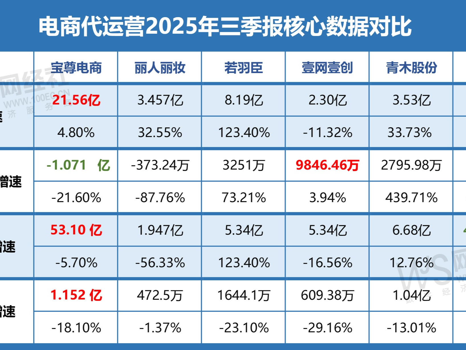 电商代运营还是门“好生意”吗?宝尊 丽人丽妆 若羽臣 壹网壹创 青木 凯淳三季报PK