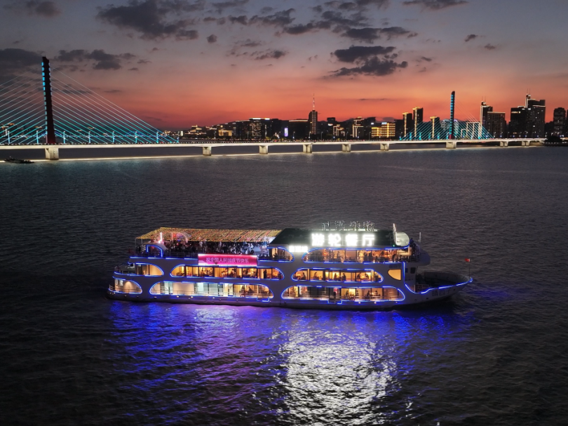 近日,钱塘江杭州段江北区域重启夜游船运营。这是江北游线停运8年后的再次启用。